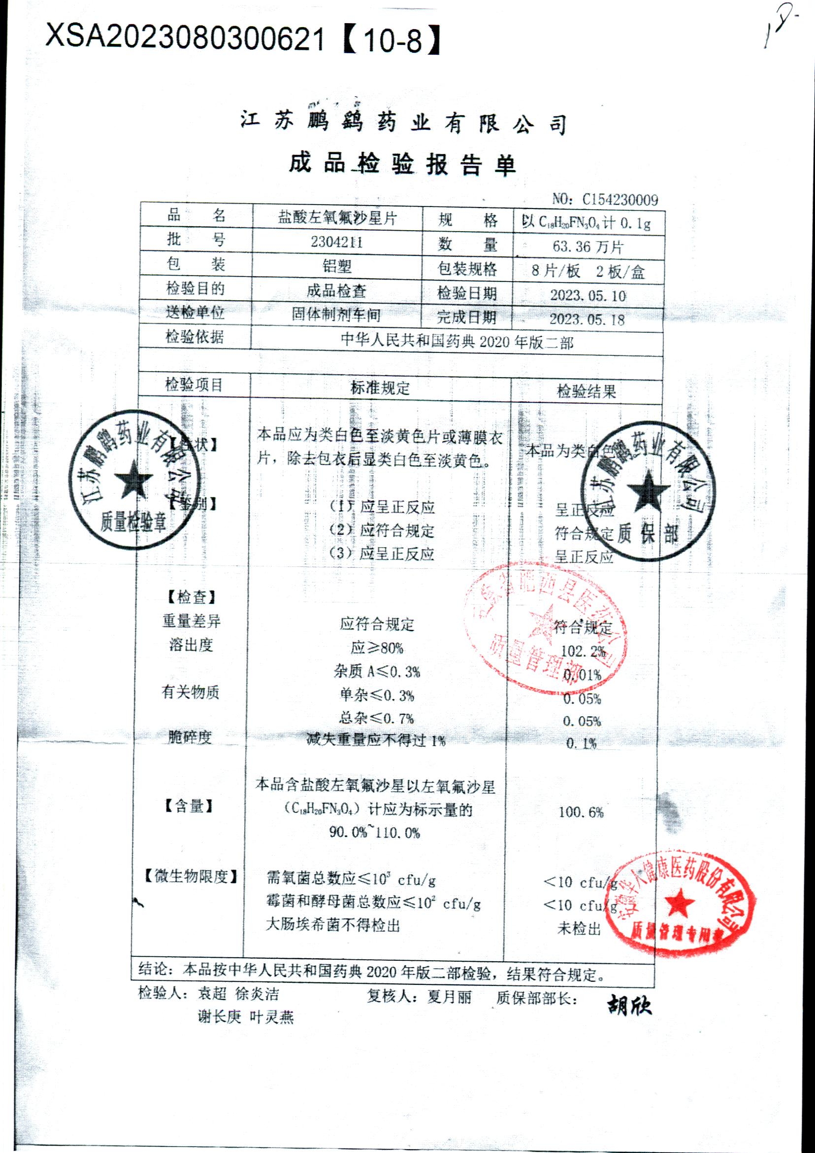 盐酸左氧氟沙星片 | 8片x2板 | 2304211 | 查看详情 |