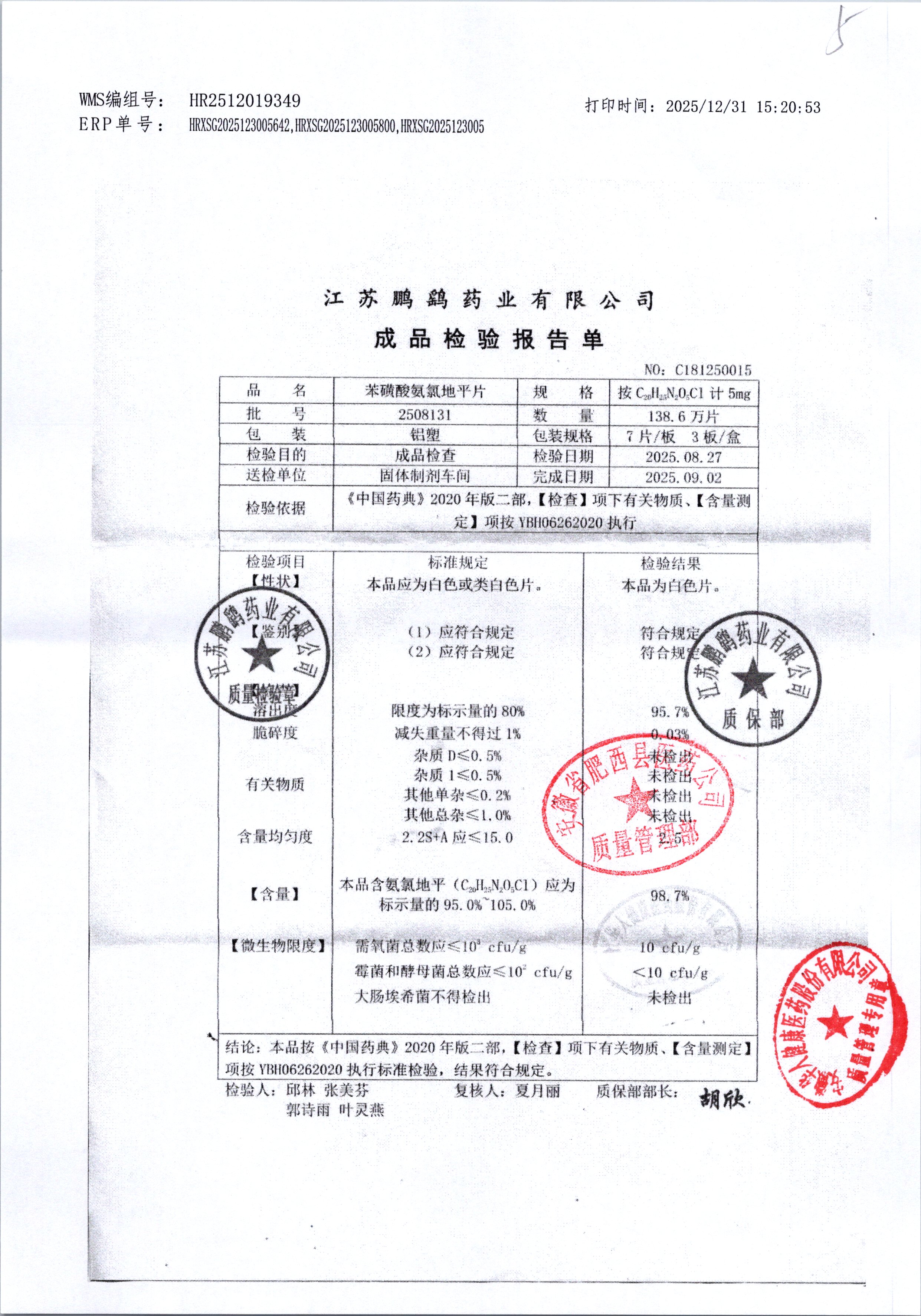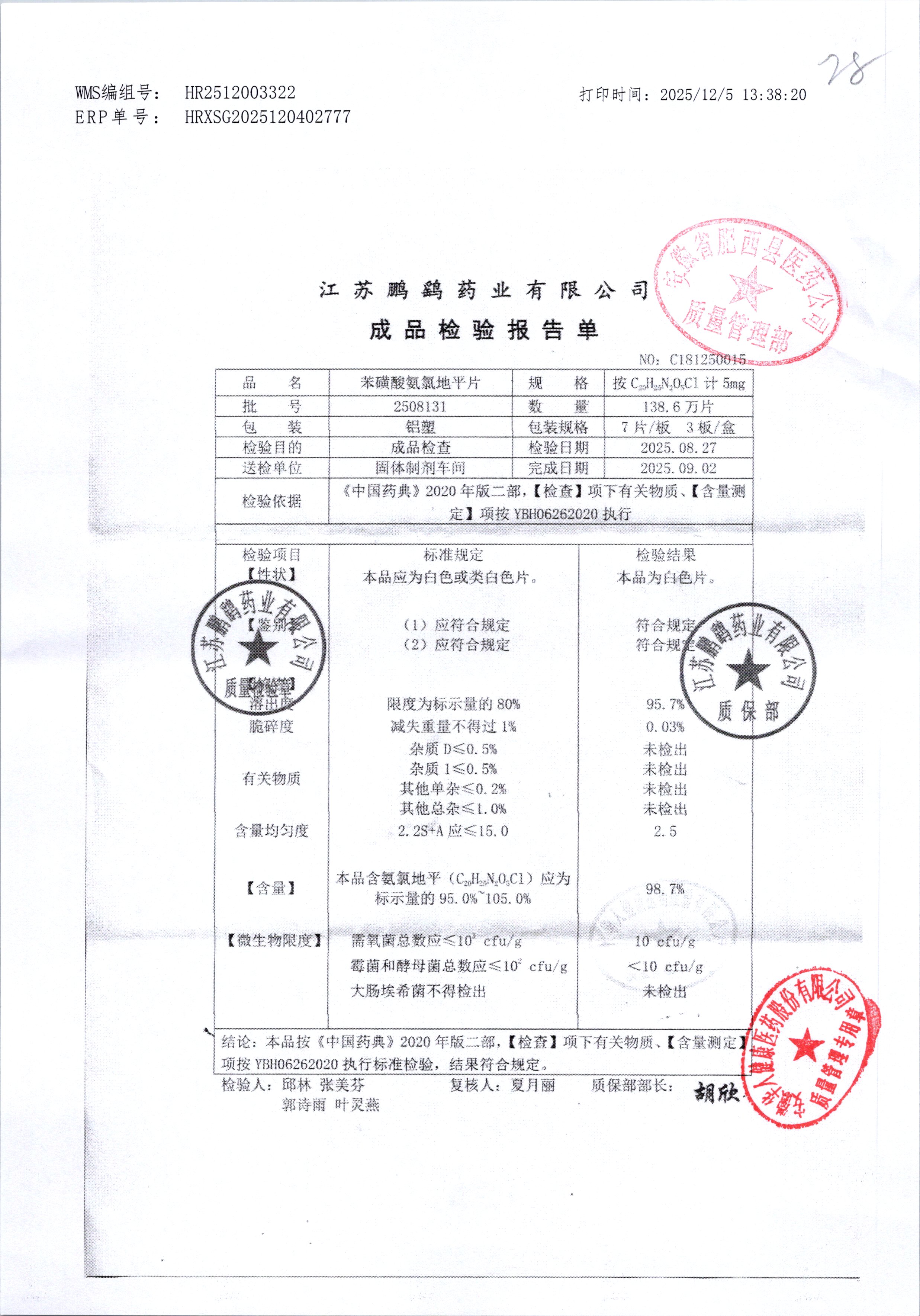 | 苯磺酸氨氯地平片 | 21粒 | 2211231 | 查看详情 |