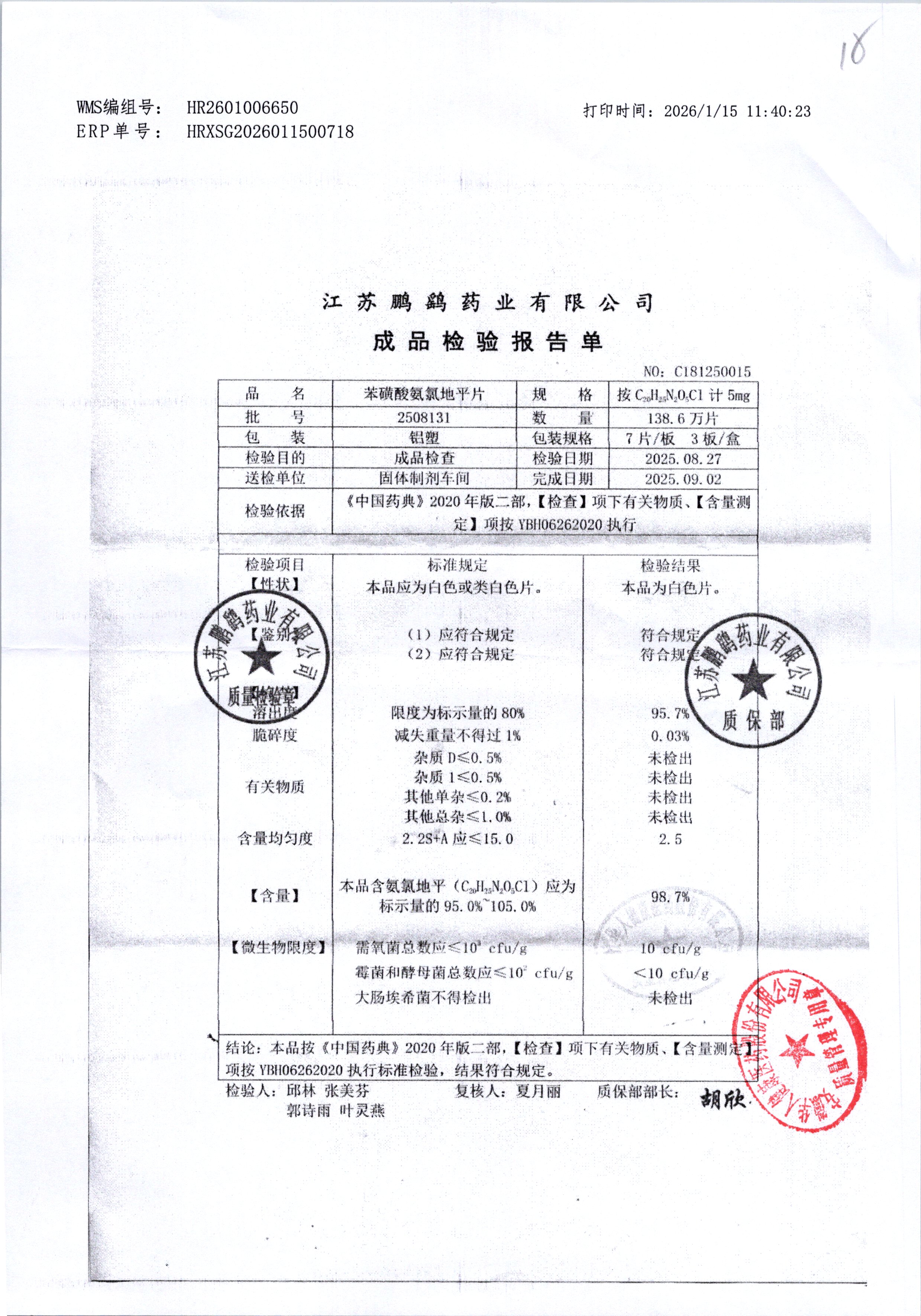 | 名称 | 规格 | 批号 | 药检报告 |