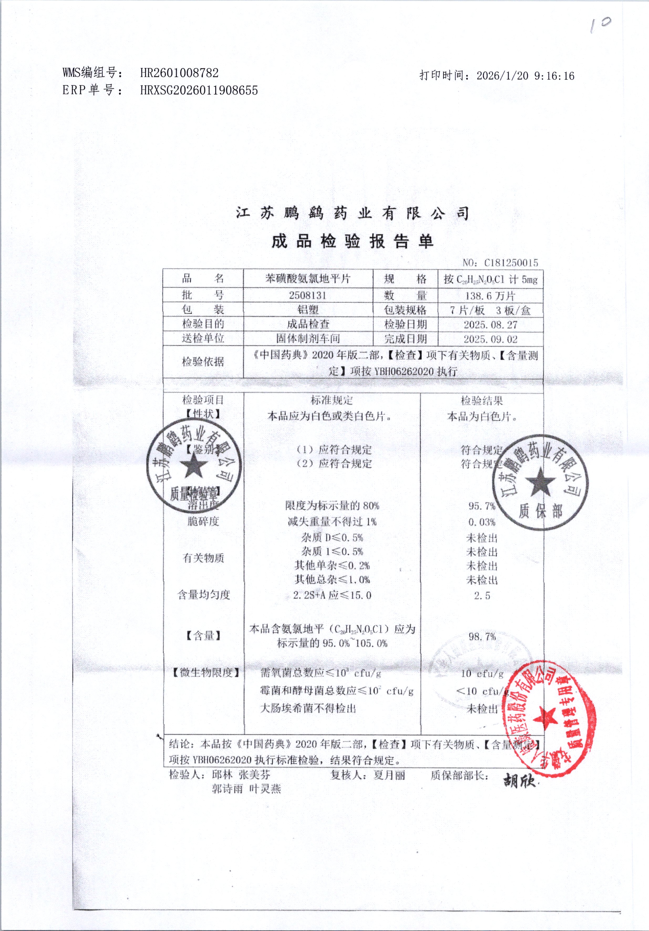 | 苯磺酸氨氯地平片 | 21粒 | 2508131 | 查看详情 |