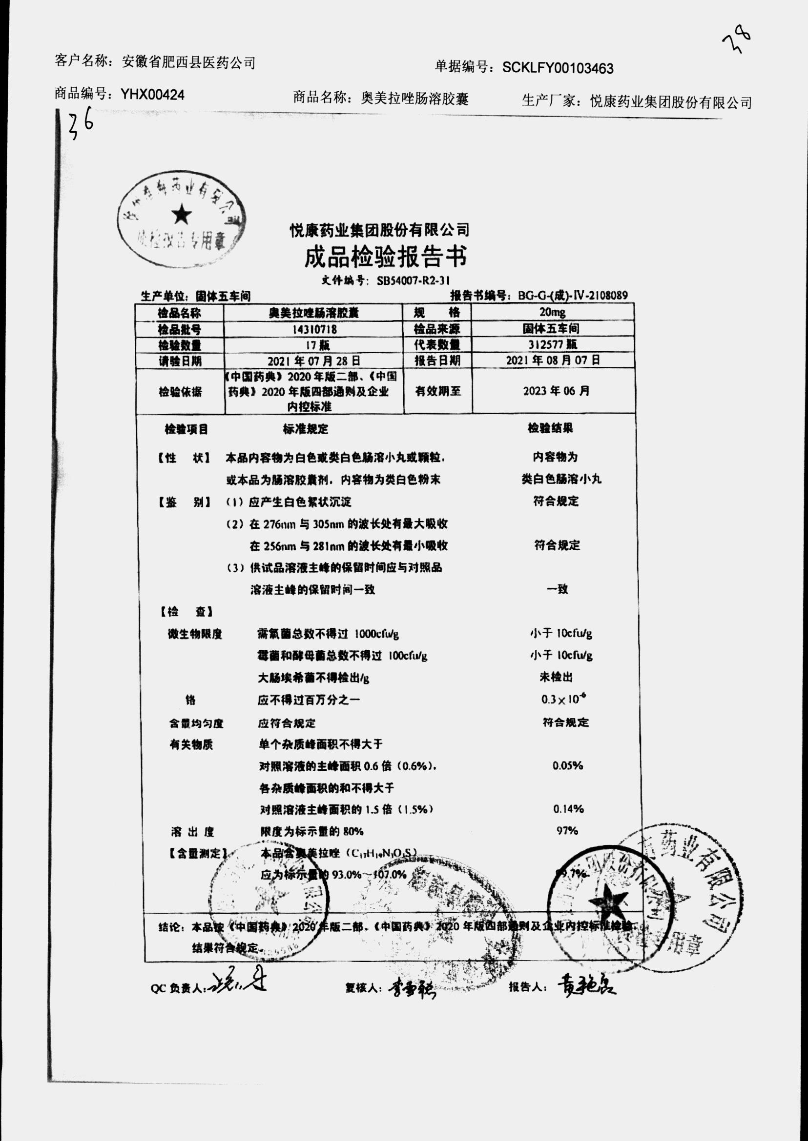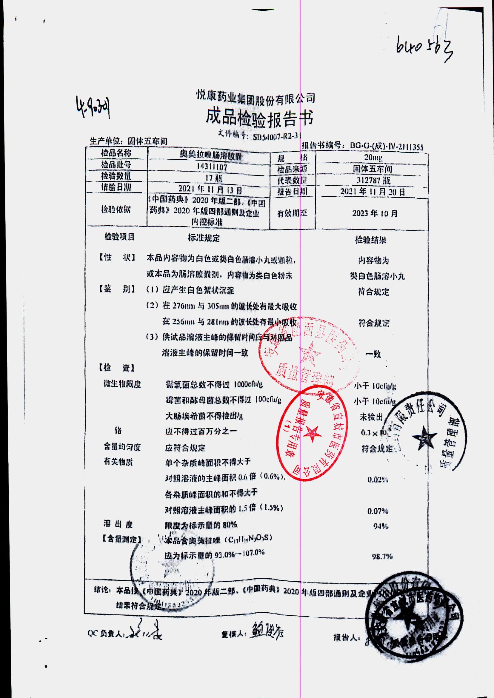 奥美拉唑肠溶胶囊 | 20mg*14 | 14320201 | 查看详情 |