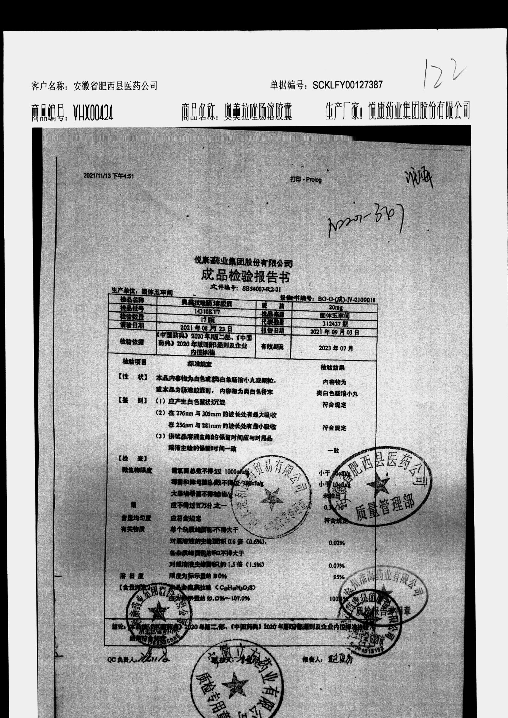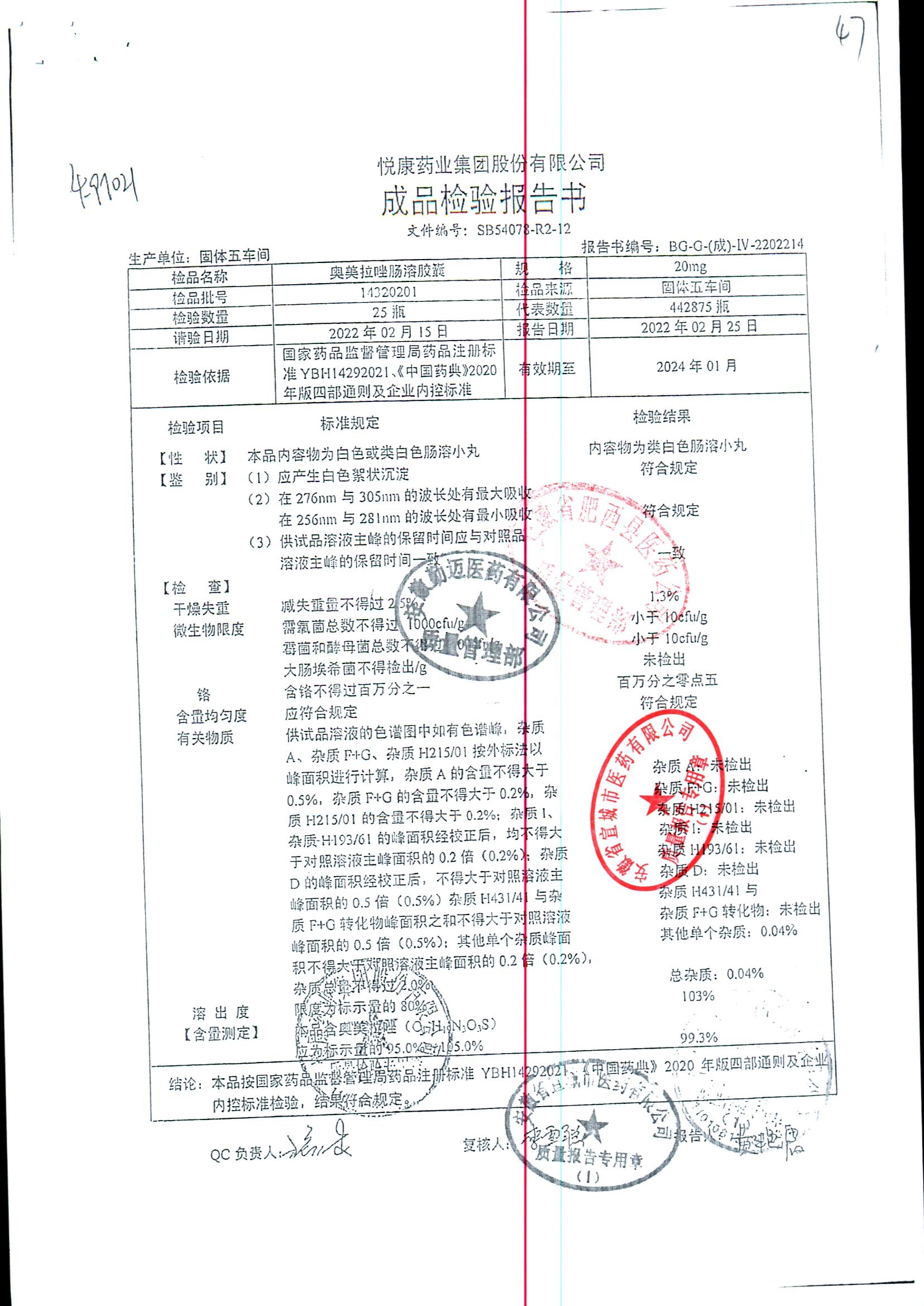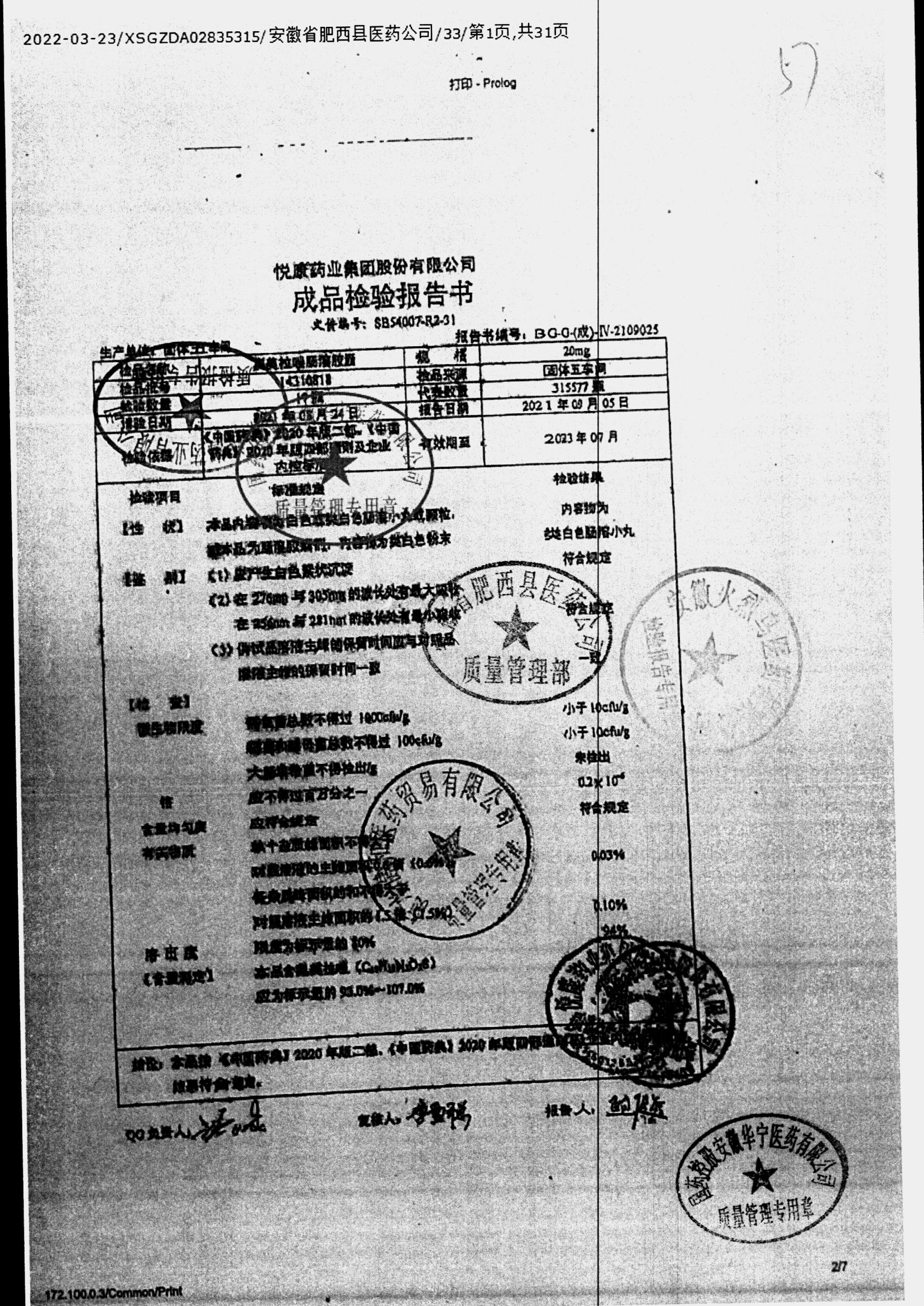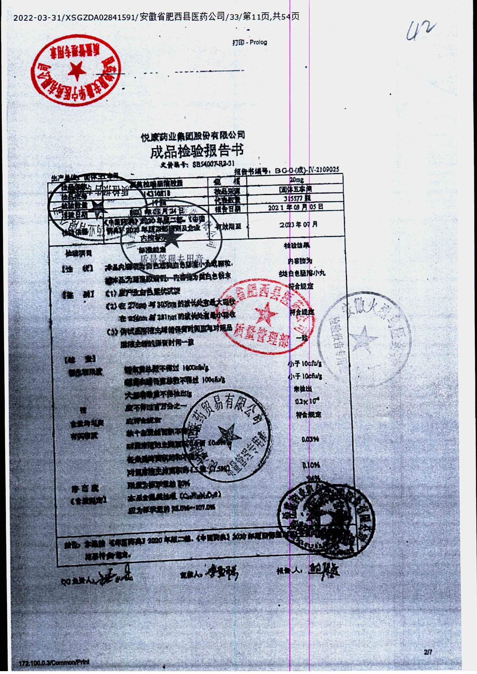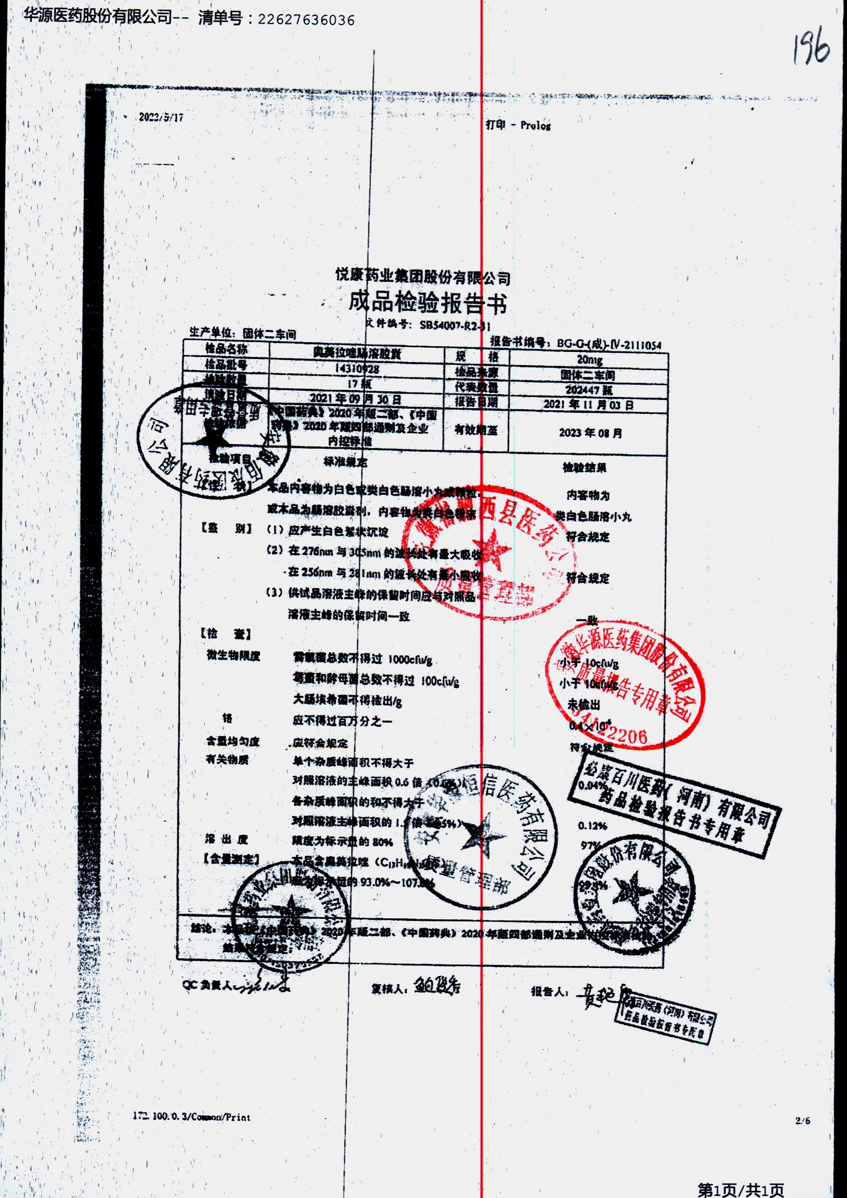 名称 | 规格 | 批号 | 药检报告 |