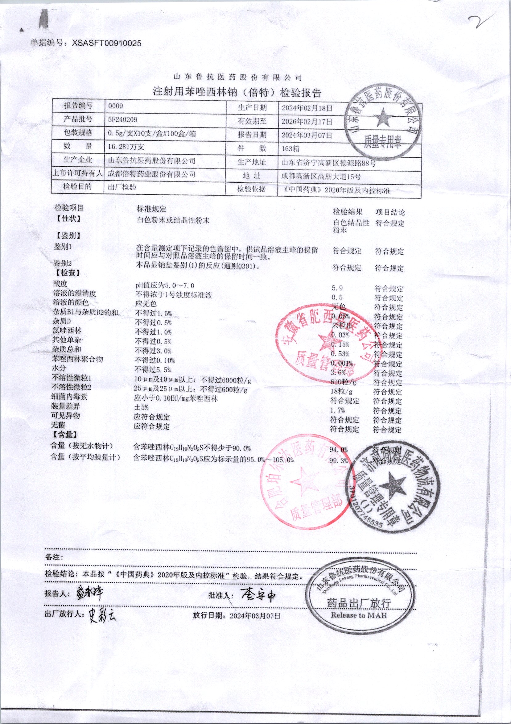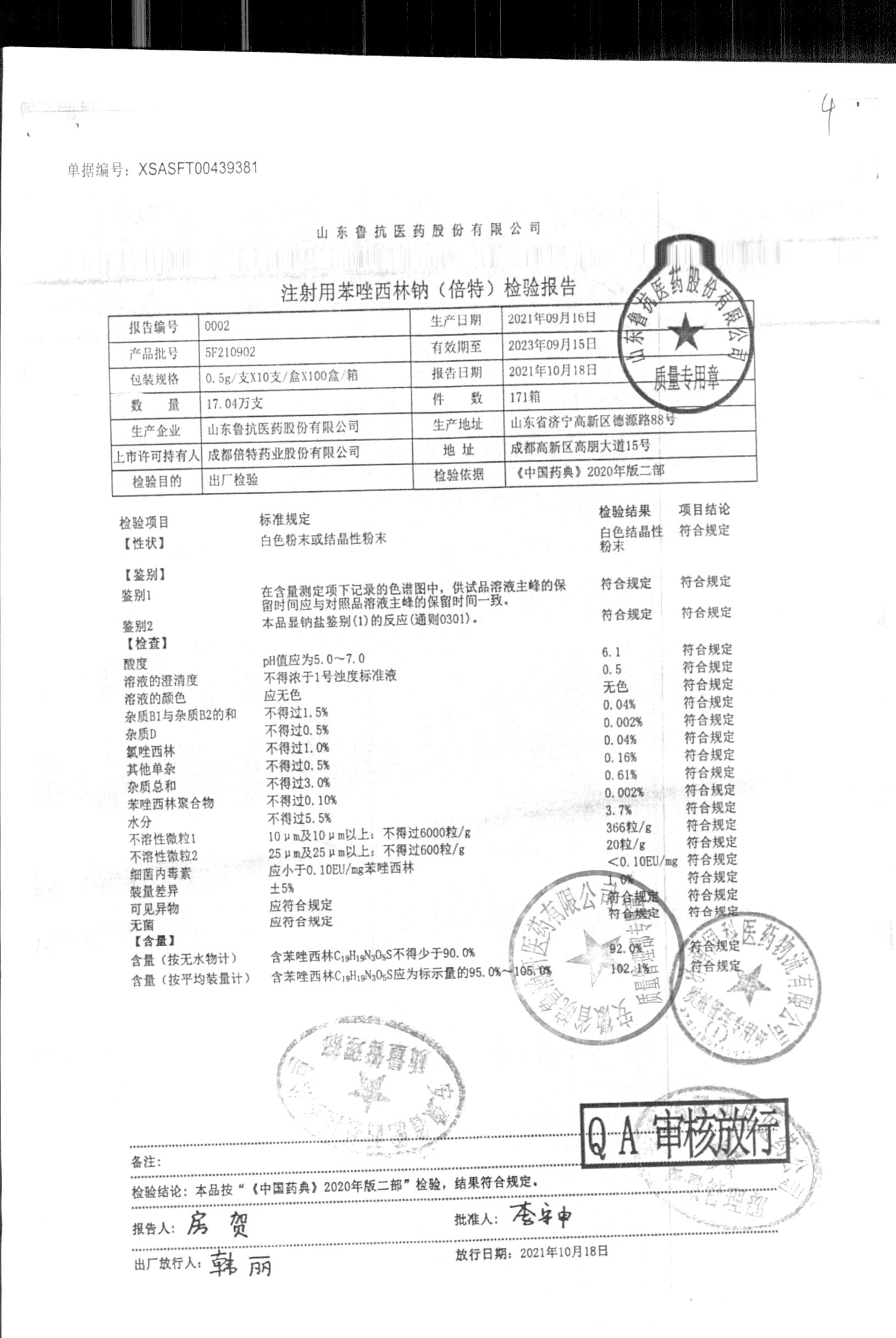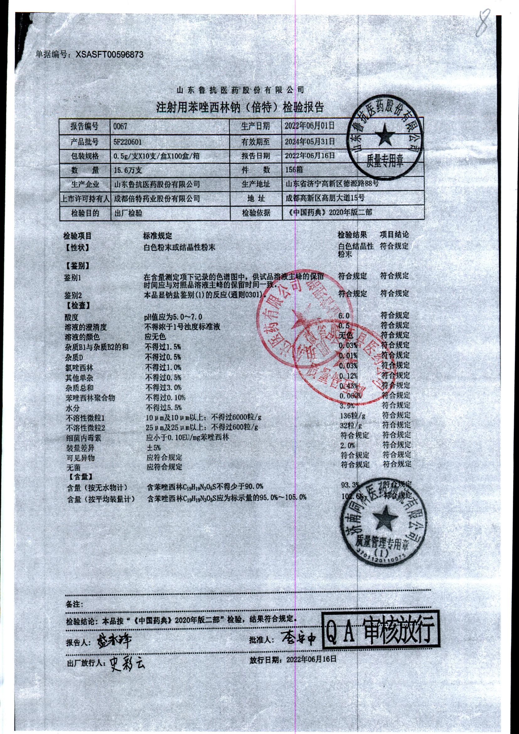 药检报告