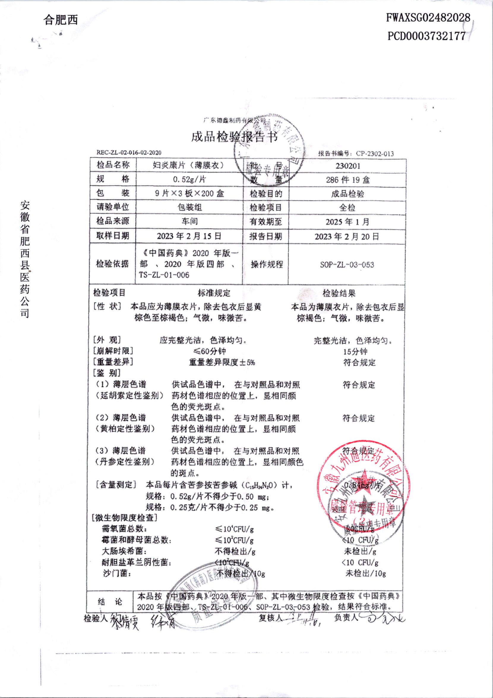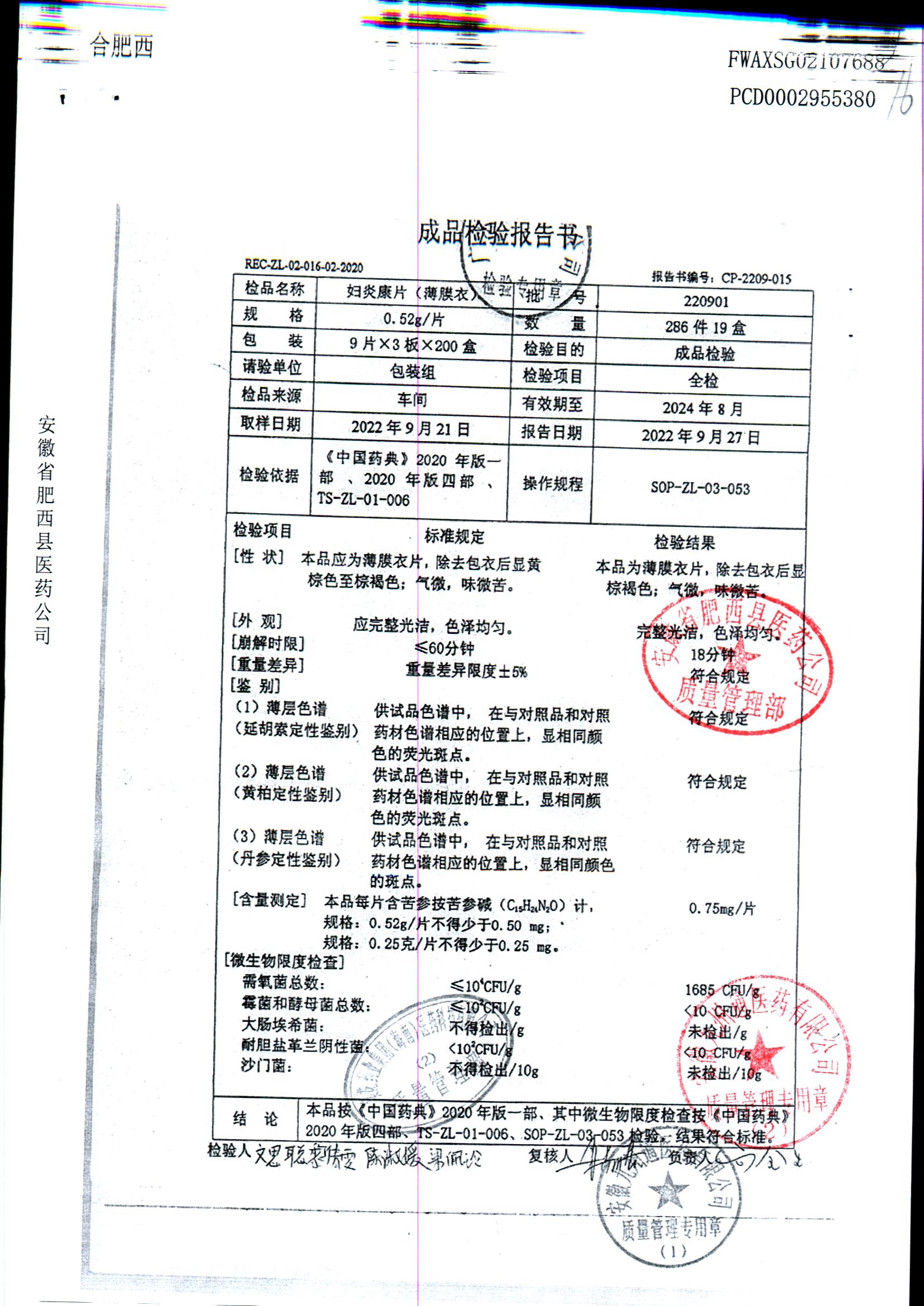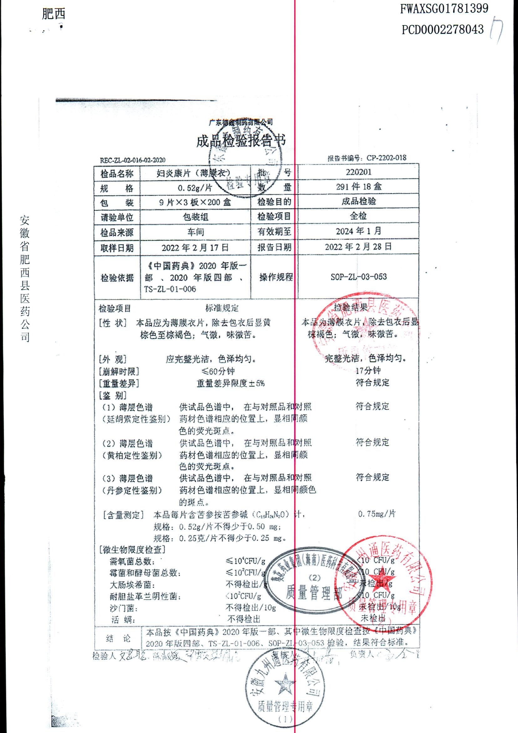 妇炎康片 | 0.52gx27片 | 210801 | 查看详情 |