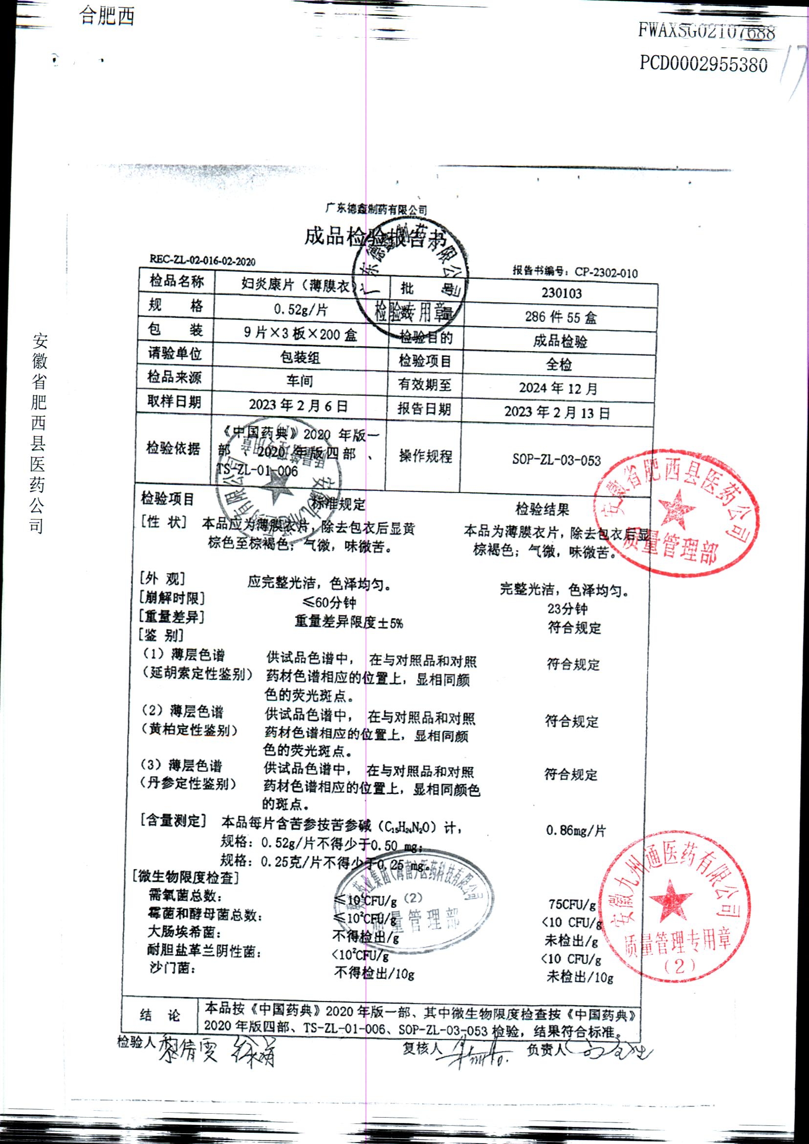 妇炎康片 | 0.52gx27片 | 230103 | 查看详情 |