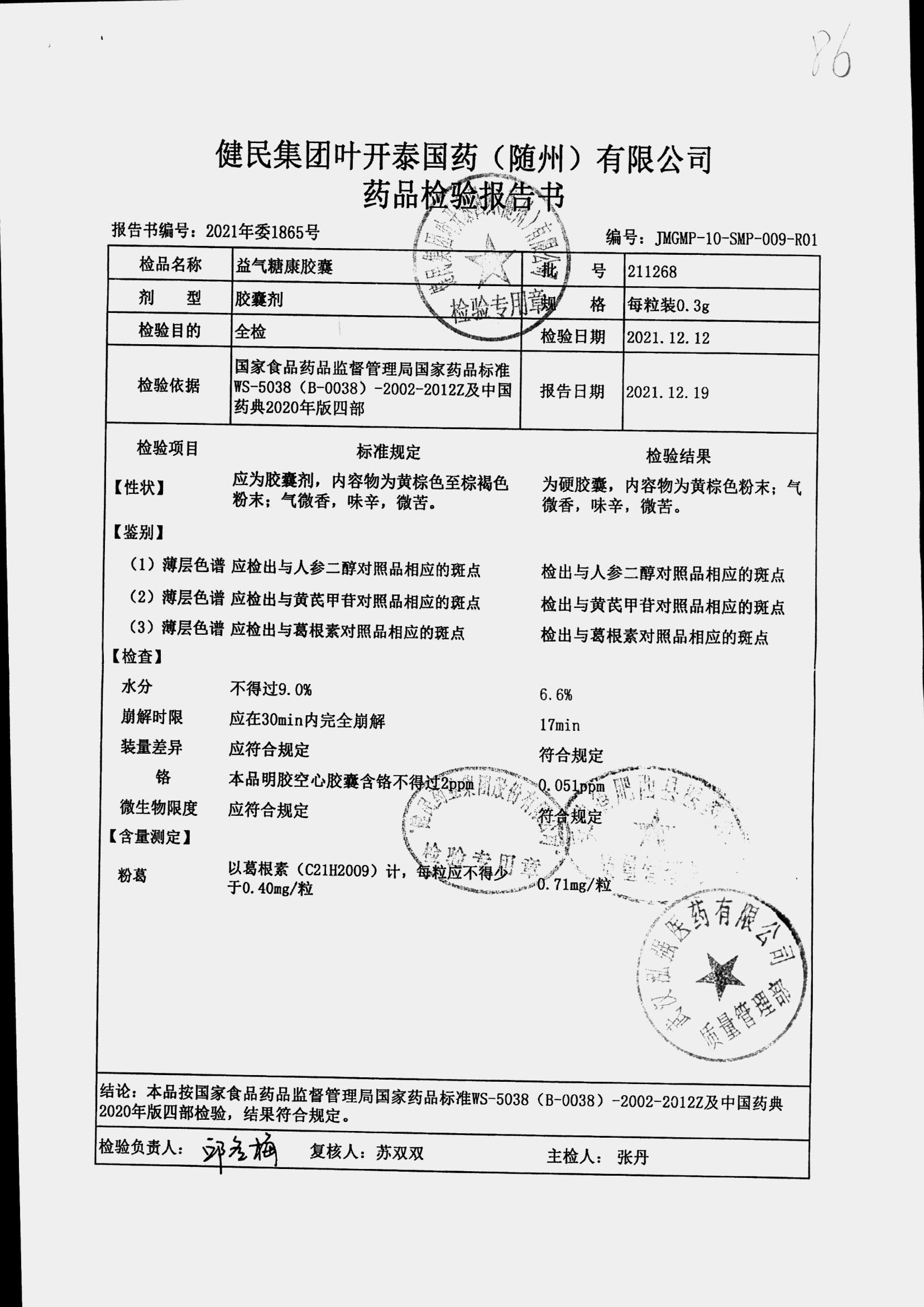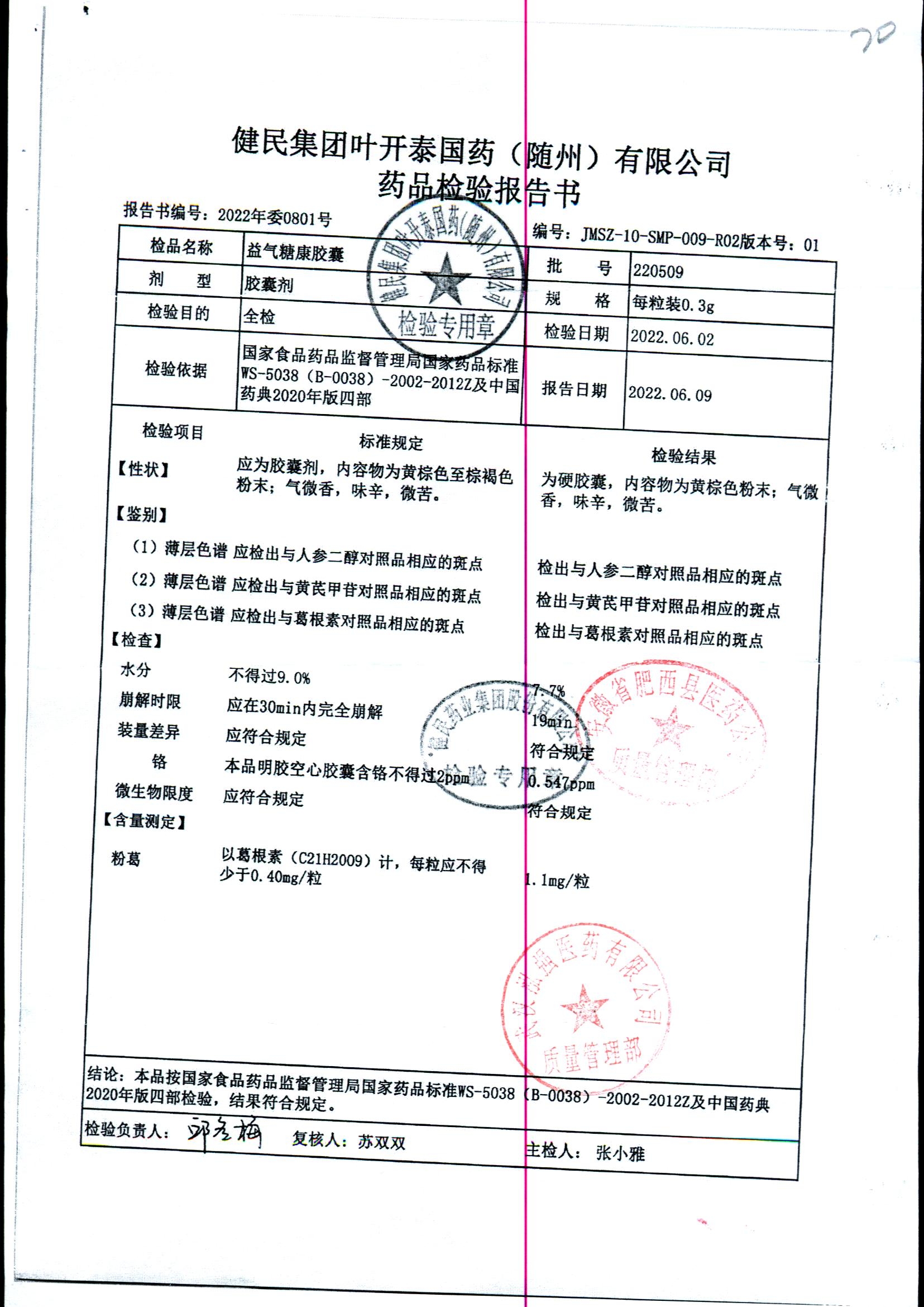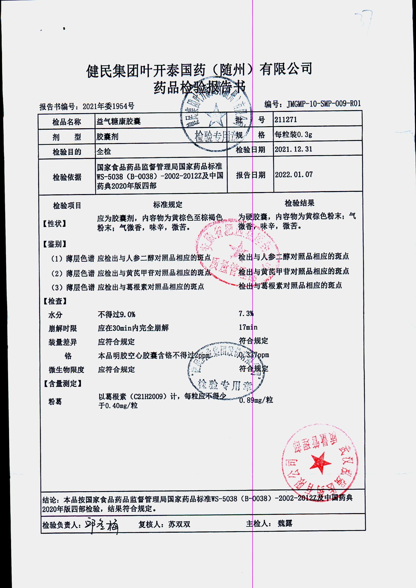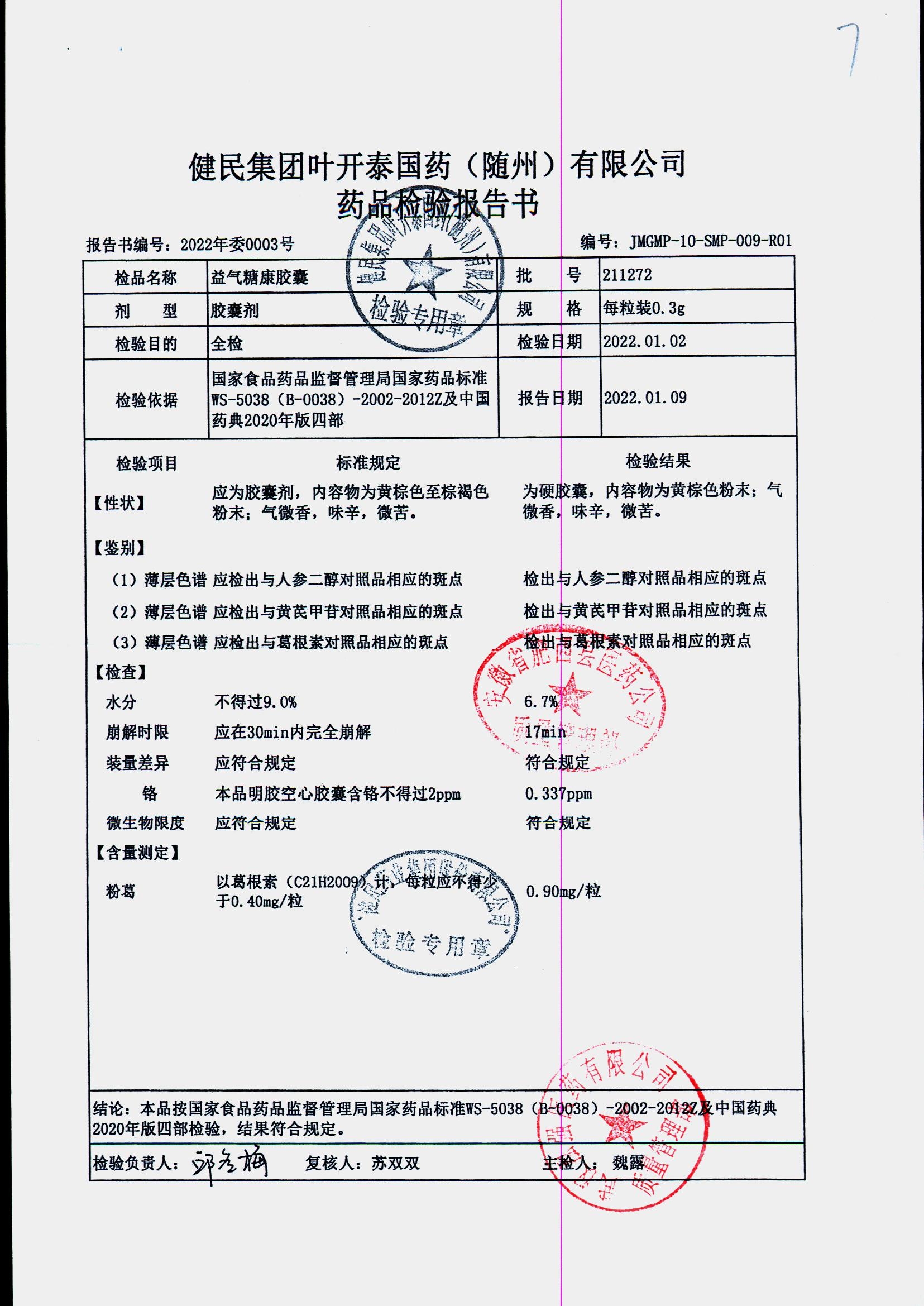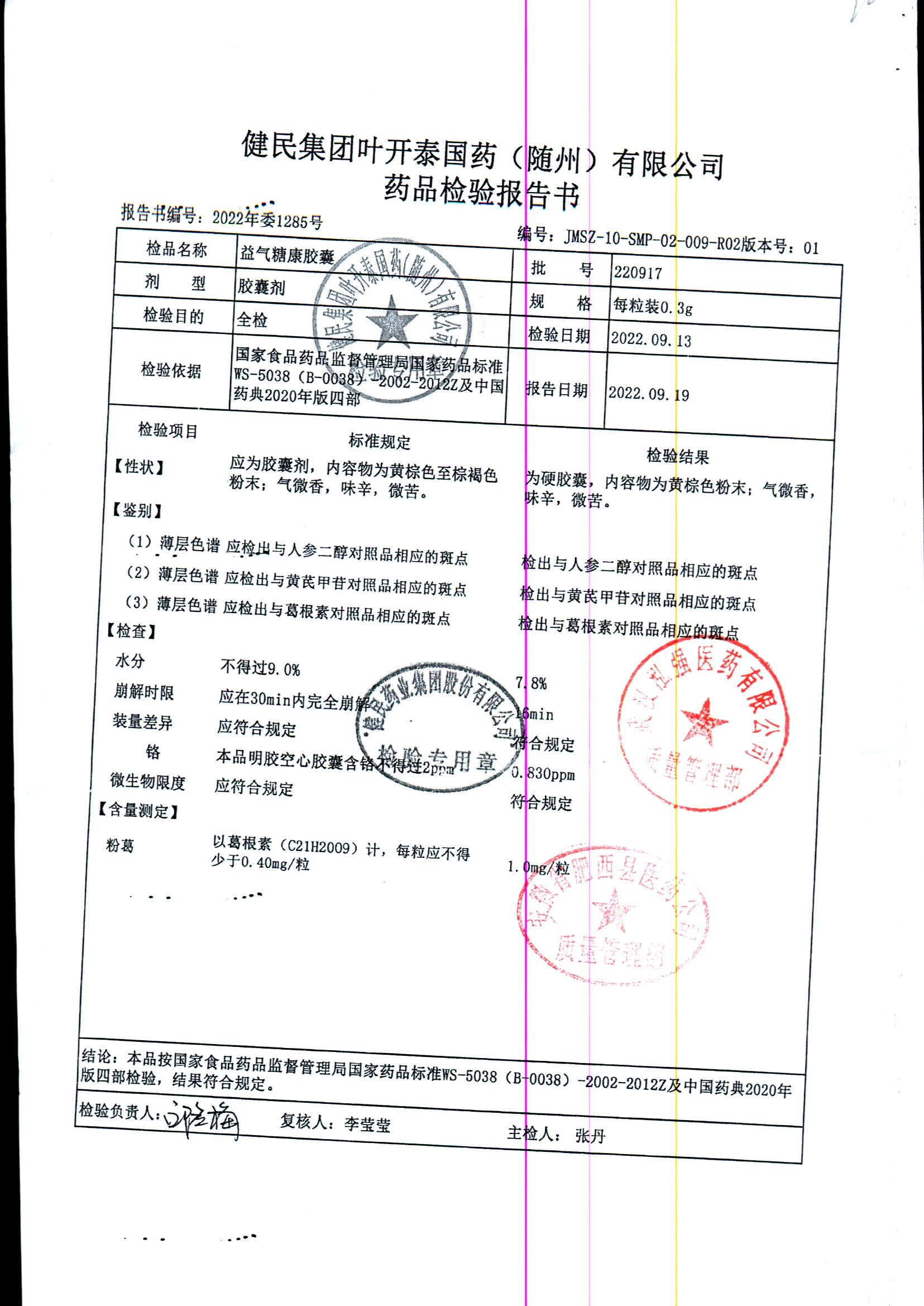 益气糖康胶囊 | 0.3克 | 220509 | 查看详情 |