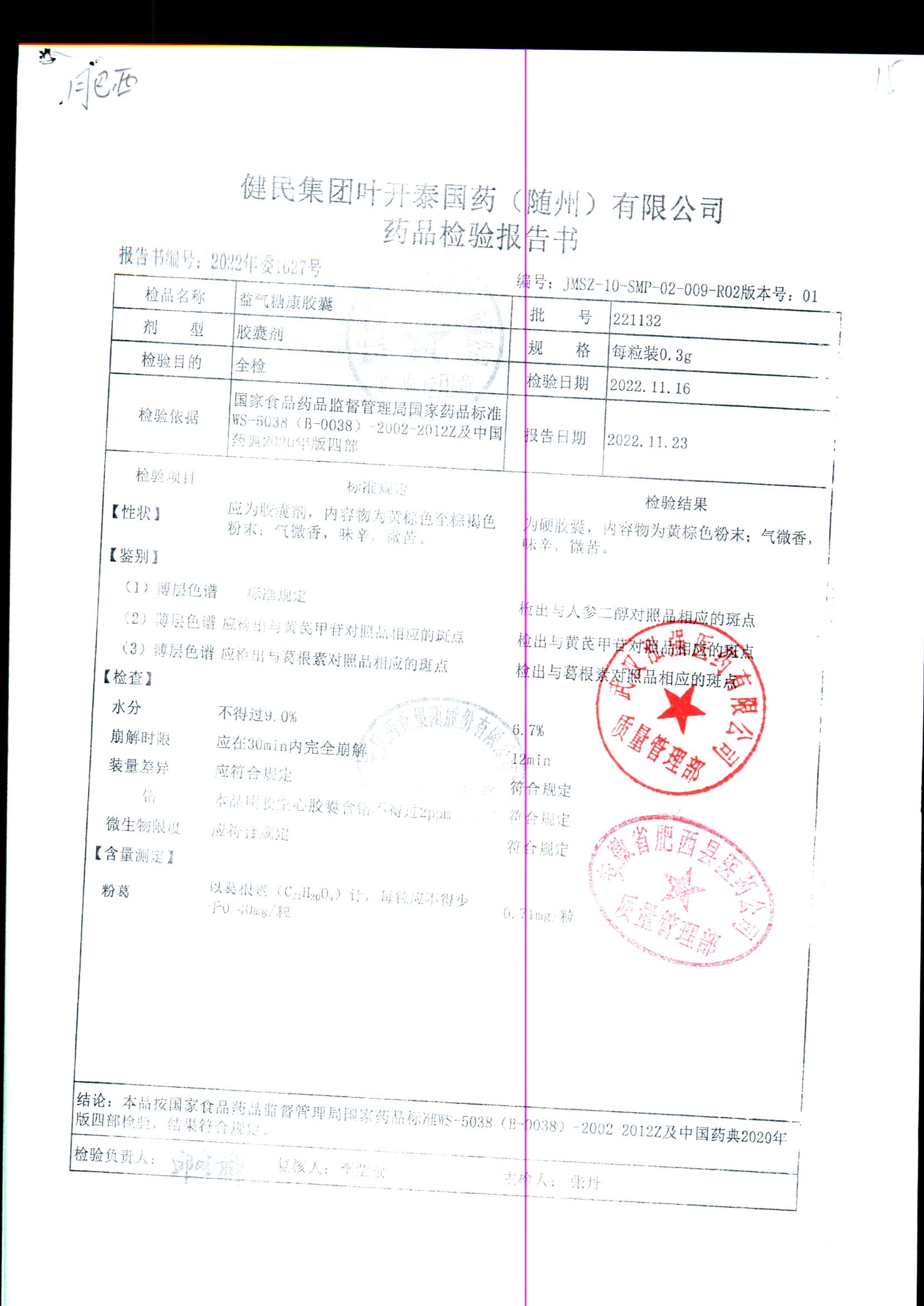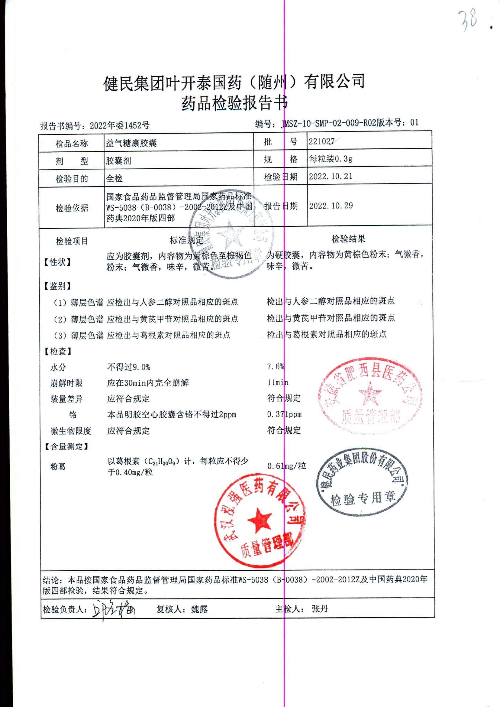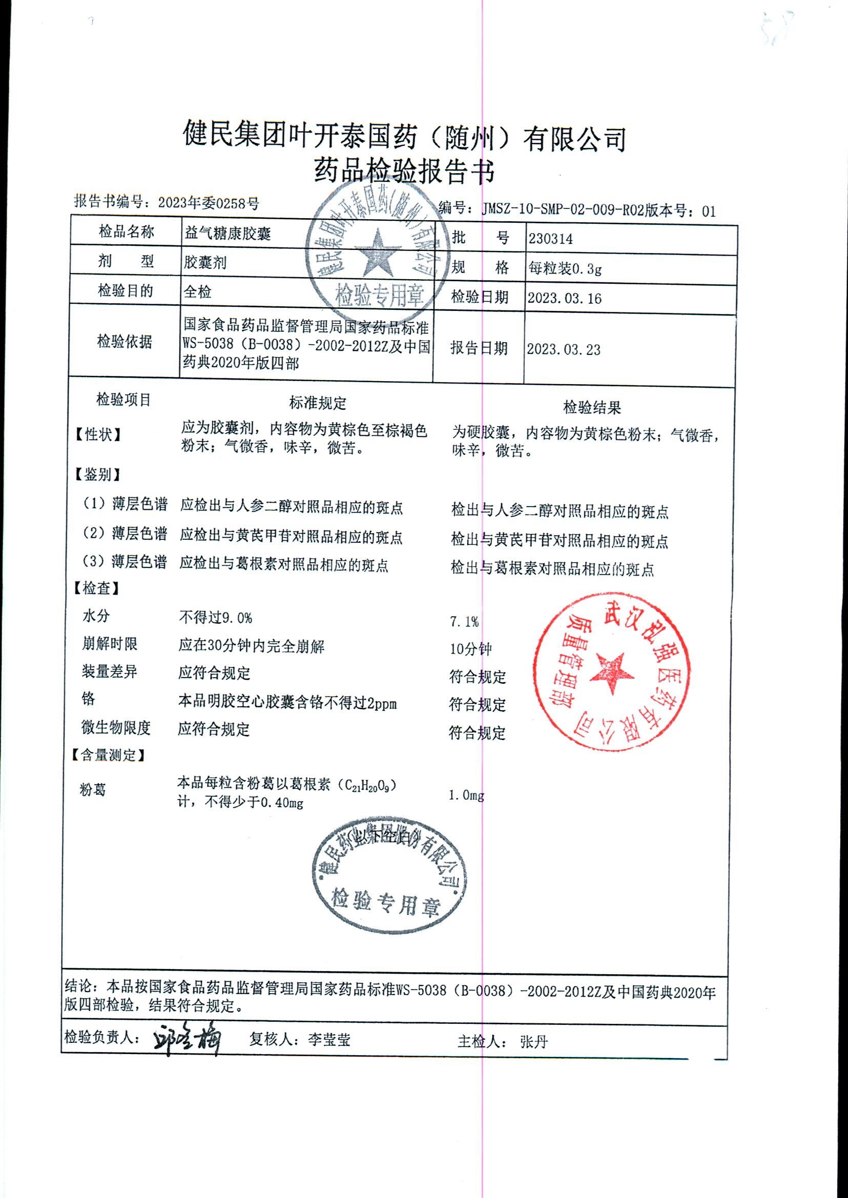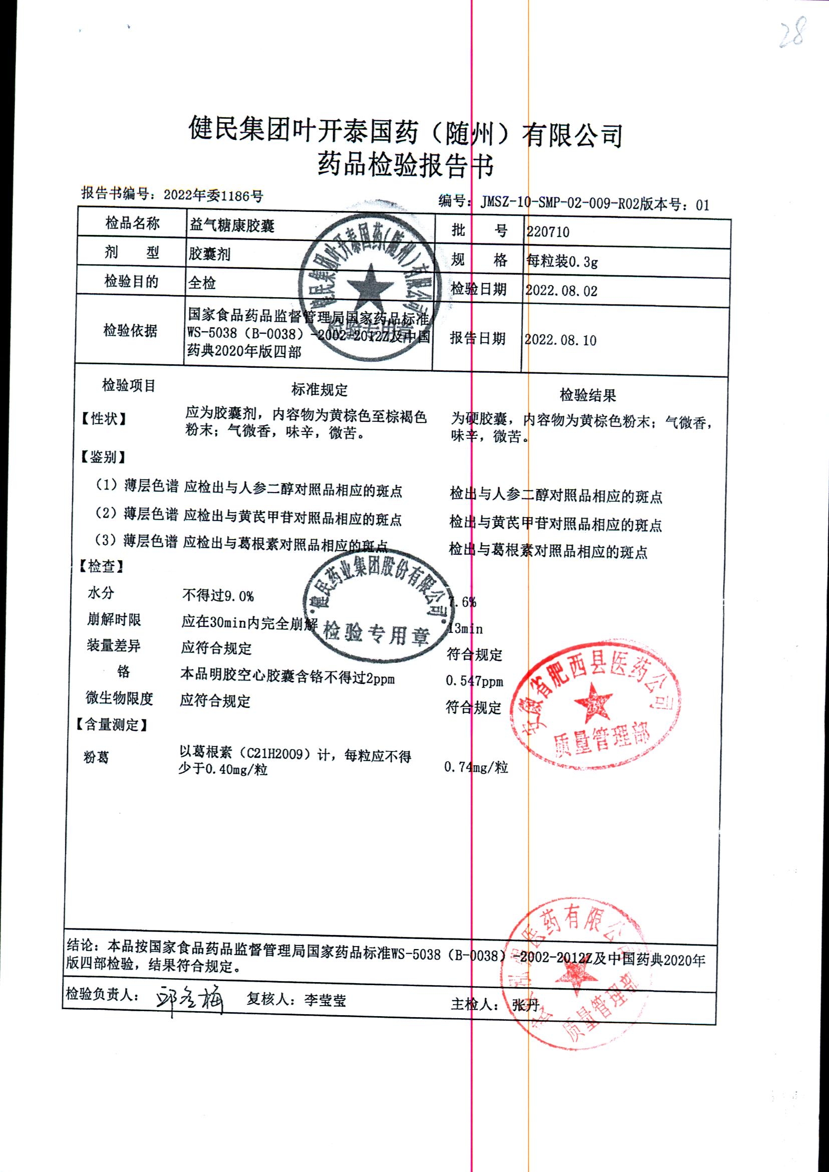 益气糖康胶囊 | 0.3克 | 220509 | 查看详情 |