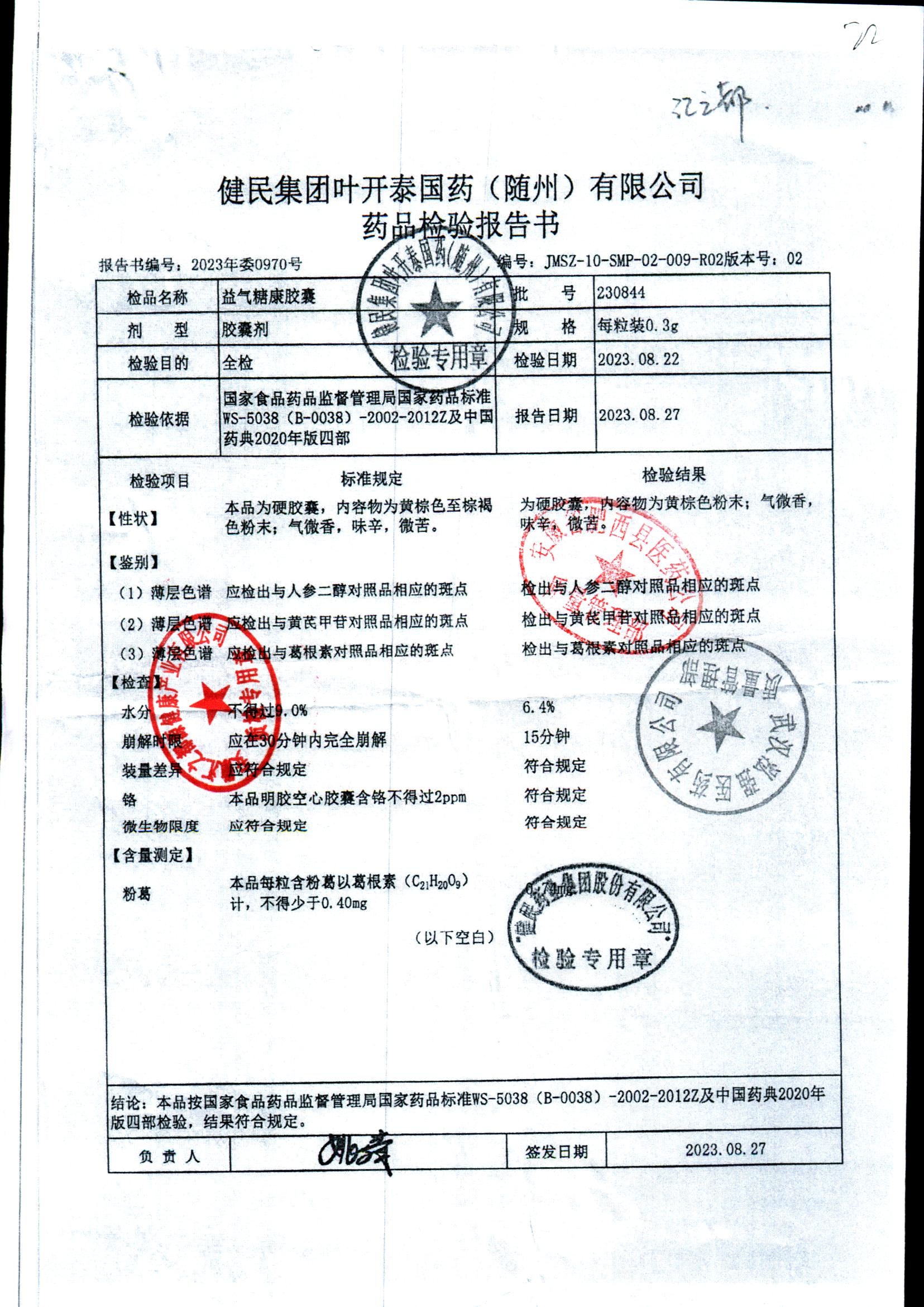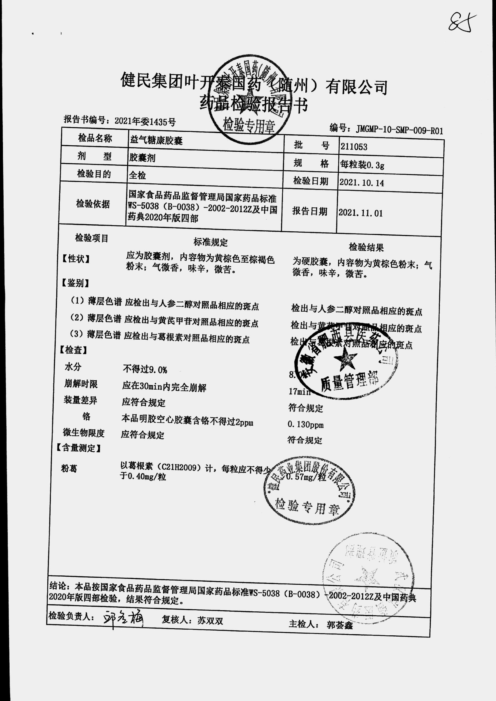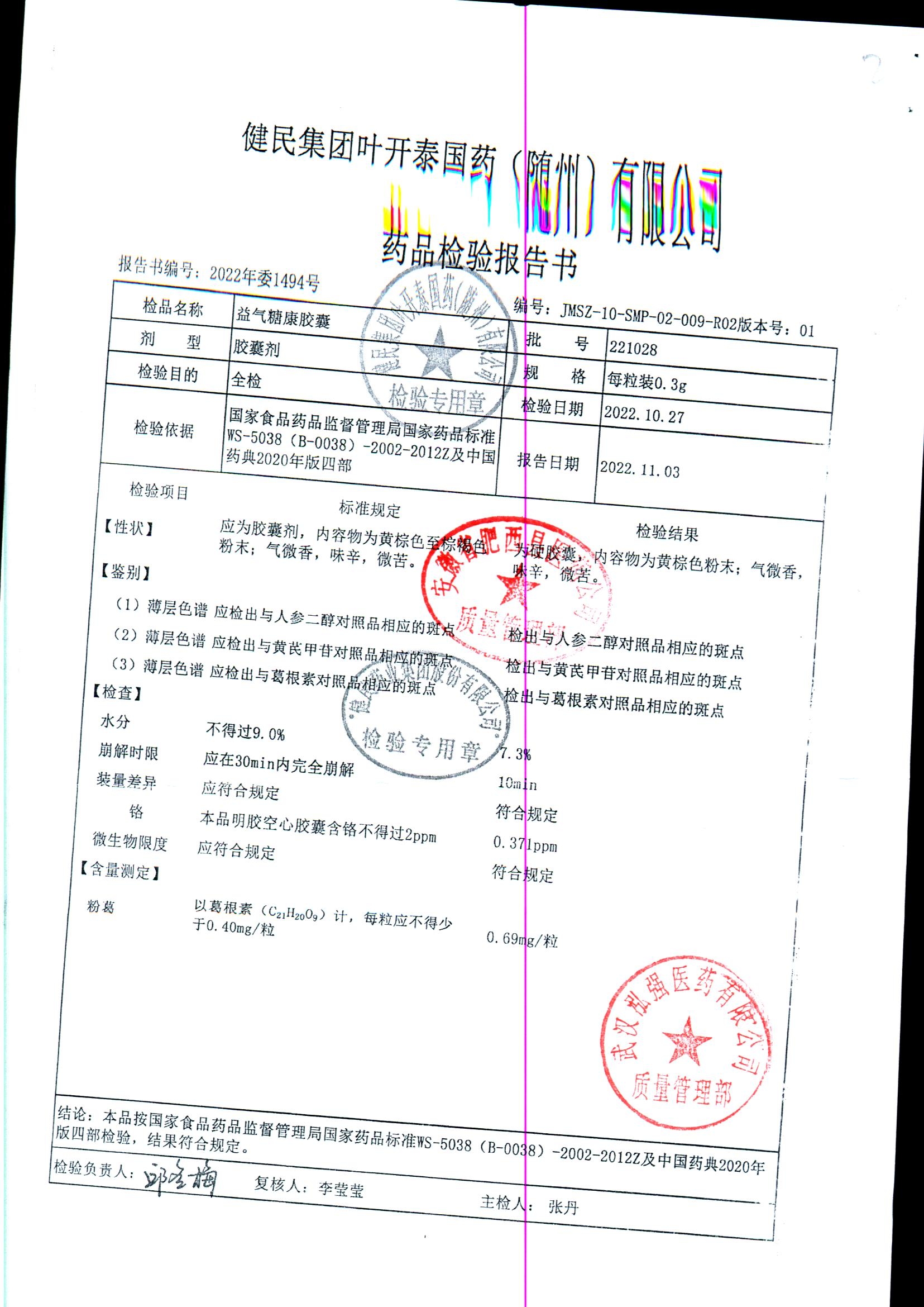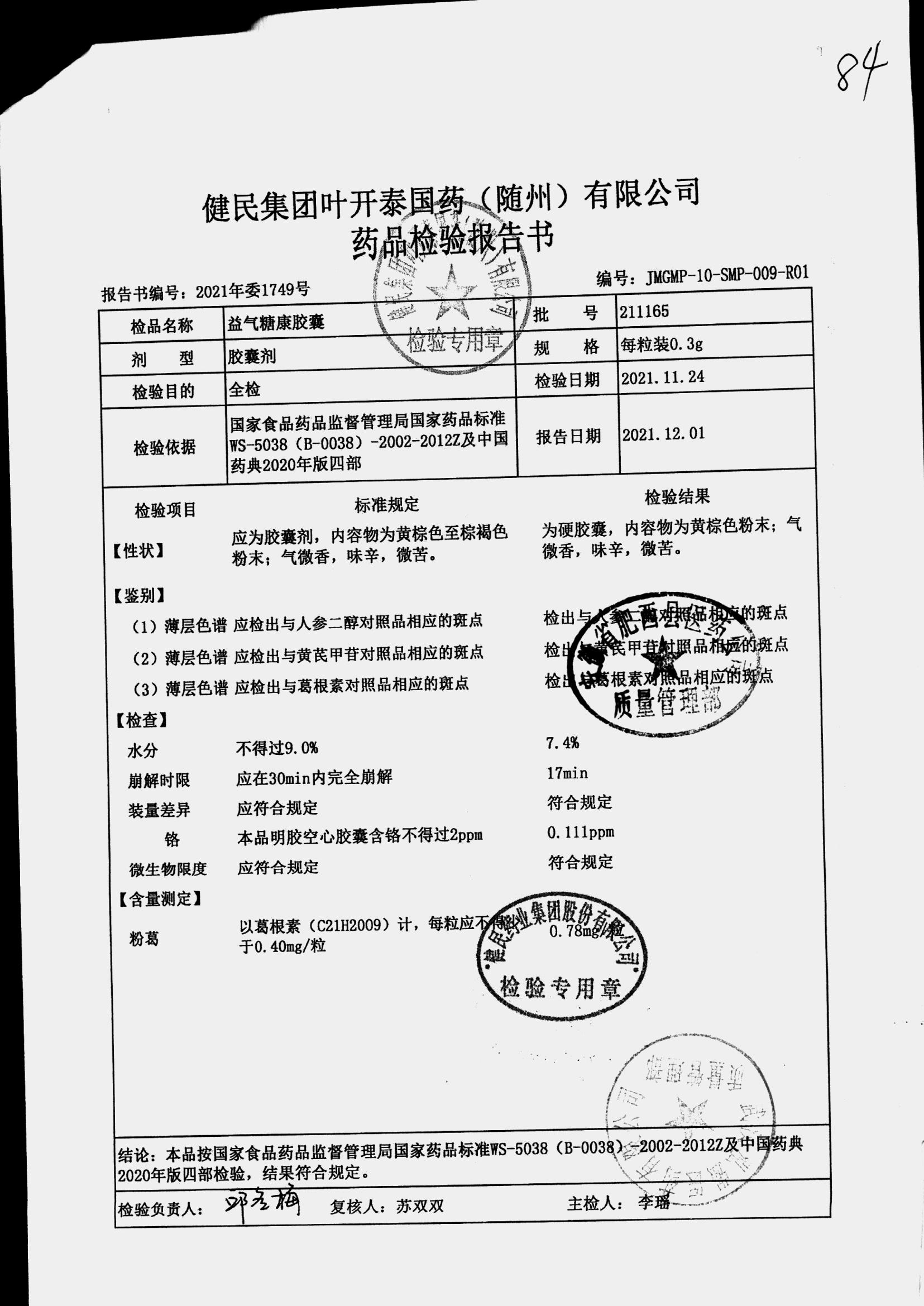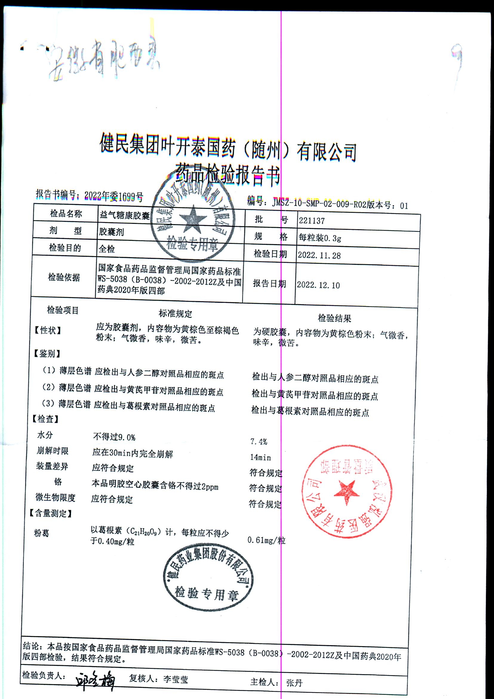 益气糖康胶囊 | 0.3克 | 220509 | 查看详情 |