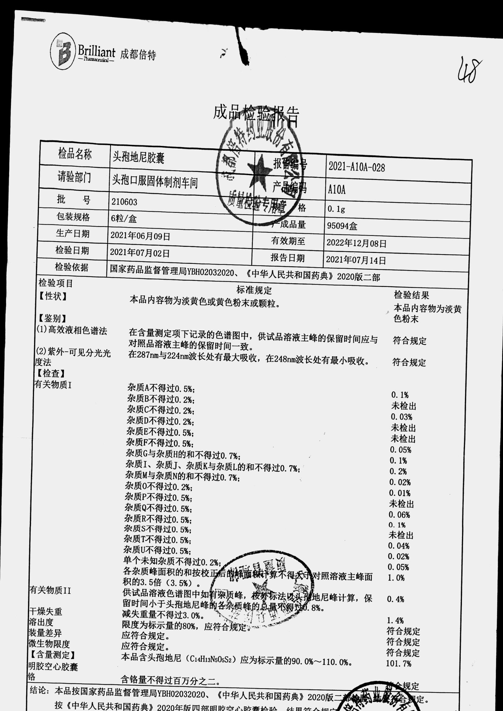 头孢地尼胶囊 | 0.1克6粒 | 210603 | 查看详情 |