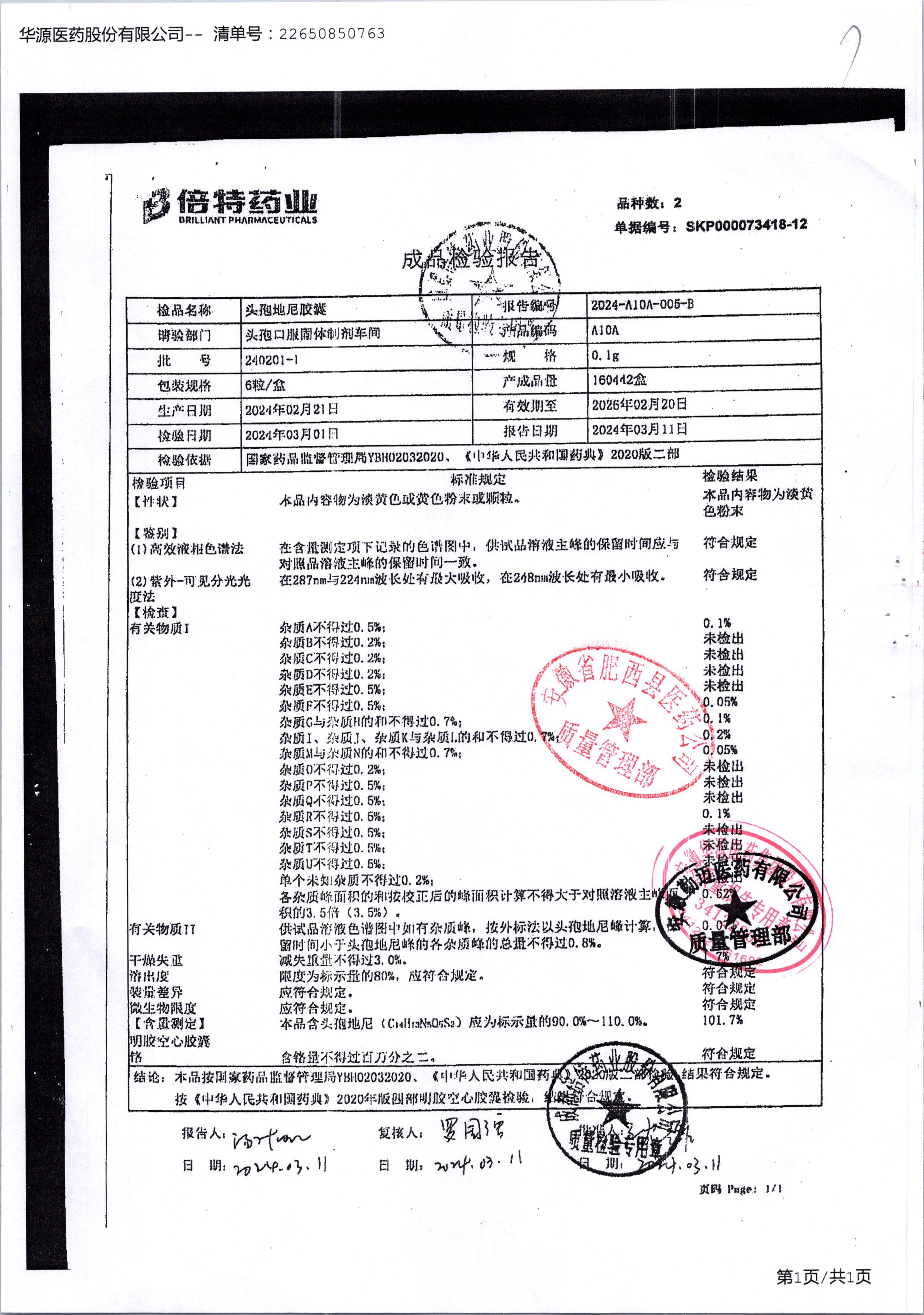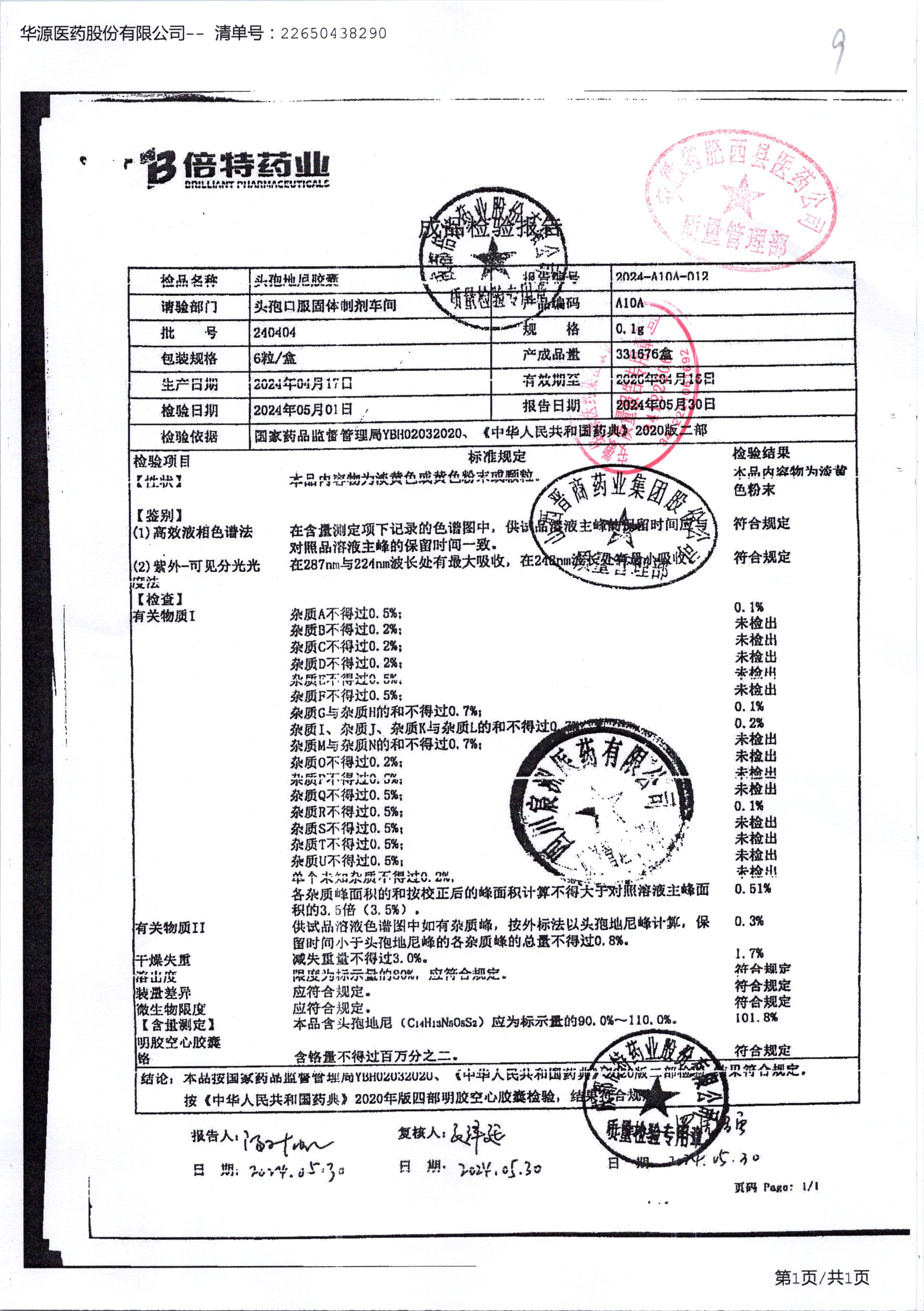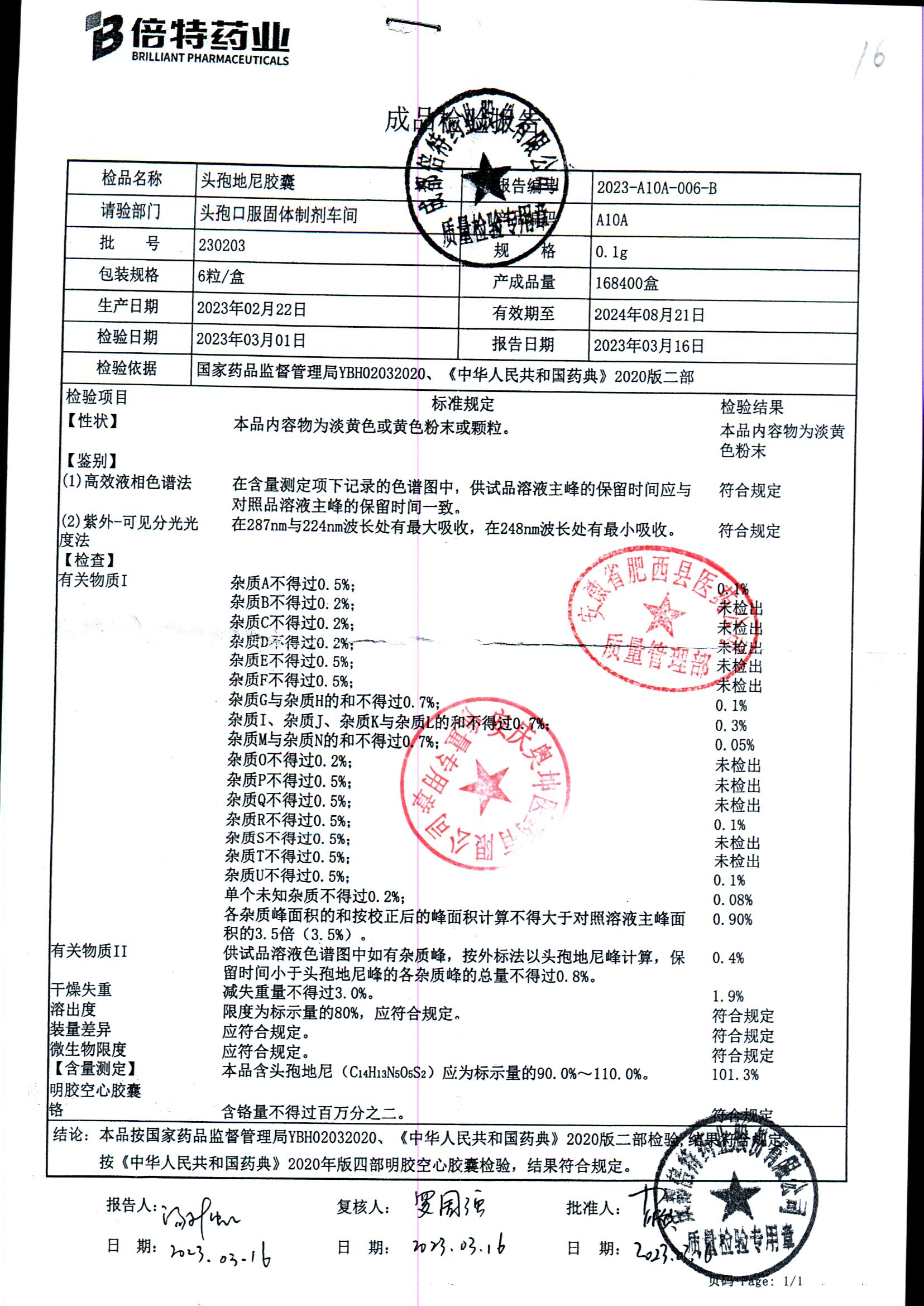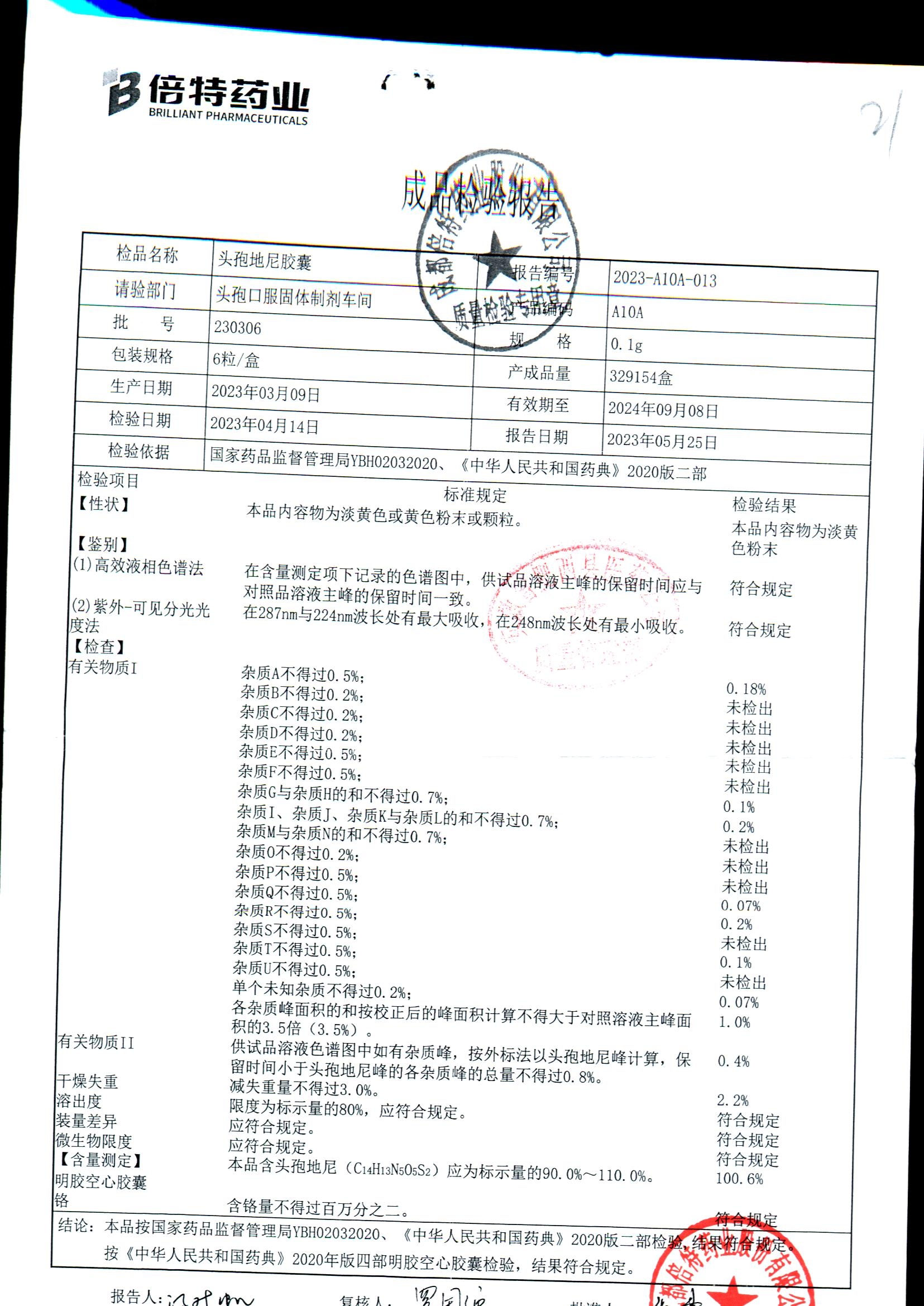头孢地尼胶囊 | 0.1克6粒 | 240404 | 查看详情 |