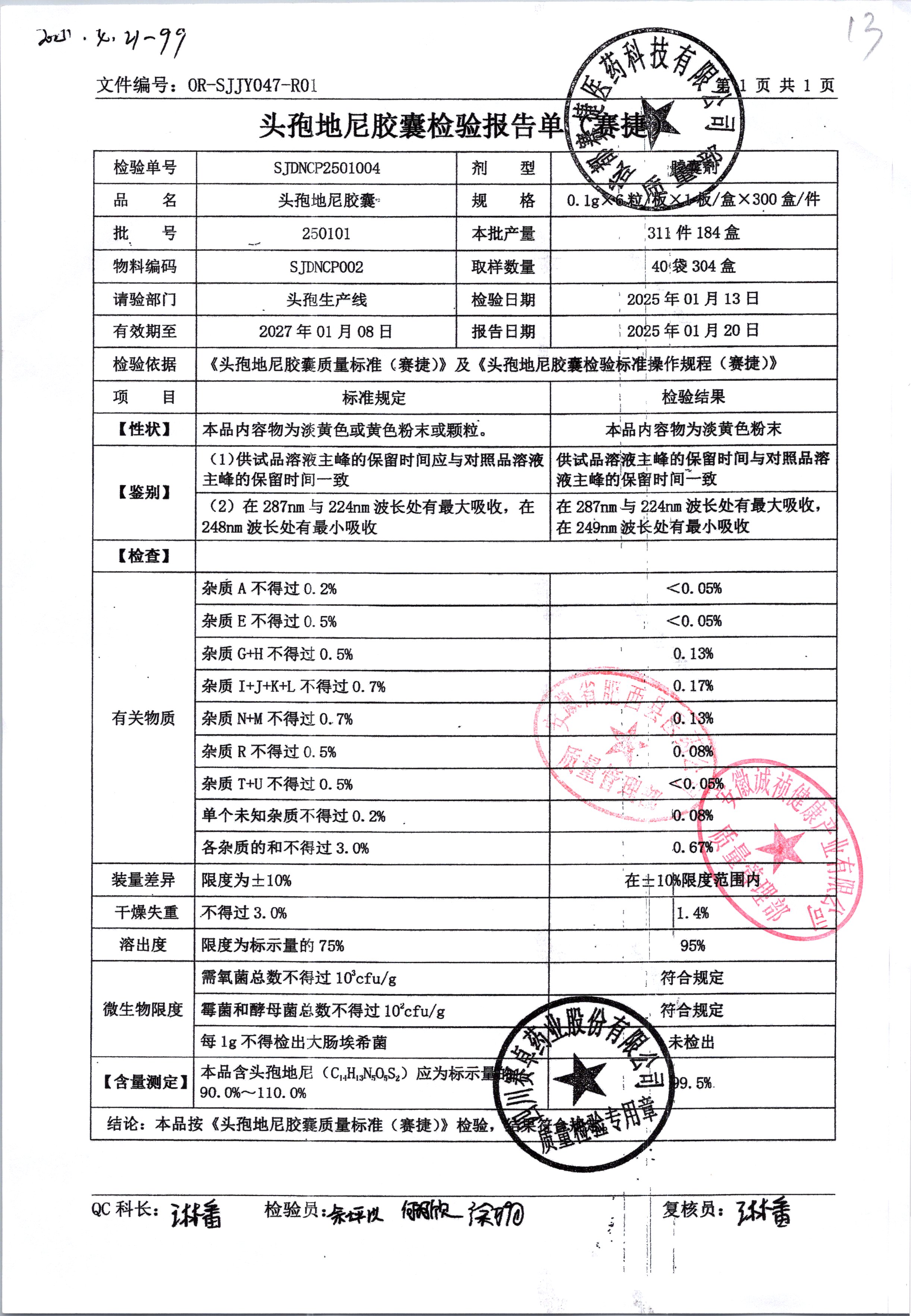 头孢地尼胶囊 | 0.1克6粒 | 250101/2 | 查看详情 |