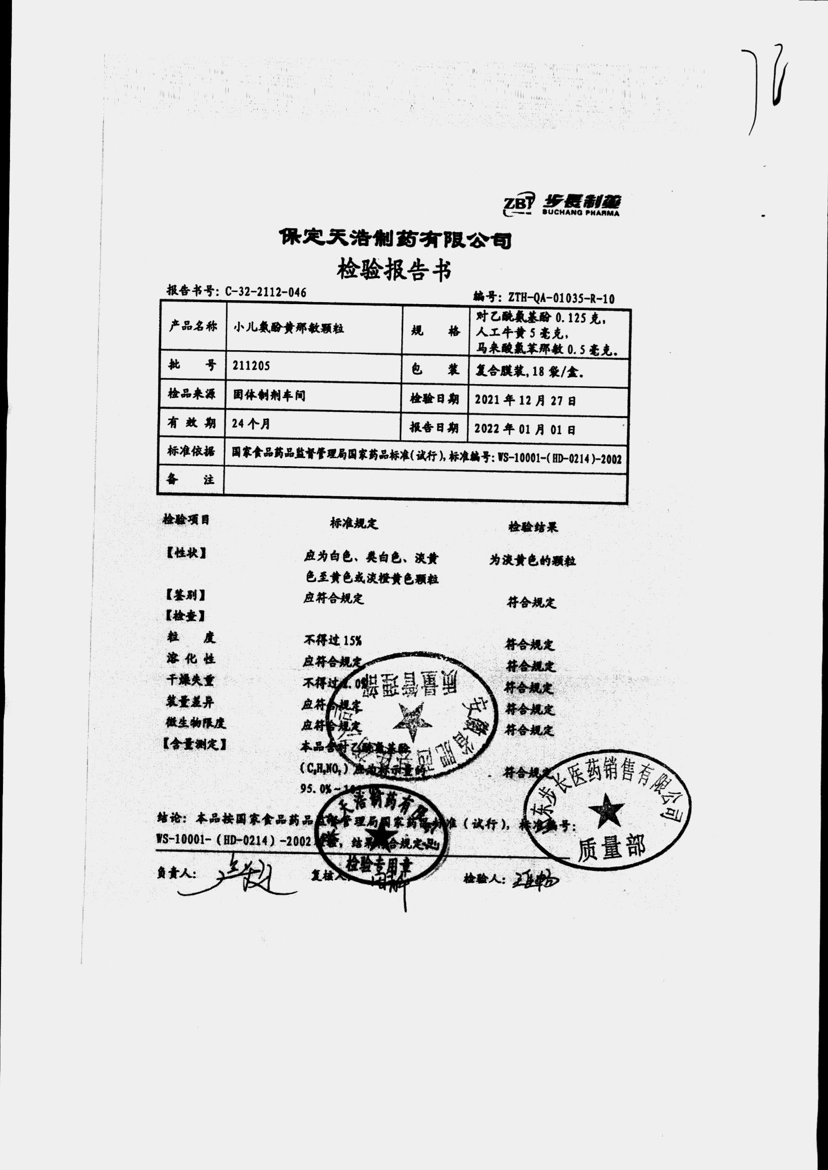 小儿氨酚黄那敏颗粒 | 18袋 | 211205 | 查看详情 |