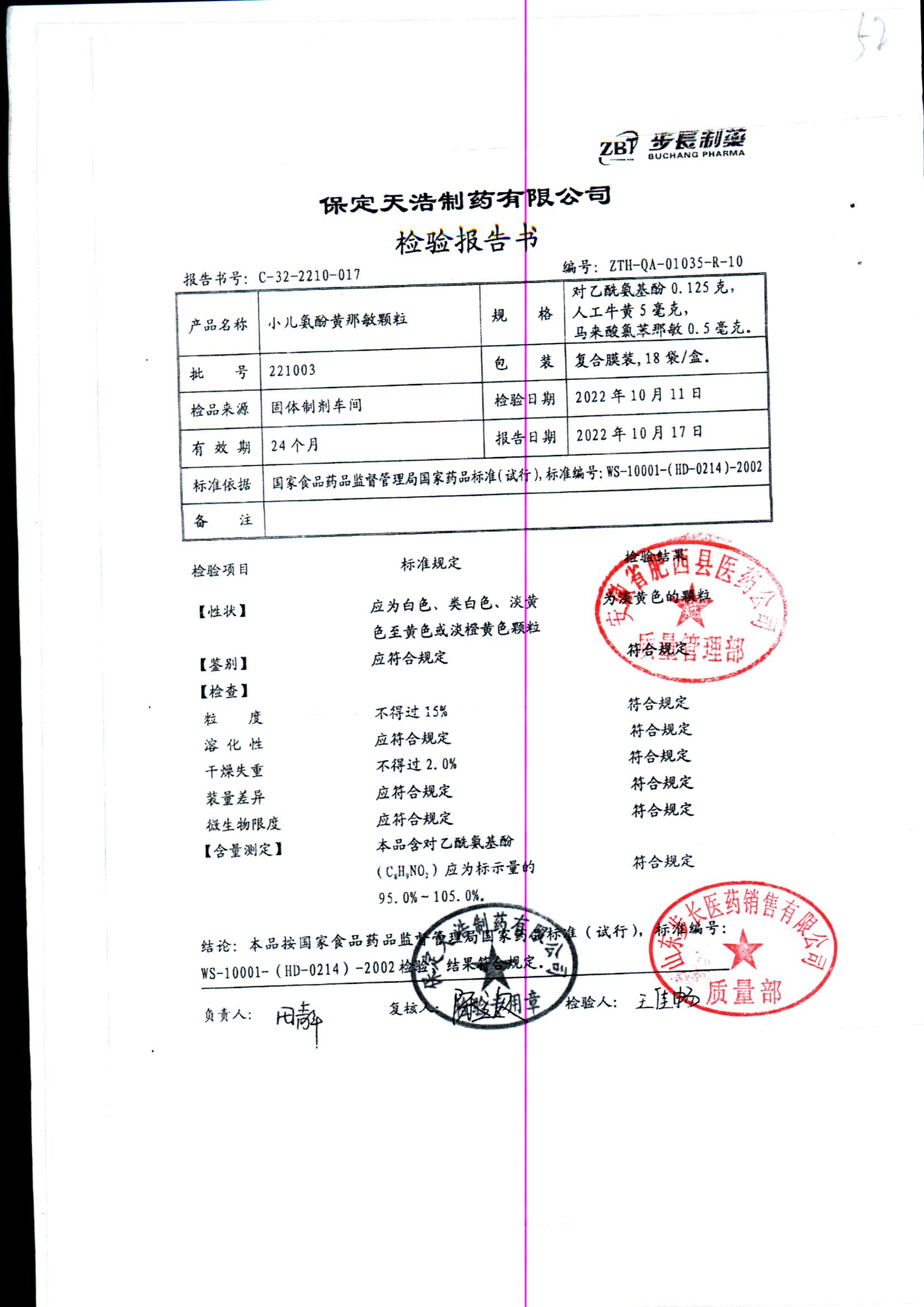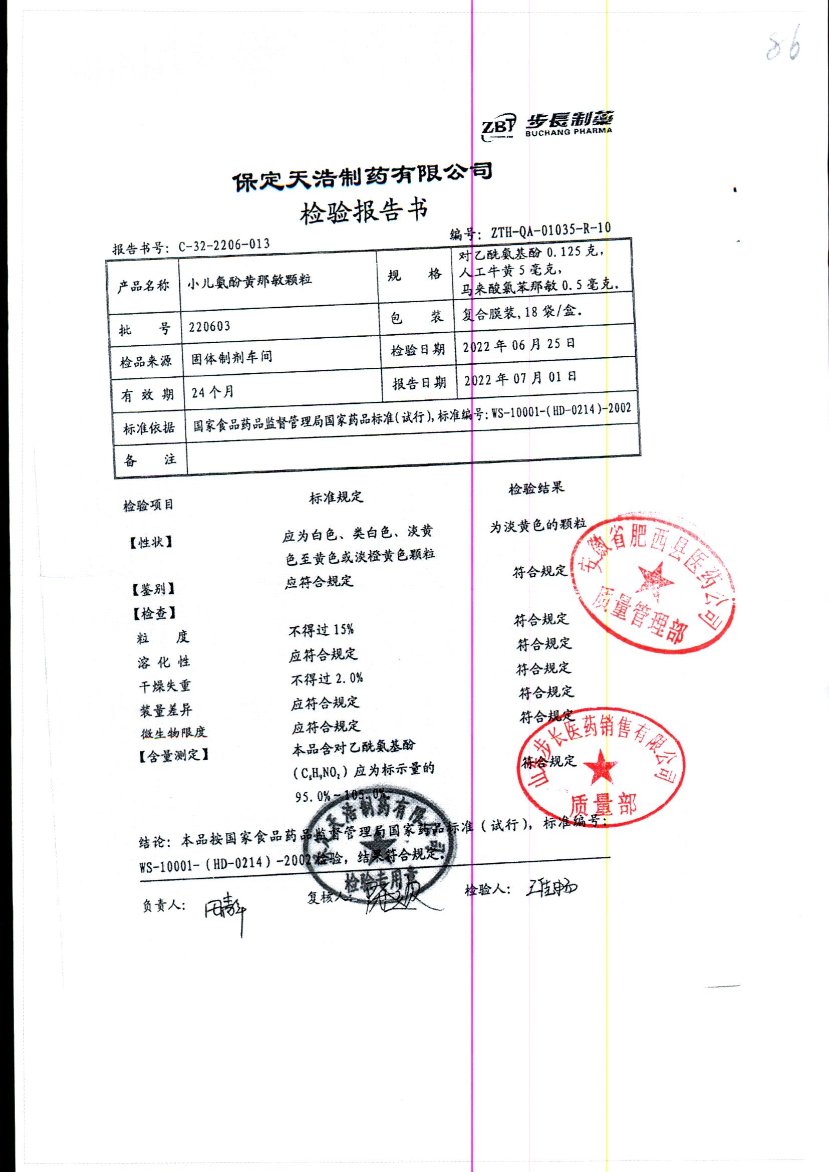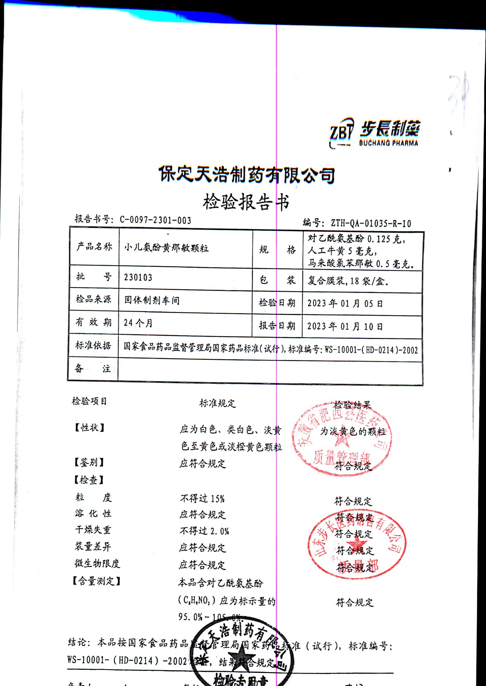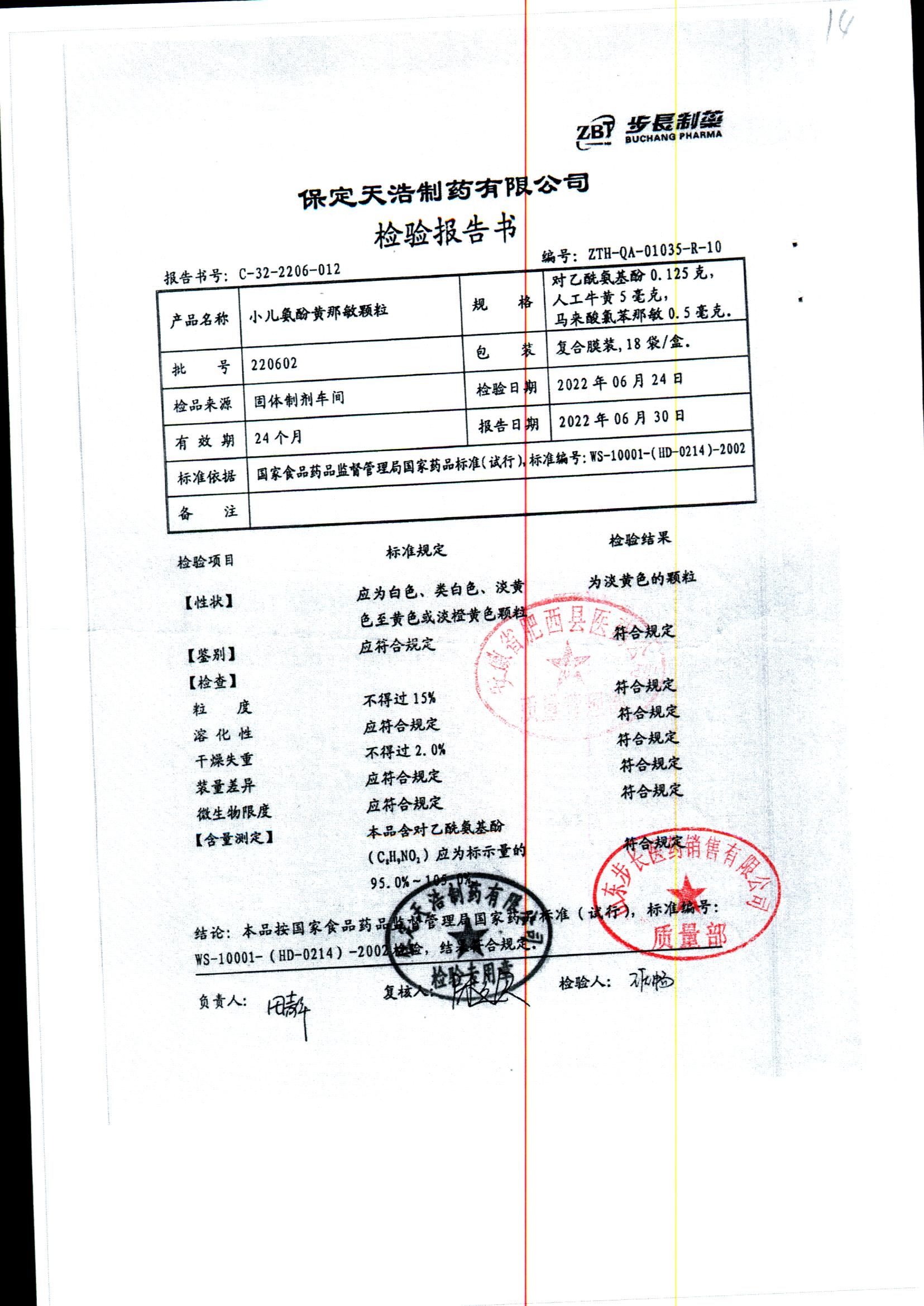 小儿氨酚黄那敏颗粒 | 18袋 | 220603 | 查看详情 |