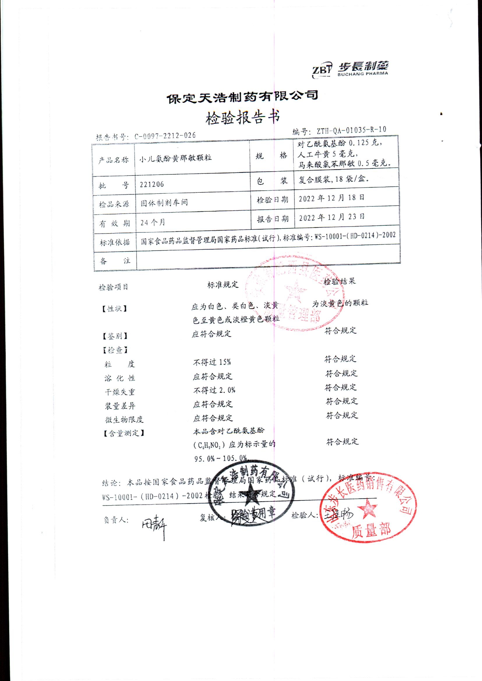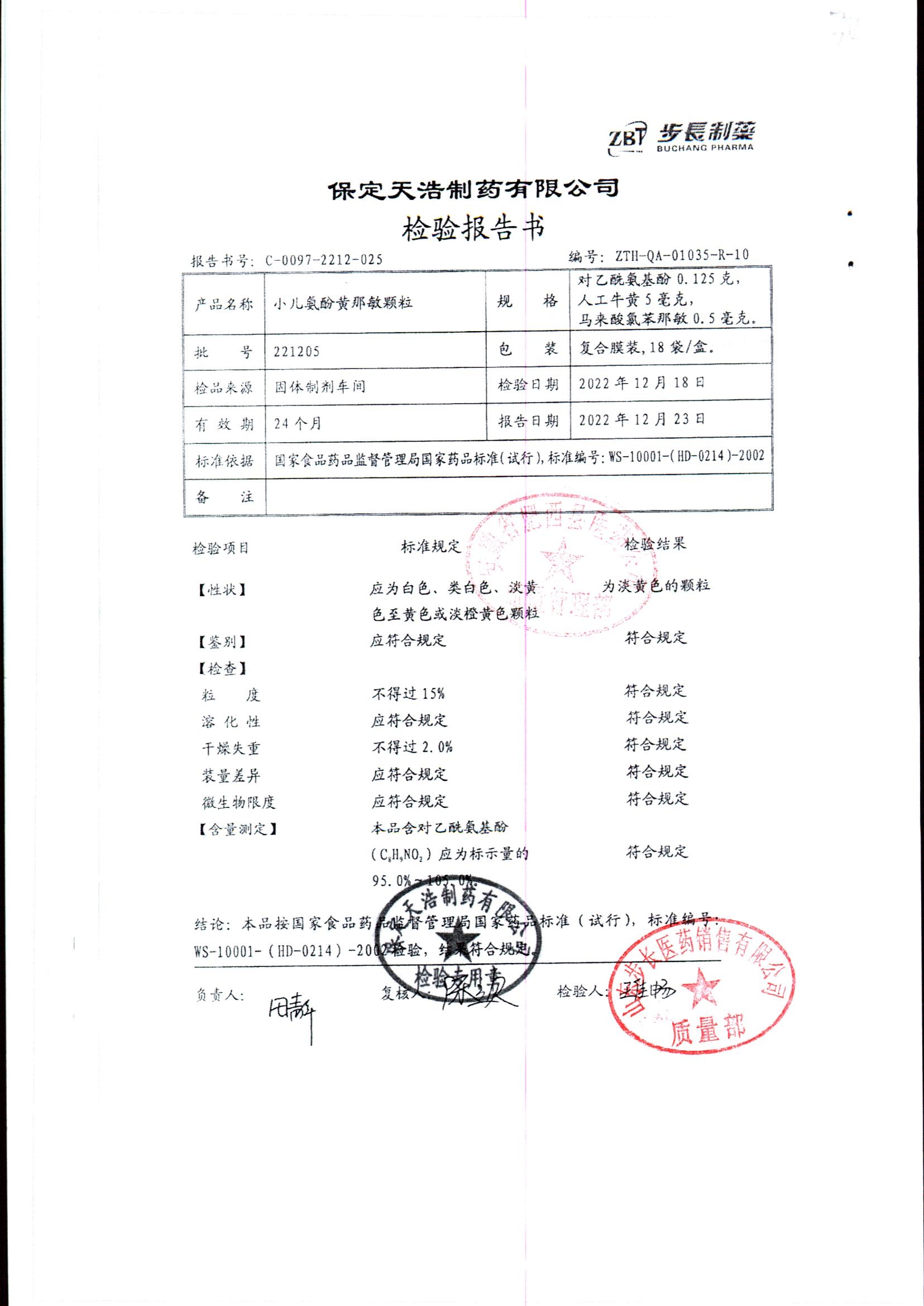 小儿氨酚黄那敏颗粒 | 18袋 | 221205 | 查看详情 |