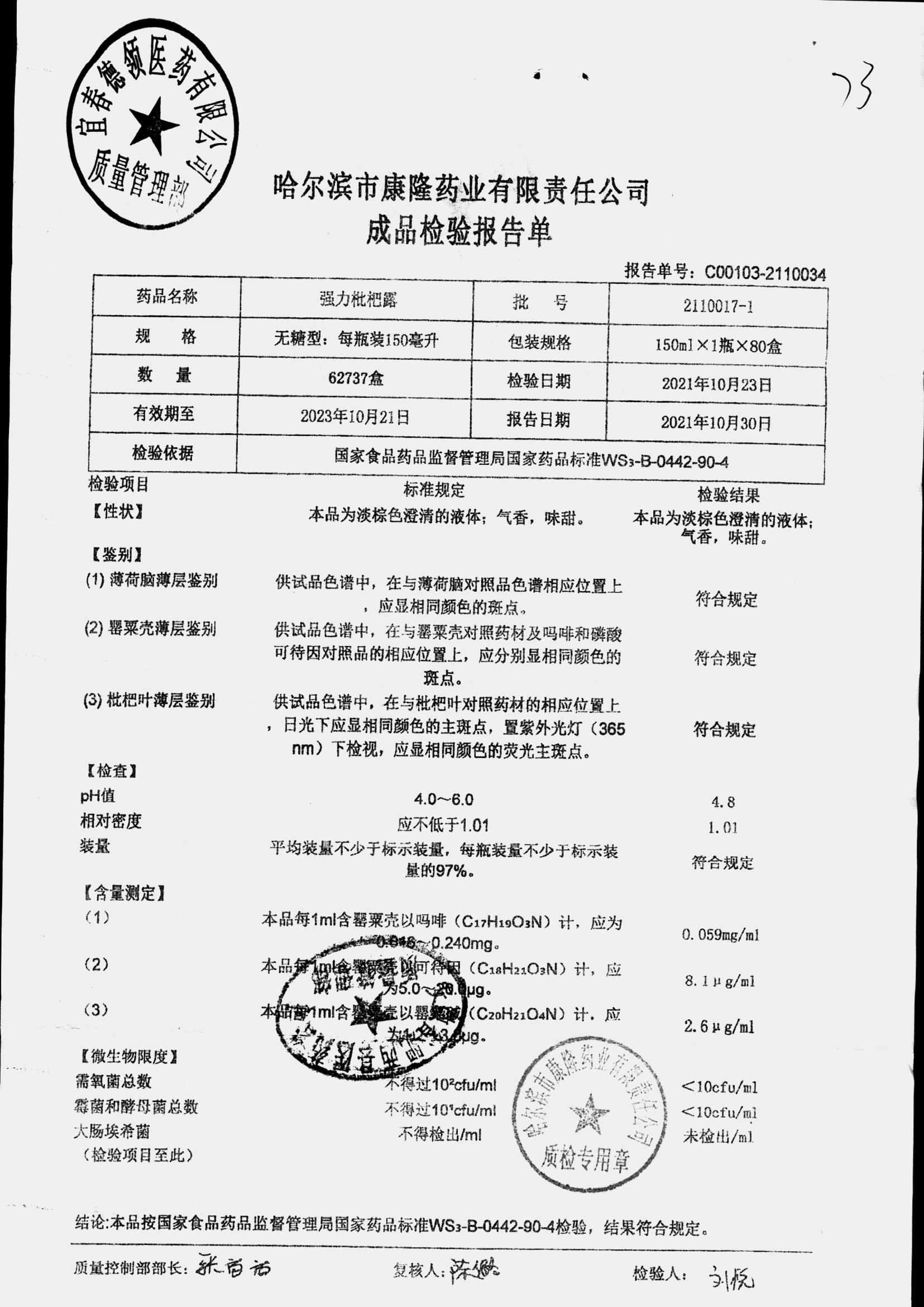 药检报告