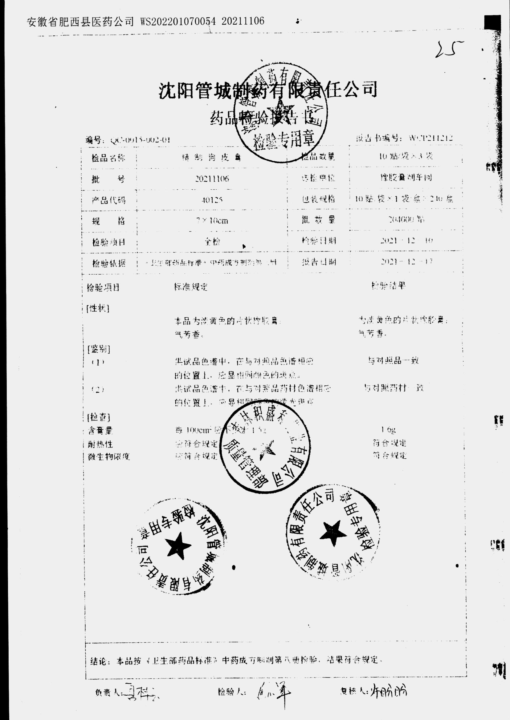 精制狗皮膏 | 7x10cm | 20211106 | 查看详情 |