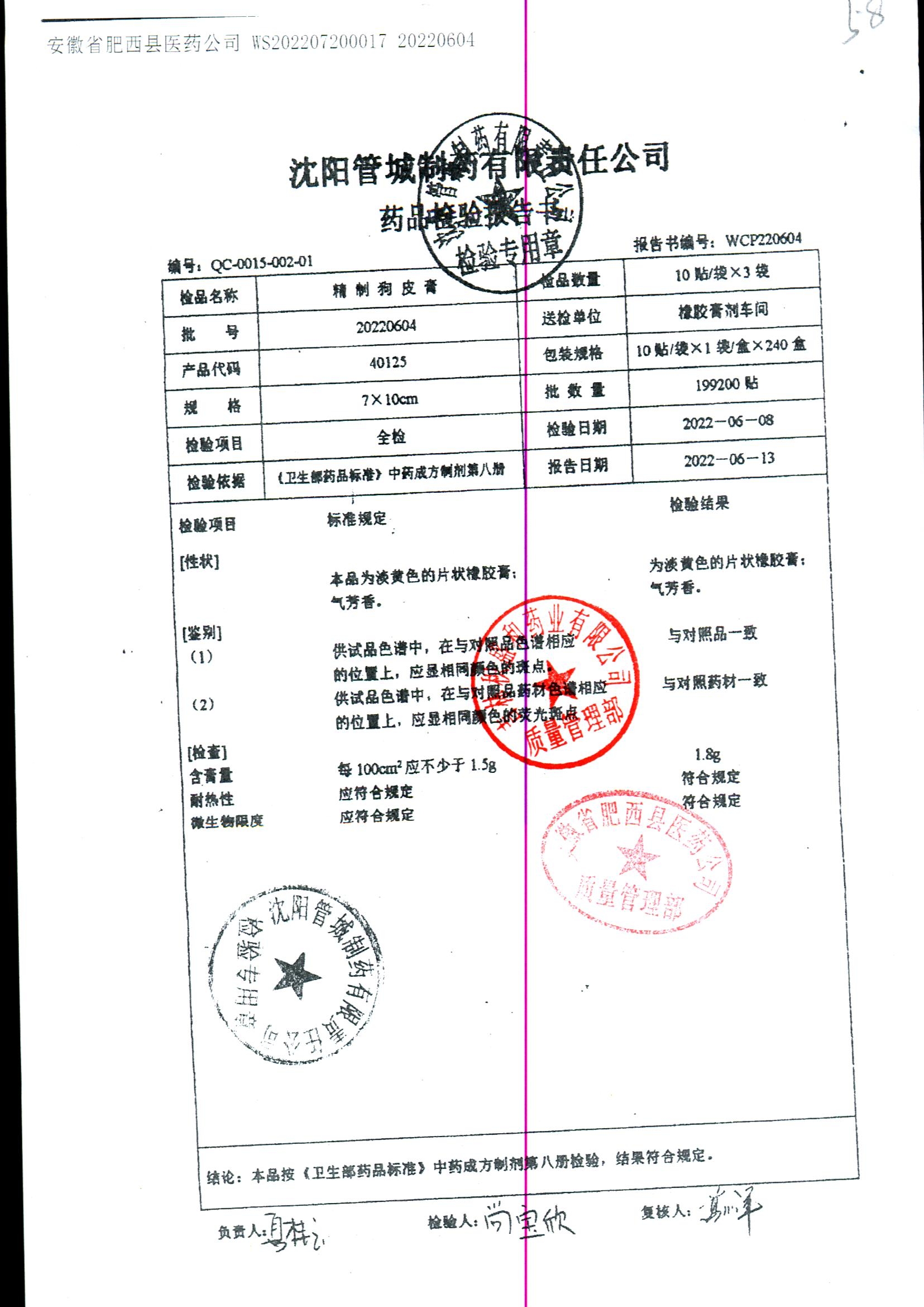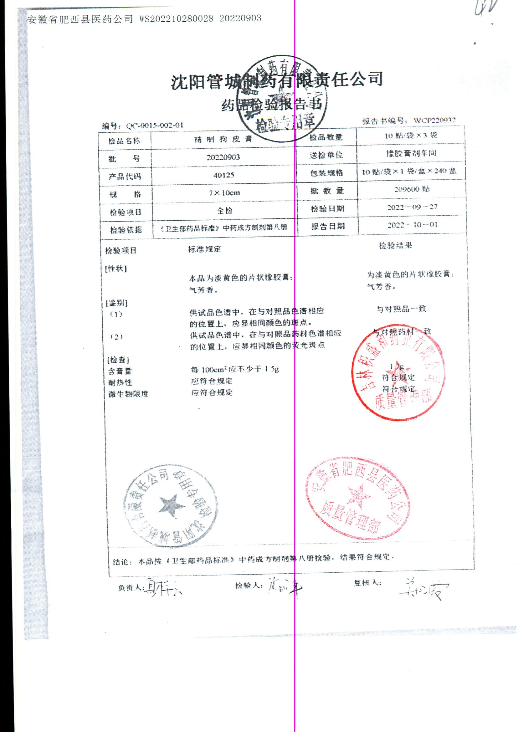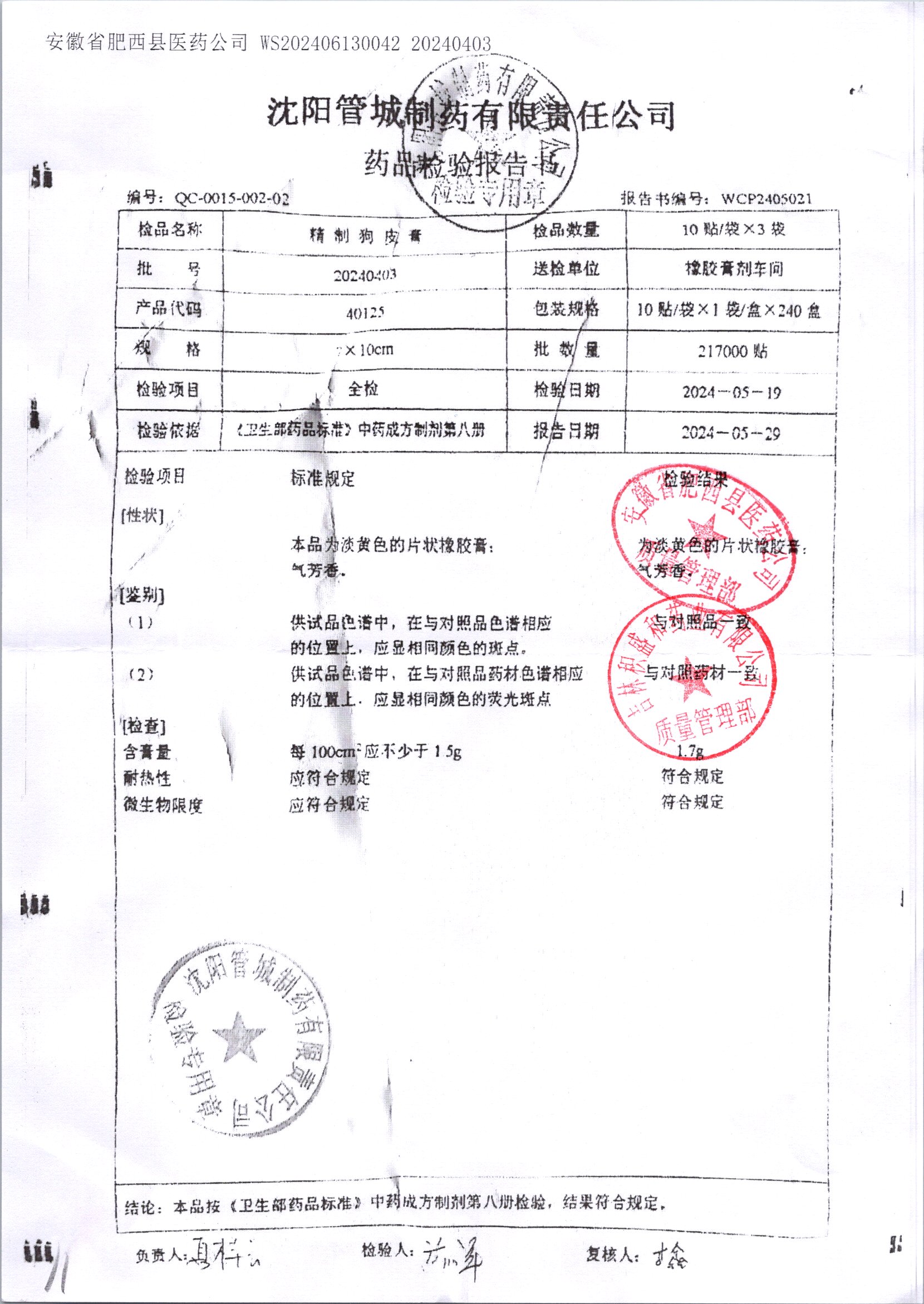 精制狗皮膏 | 7x10cm | 20240403 | 查看详情 |