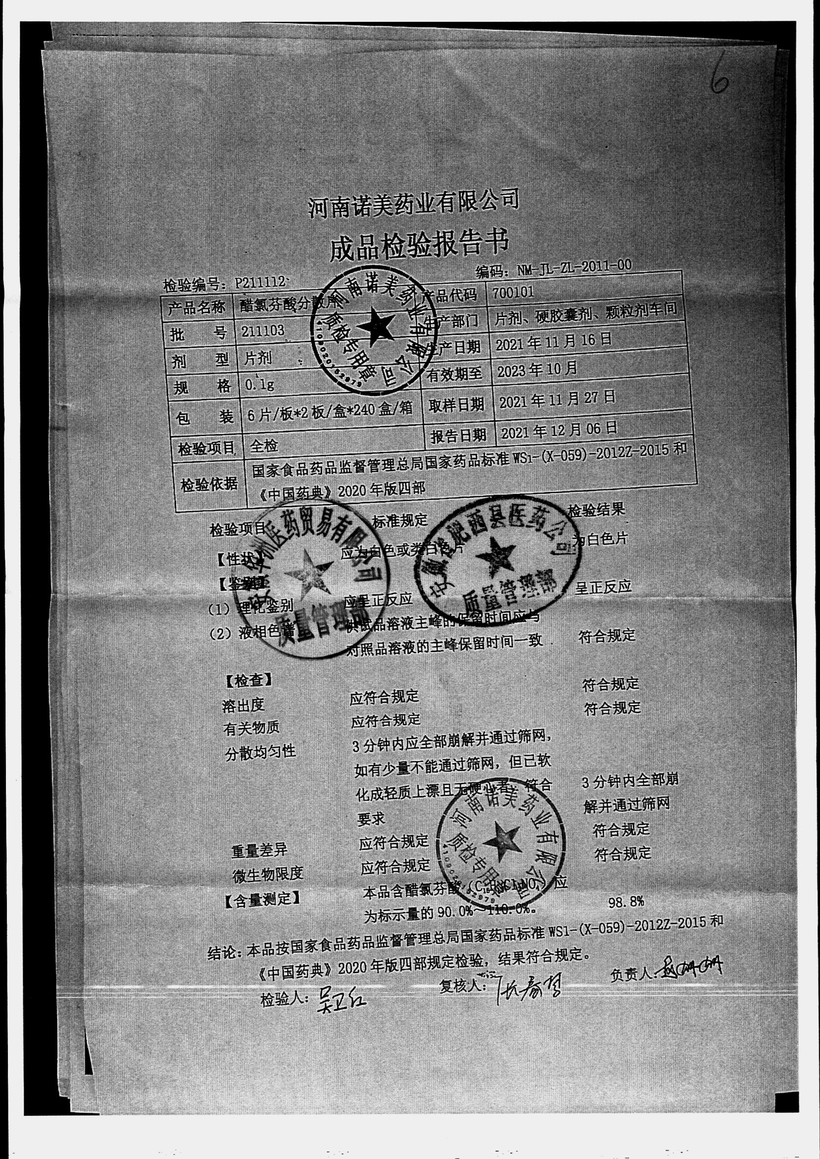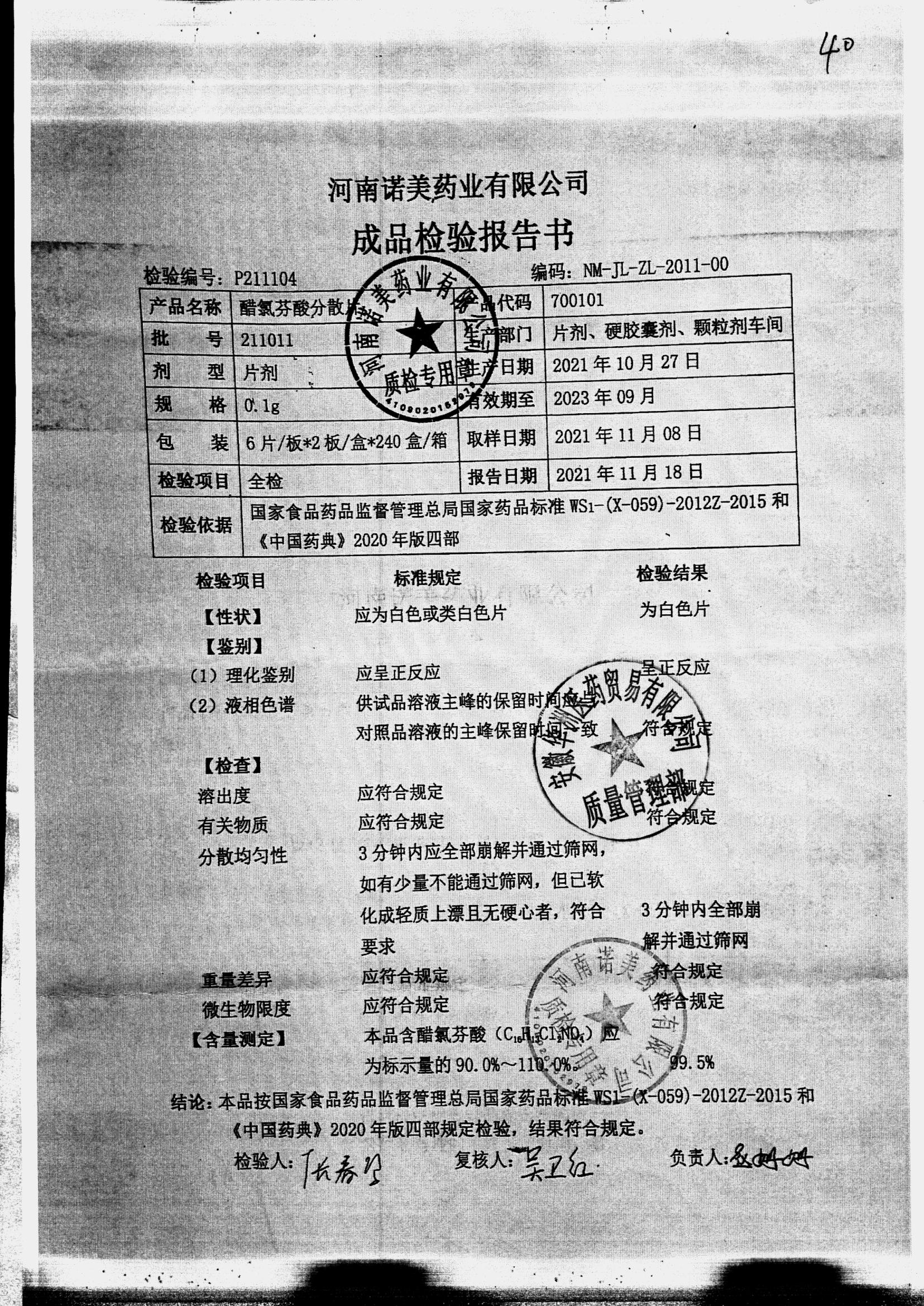 名称 | 规格 | 批号 | 药检报告 |
