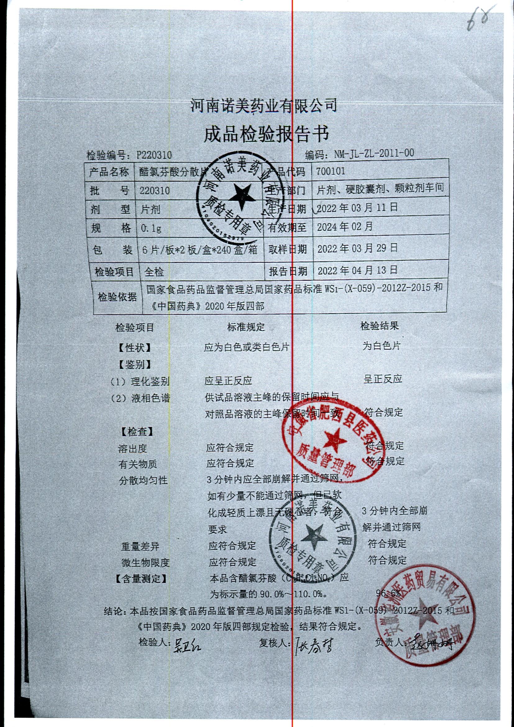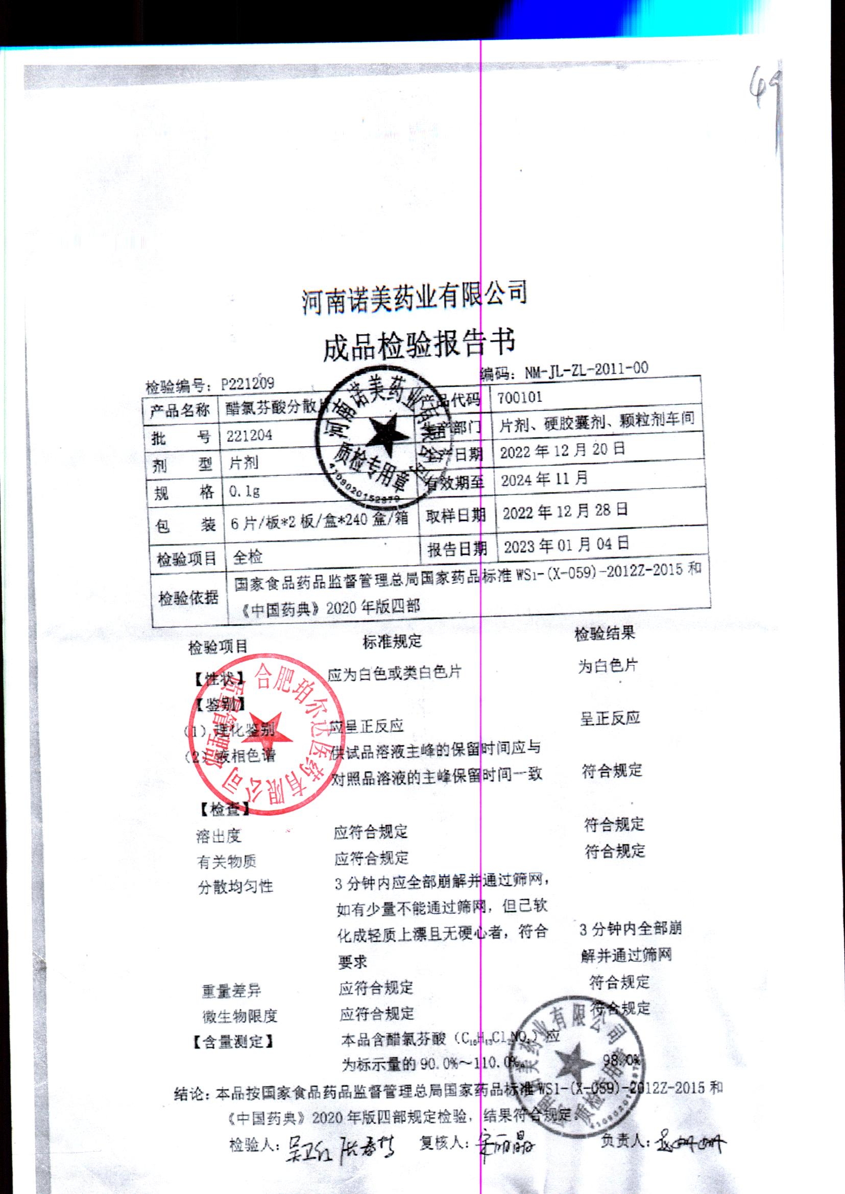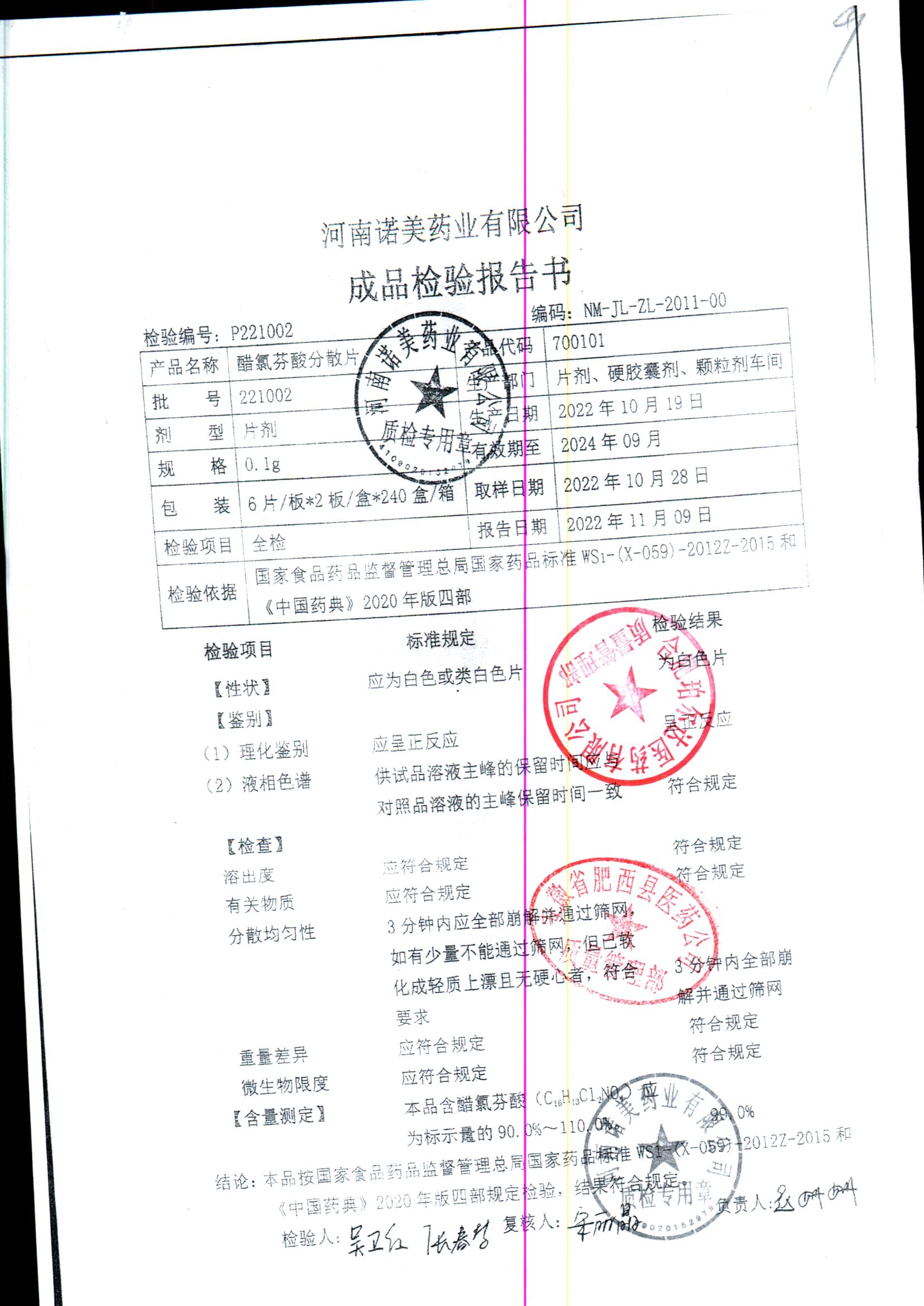 醋氯芬酸分散片 | 0.1gx12片 | 220413 | 查看详情 |