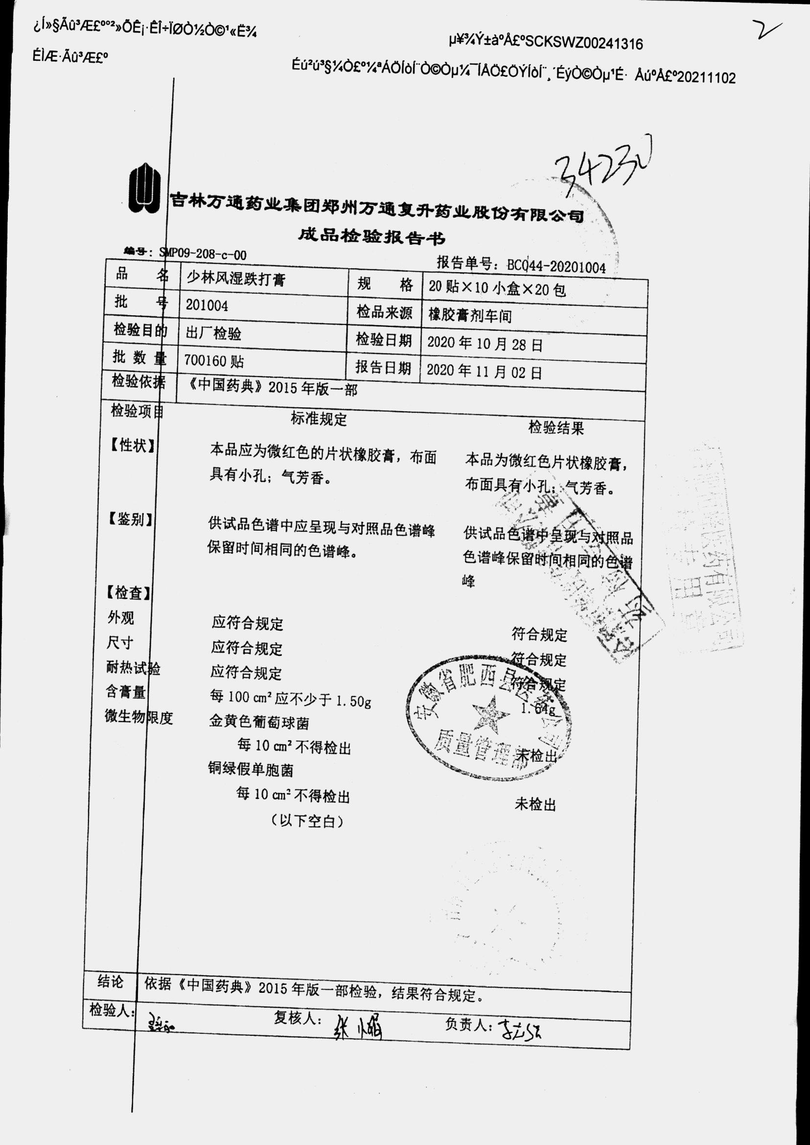 药检报告