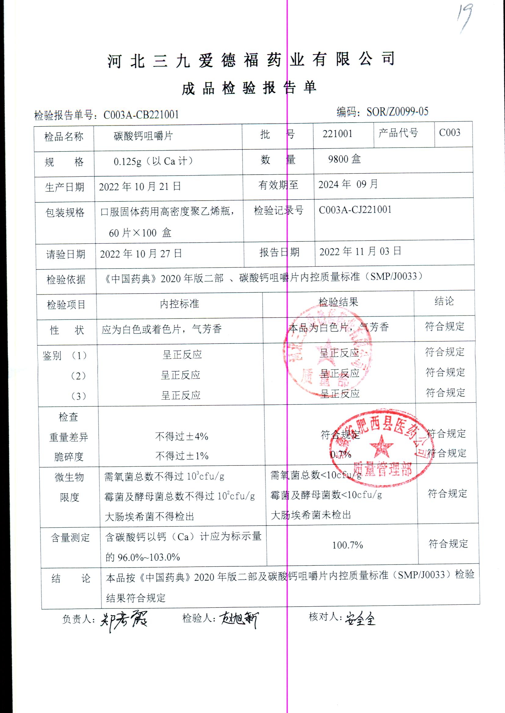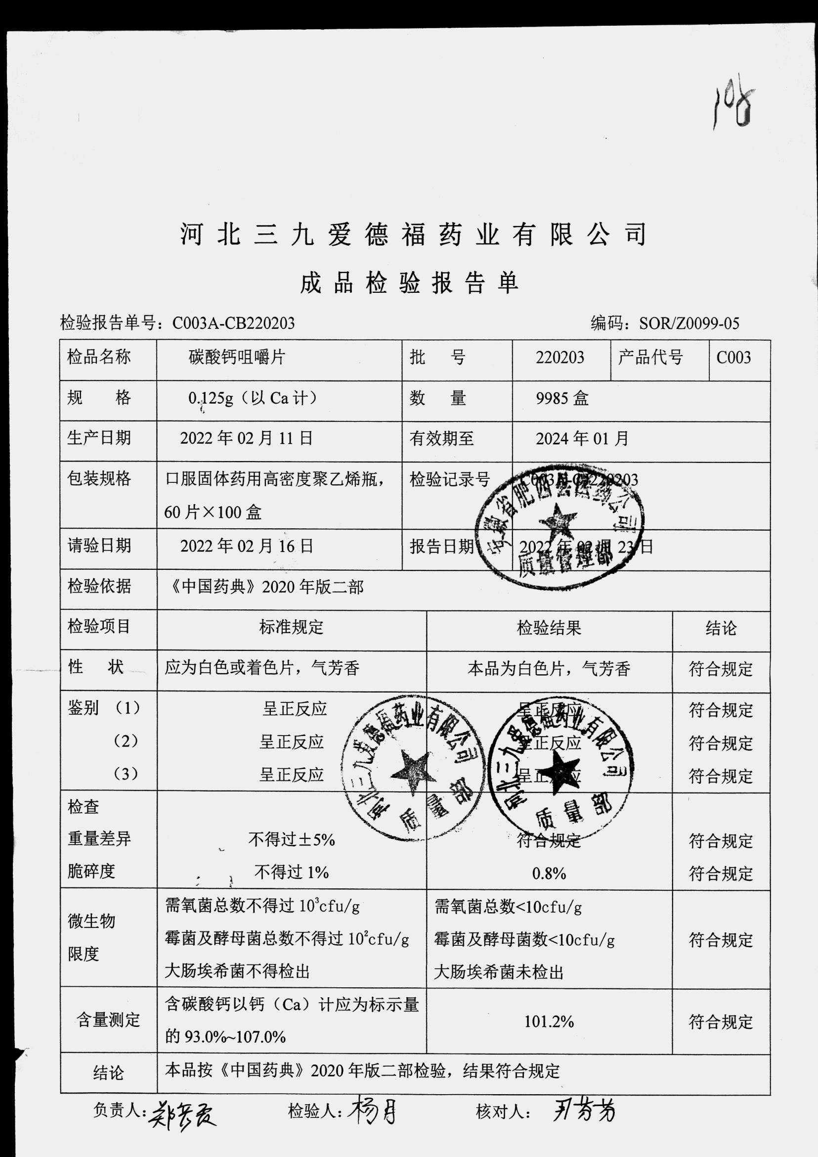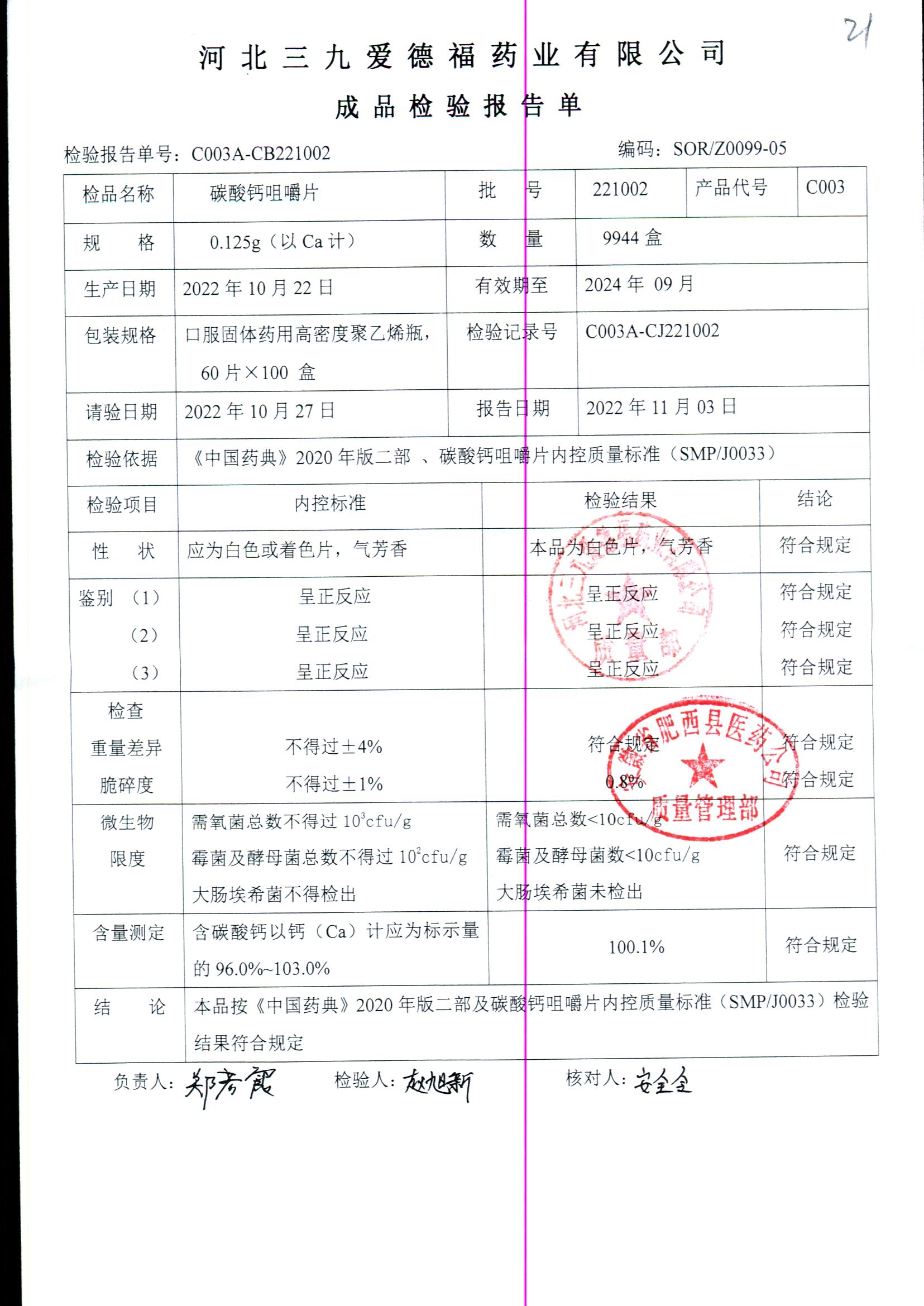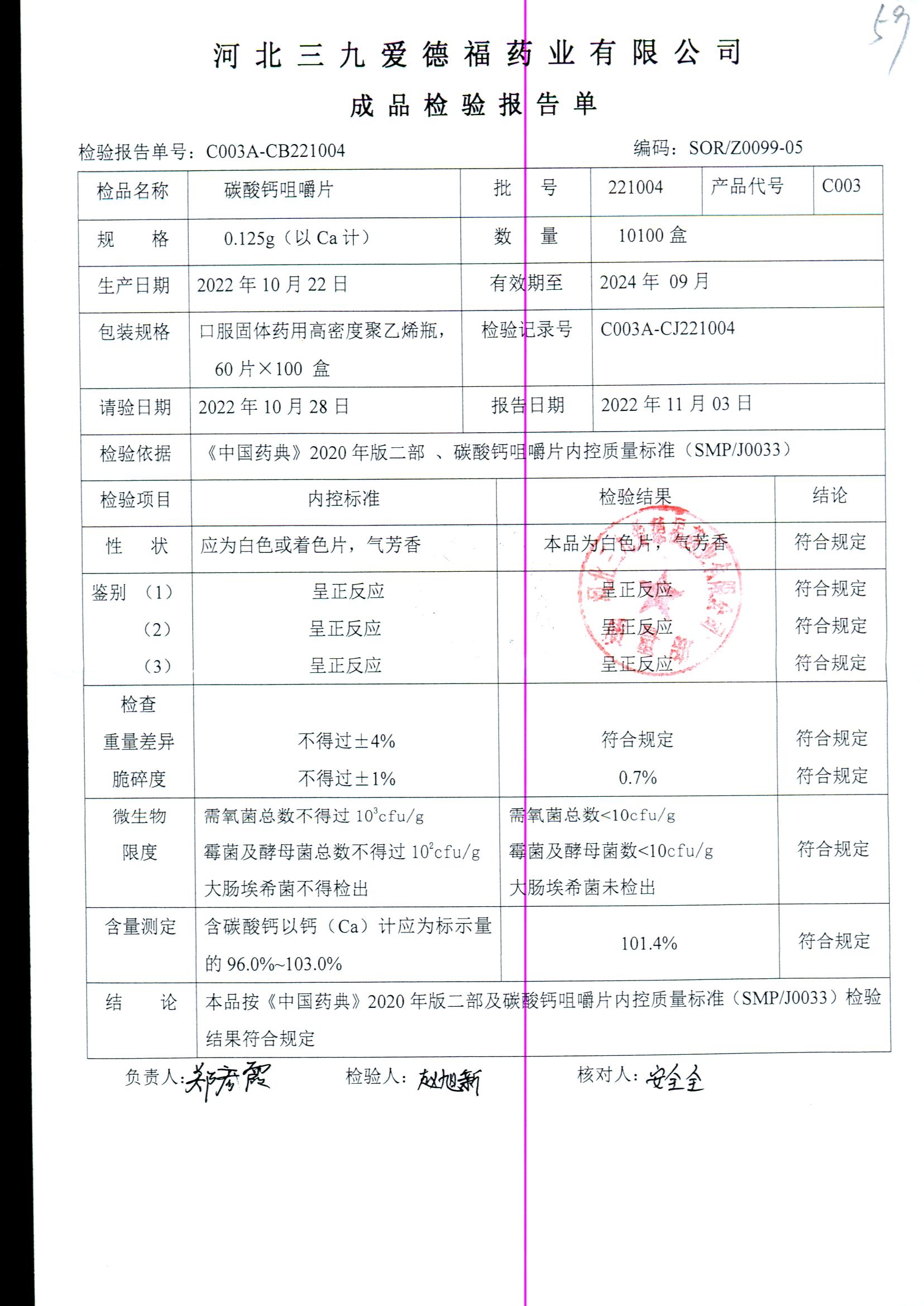 碳酸钙咀嚼片 | 0.125gx60片 | 220411 | 查看详情 |