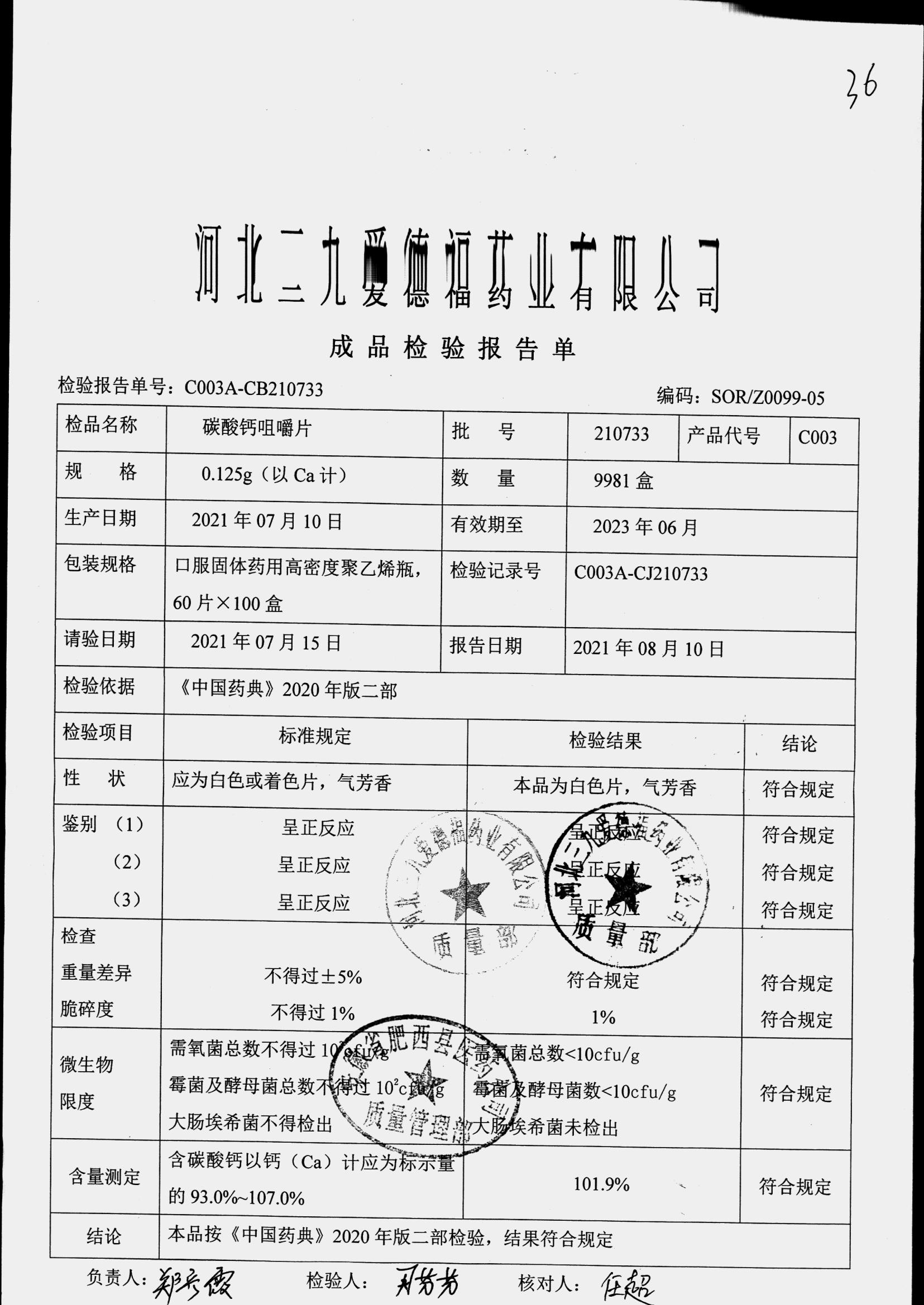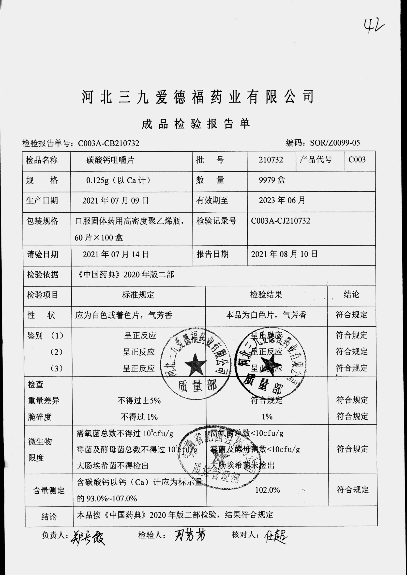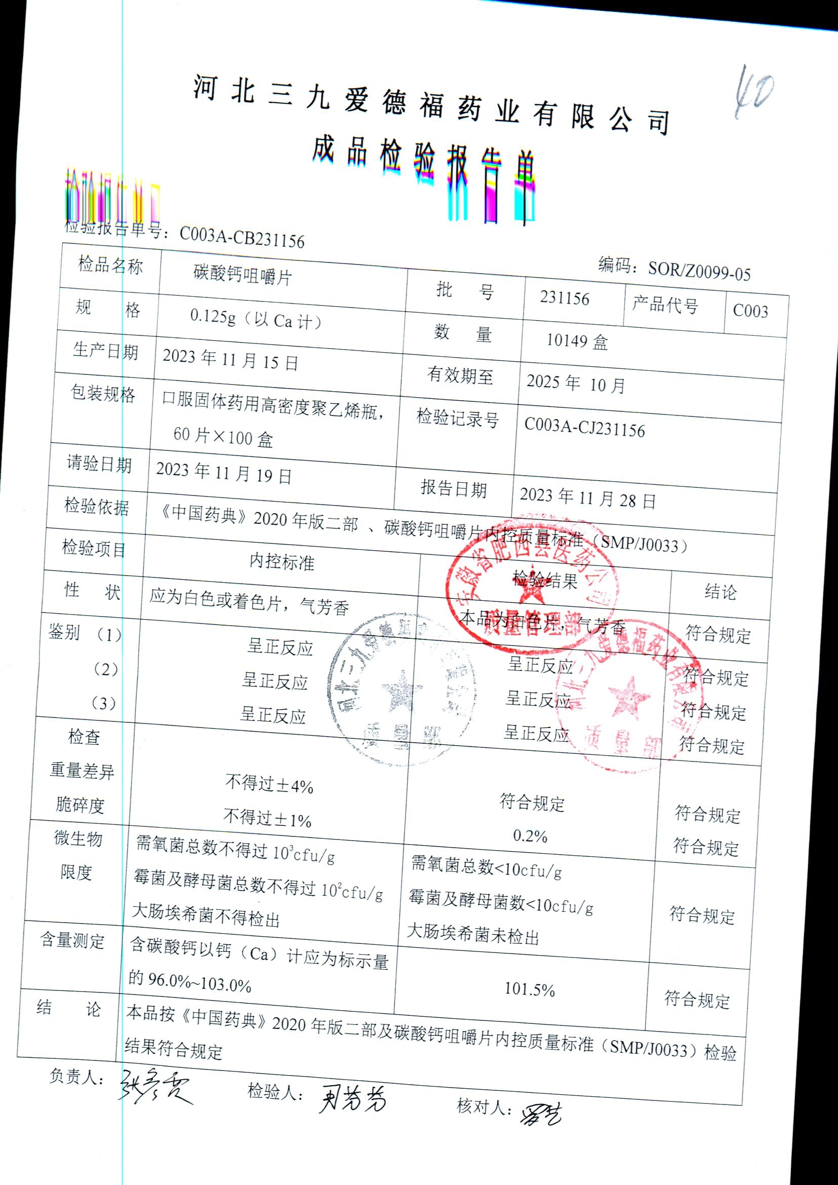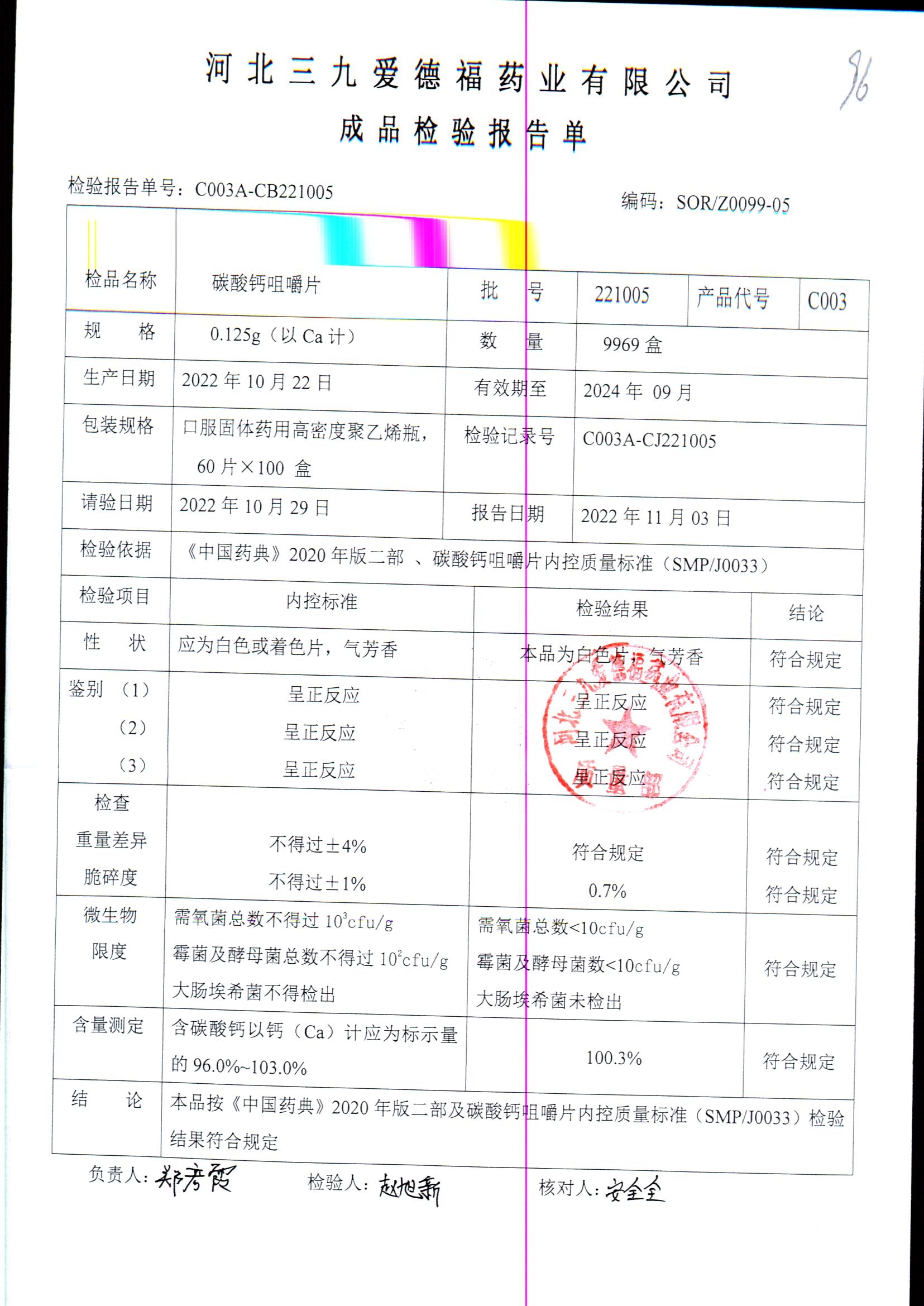 碳酸钙咀嚼片 | 0.125gx60片 | 220411 | 查看详情 |