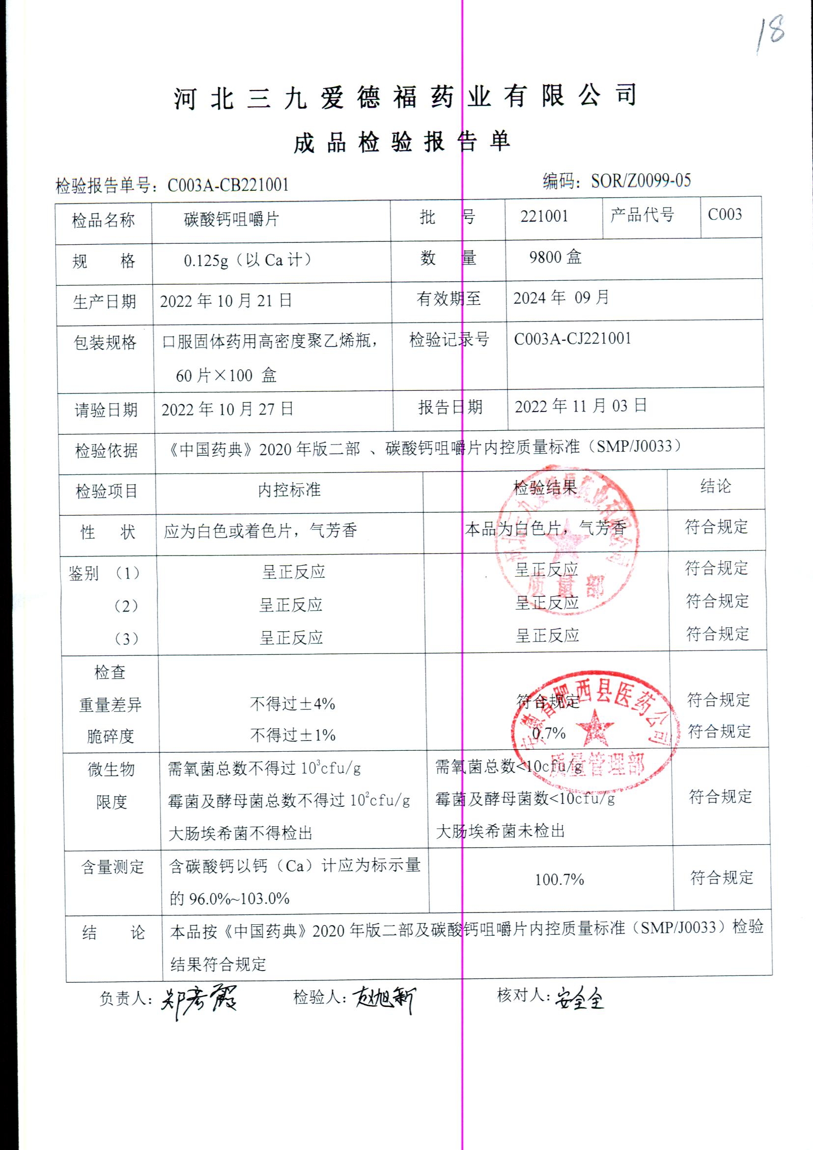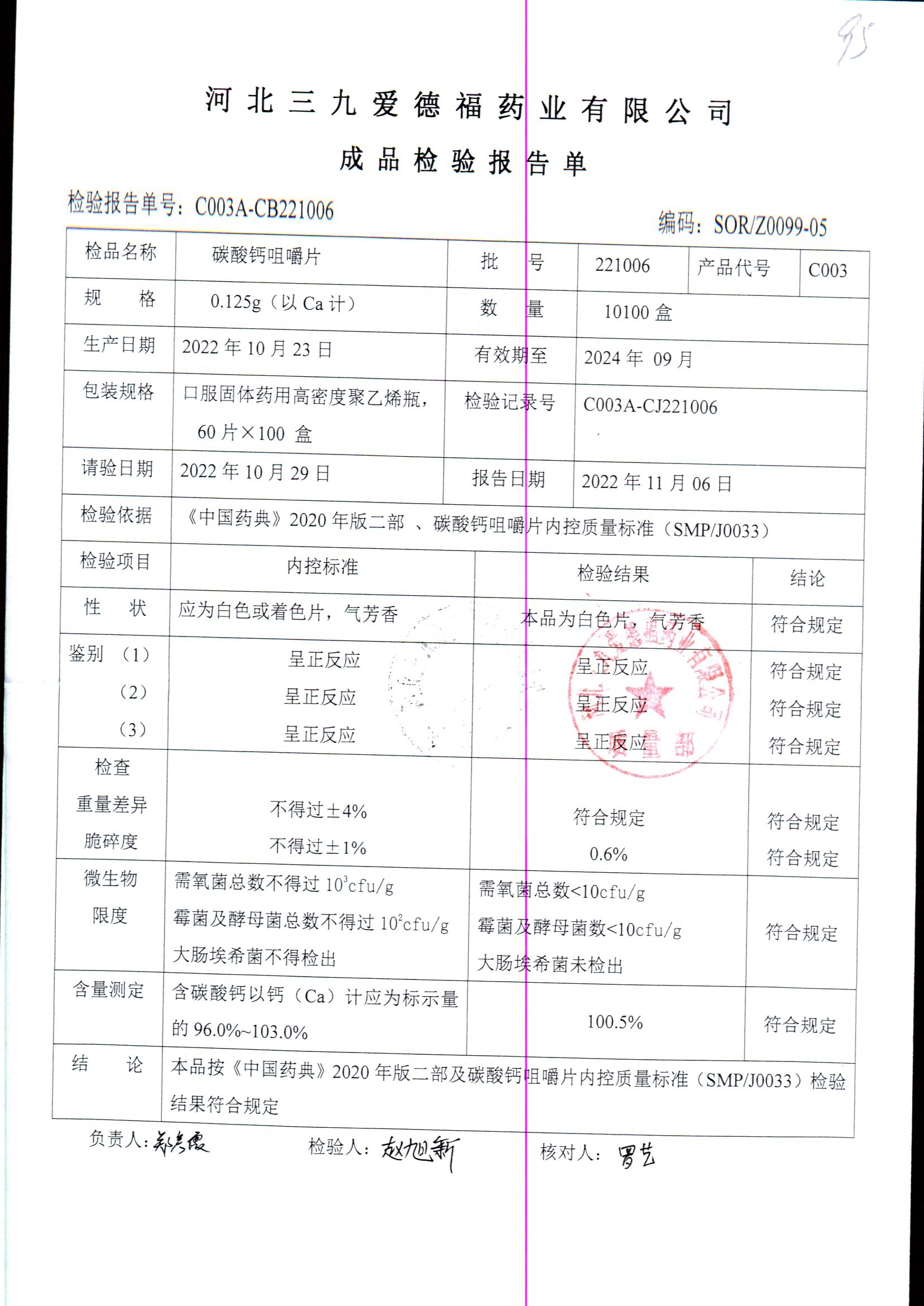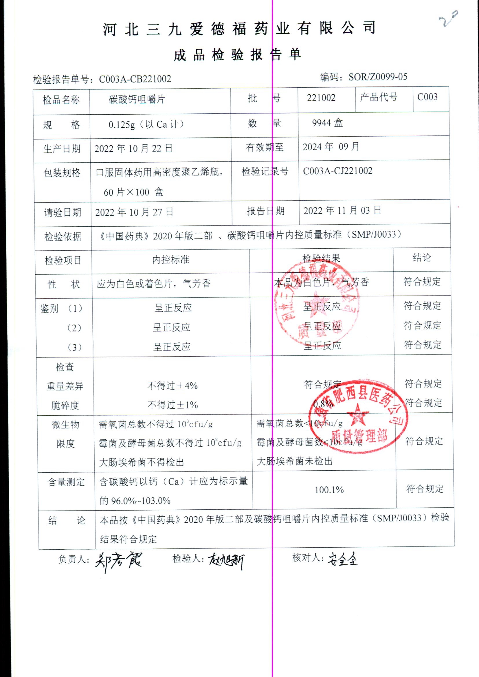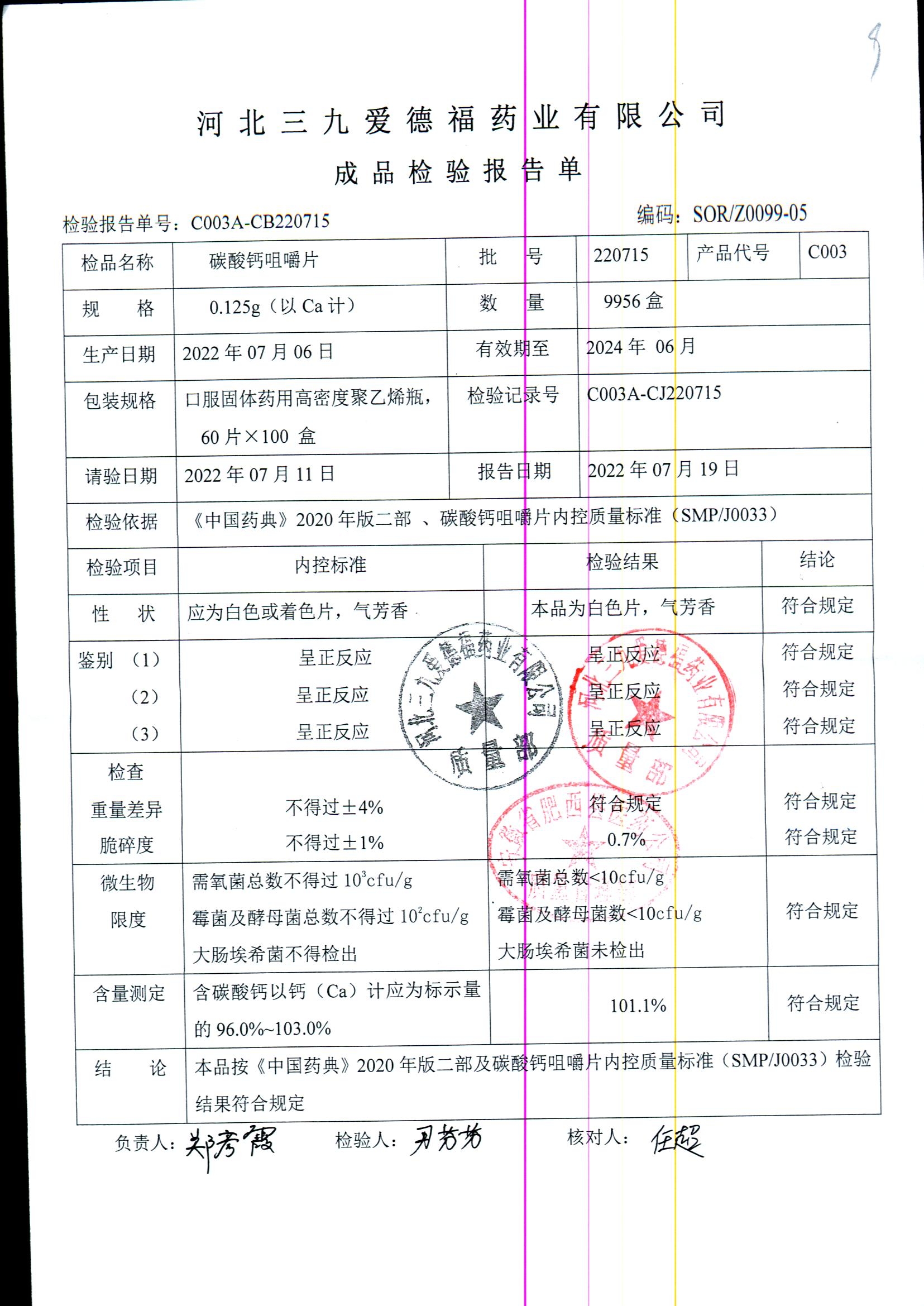 碳酸钙咀嚼片 | 0.125gx60片 | 220415 | 查看详情 |