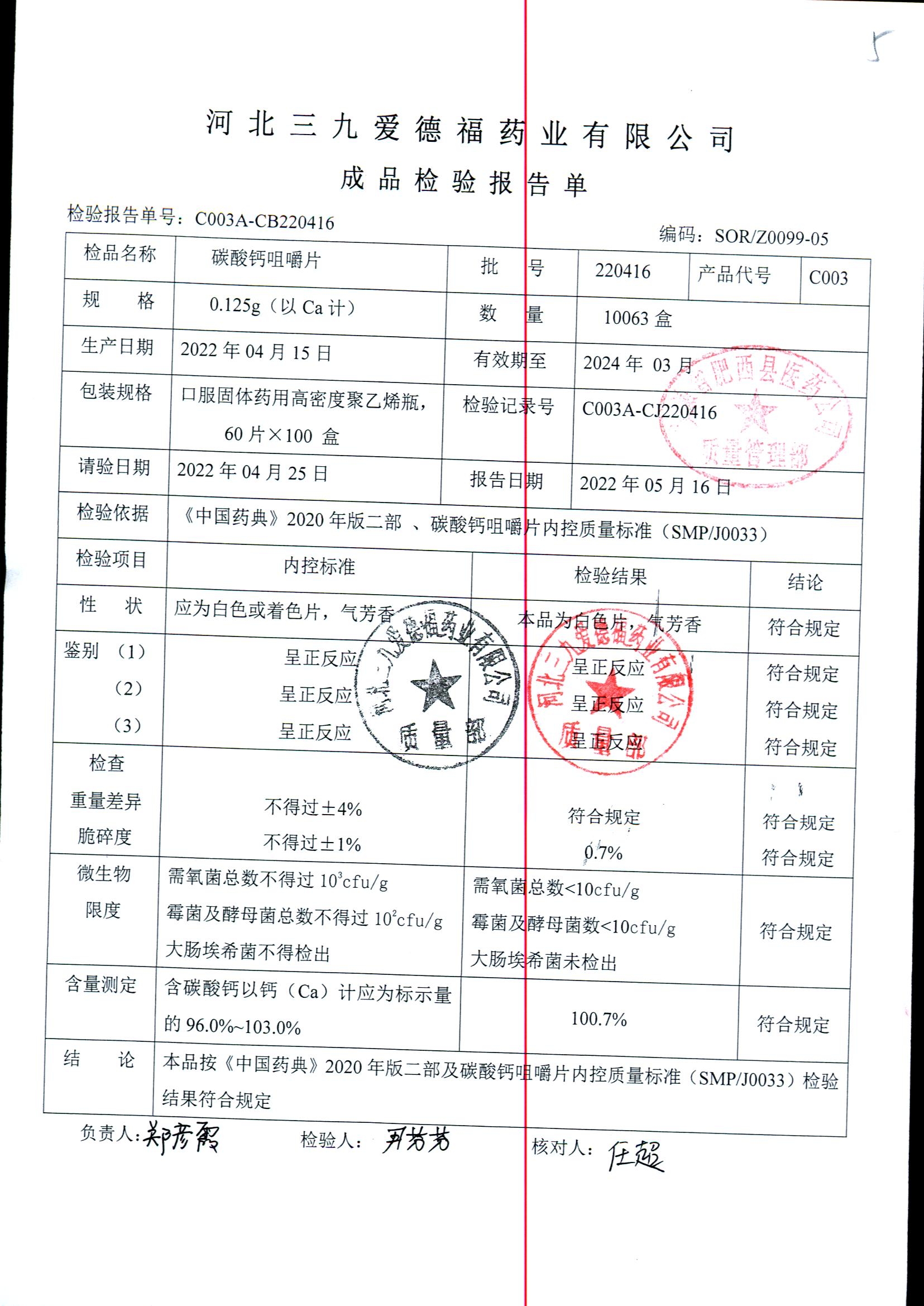 碳酸钙咀嚼片 | 0.125gx60片 | 220416 | 查看详情 |