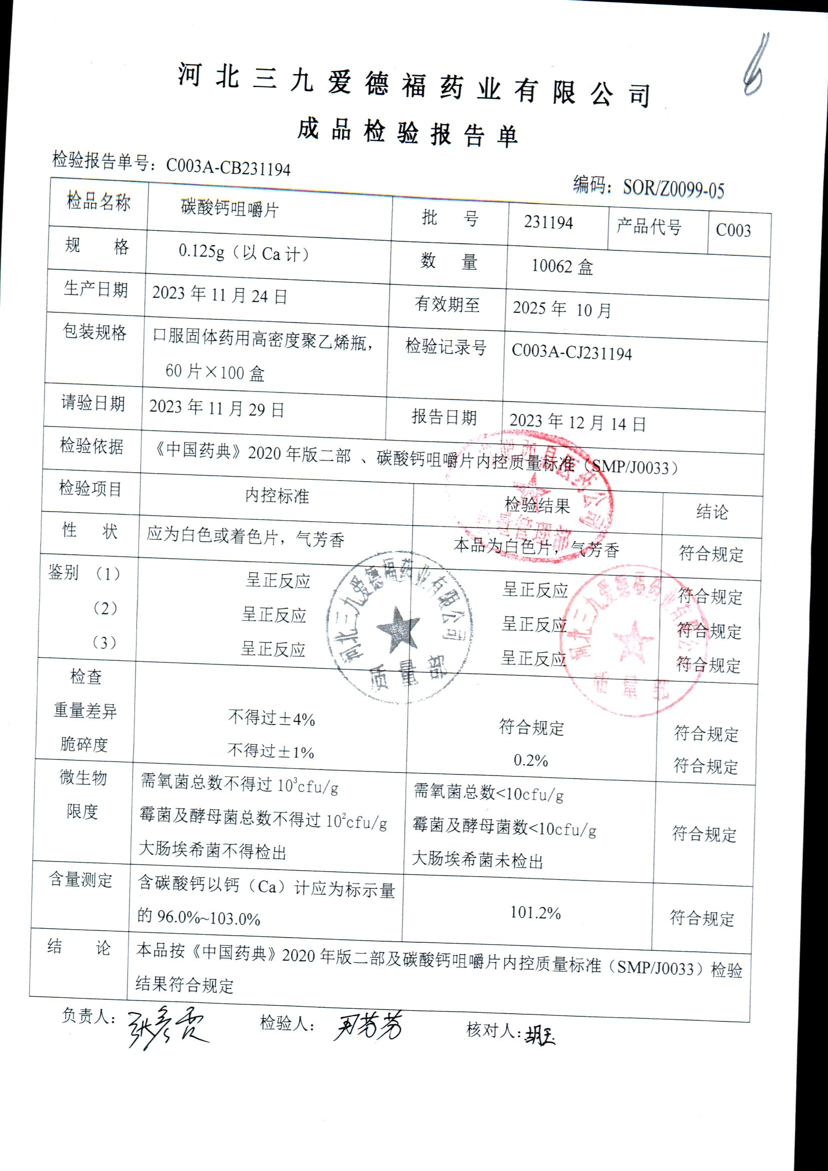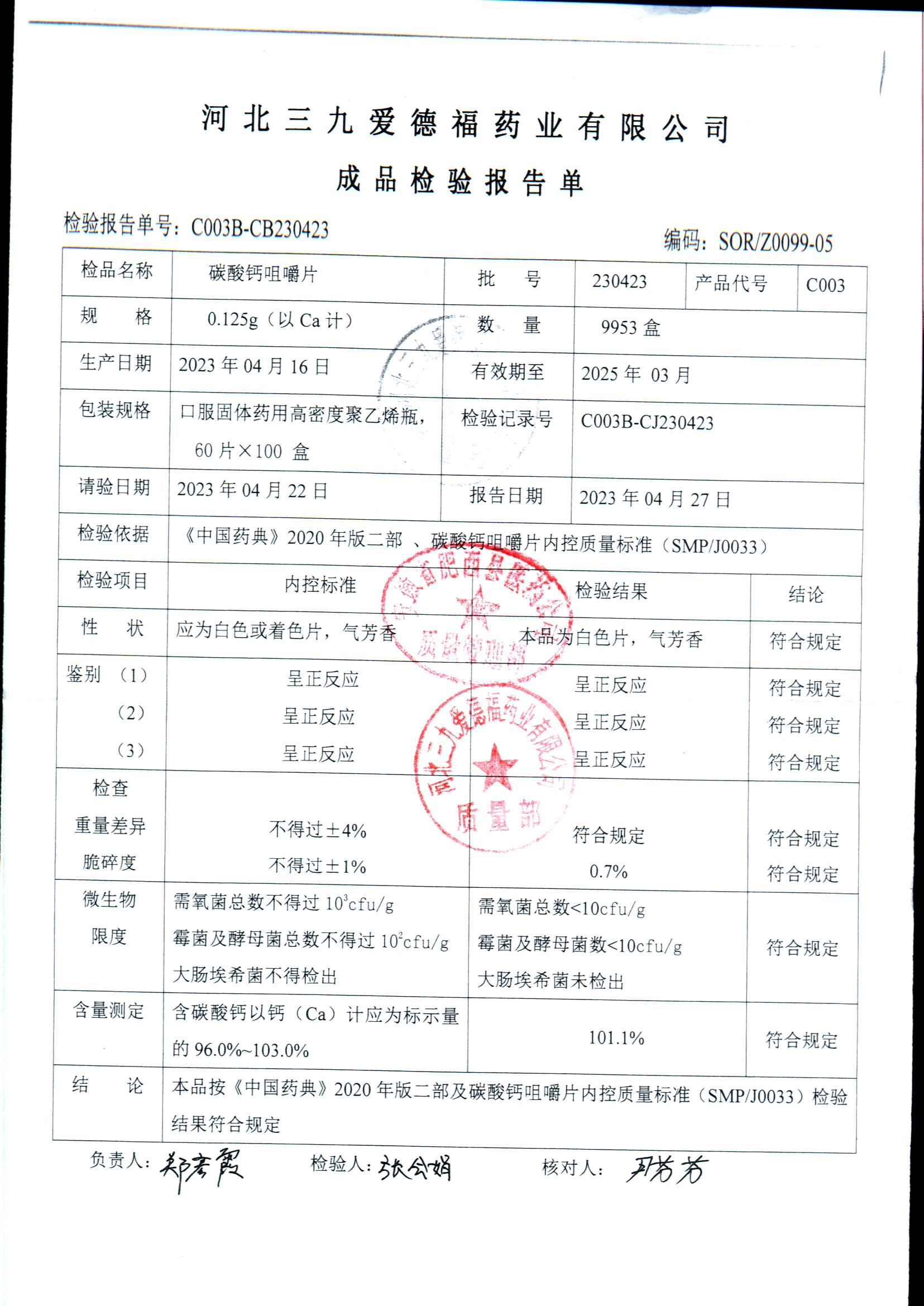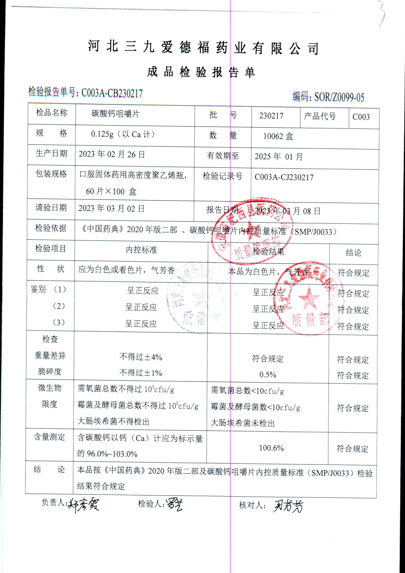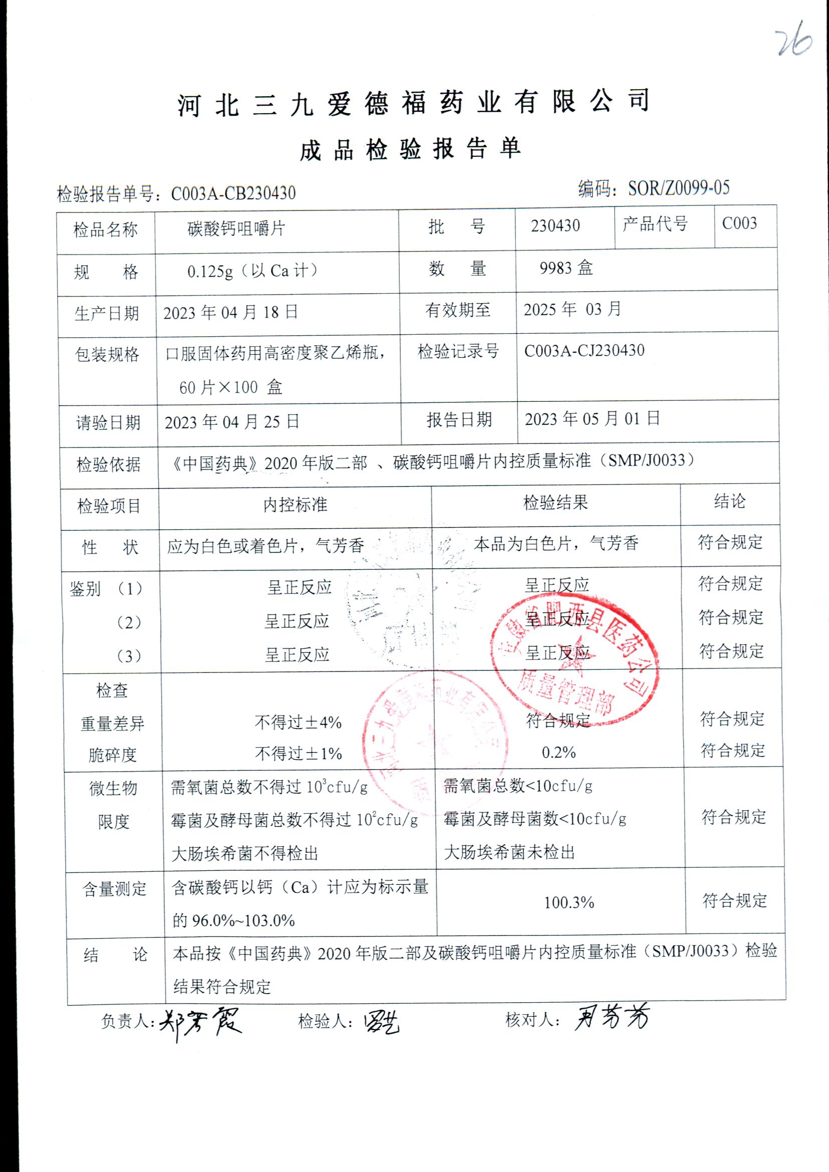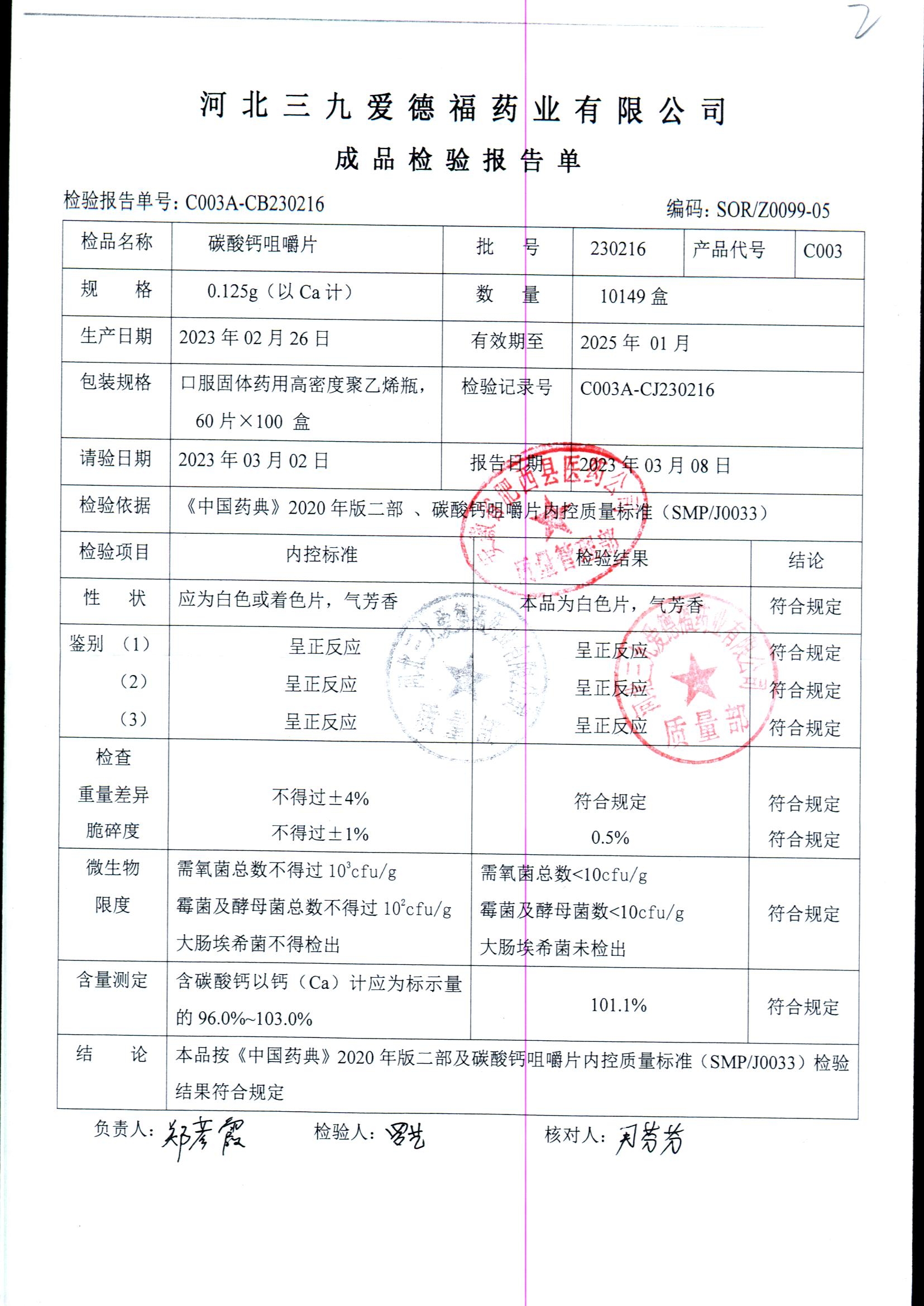 碳酸钙咀嚼片 | 0.125gx60片 | 230423 | 查看详情 |