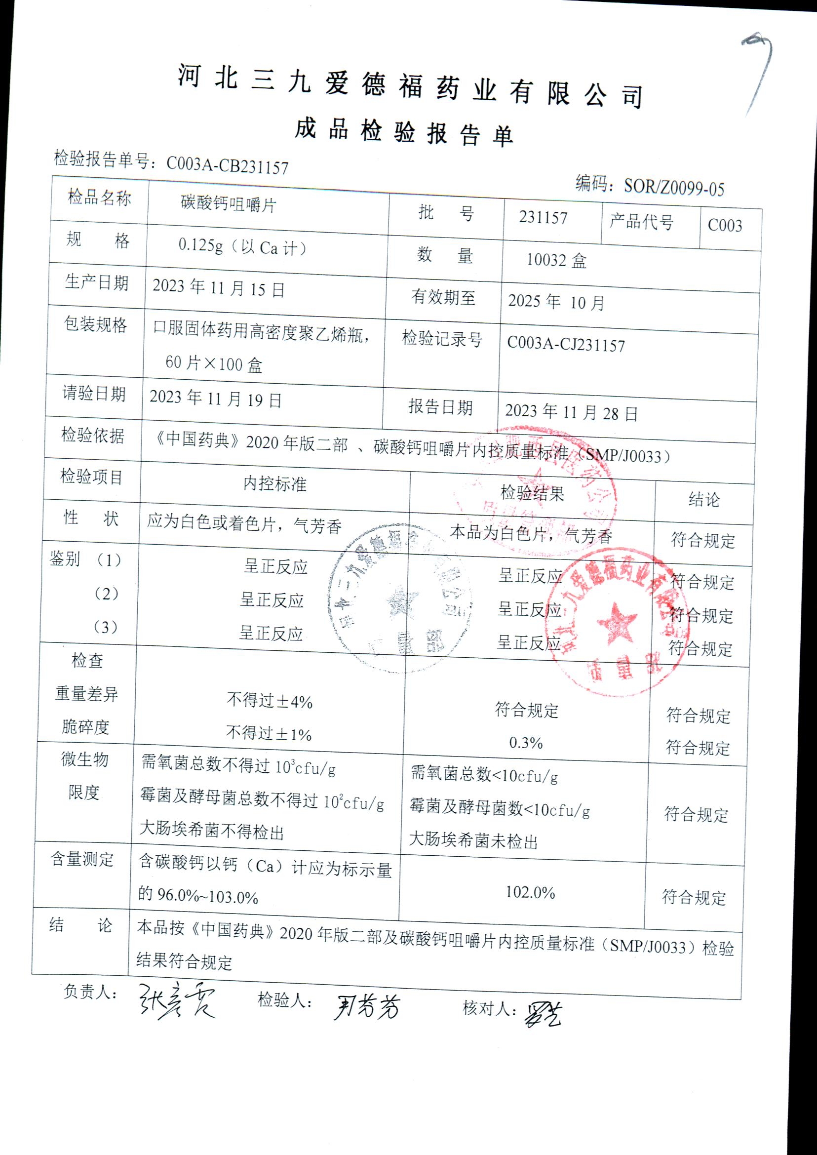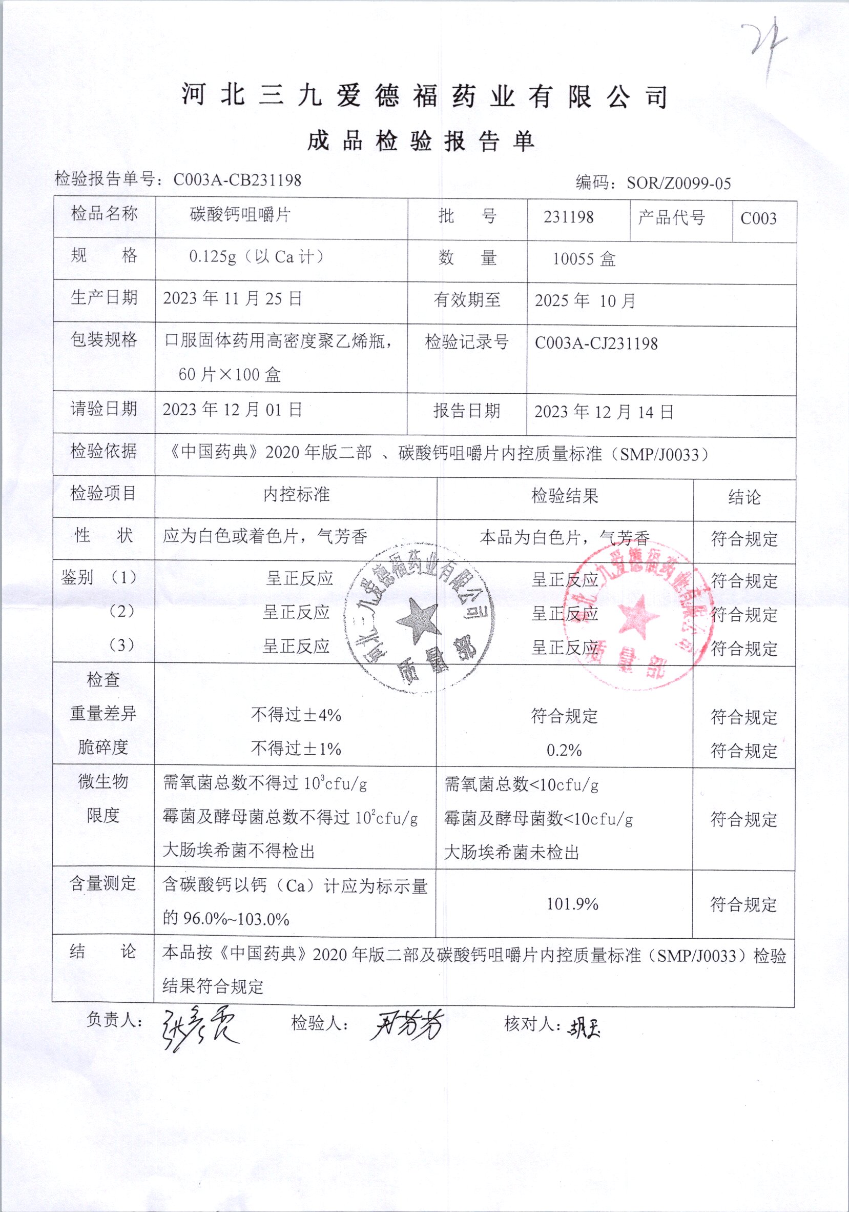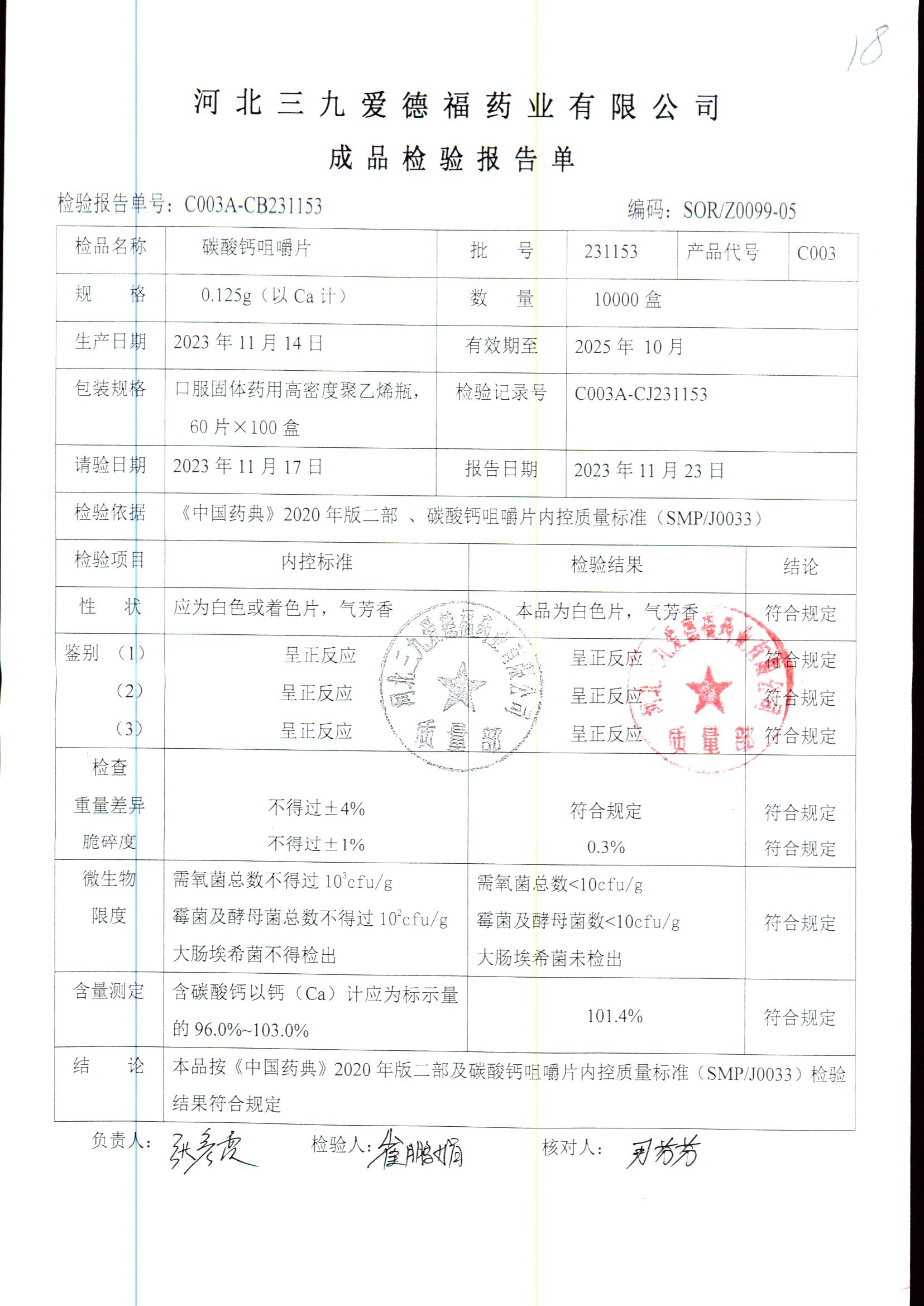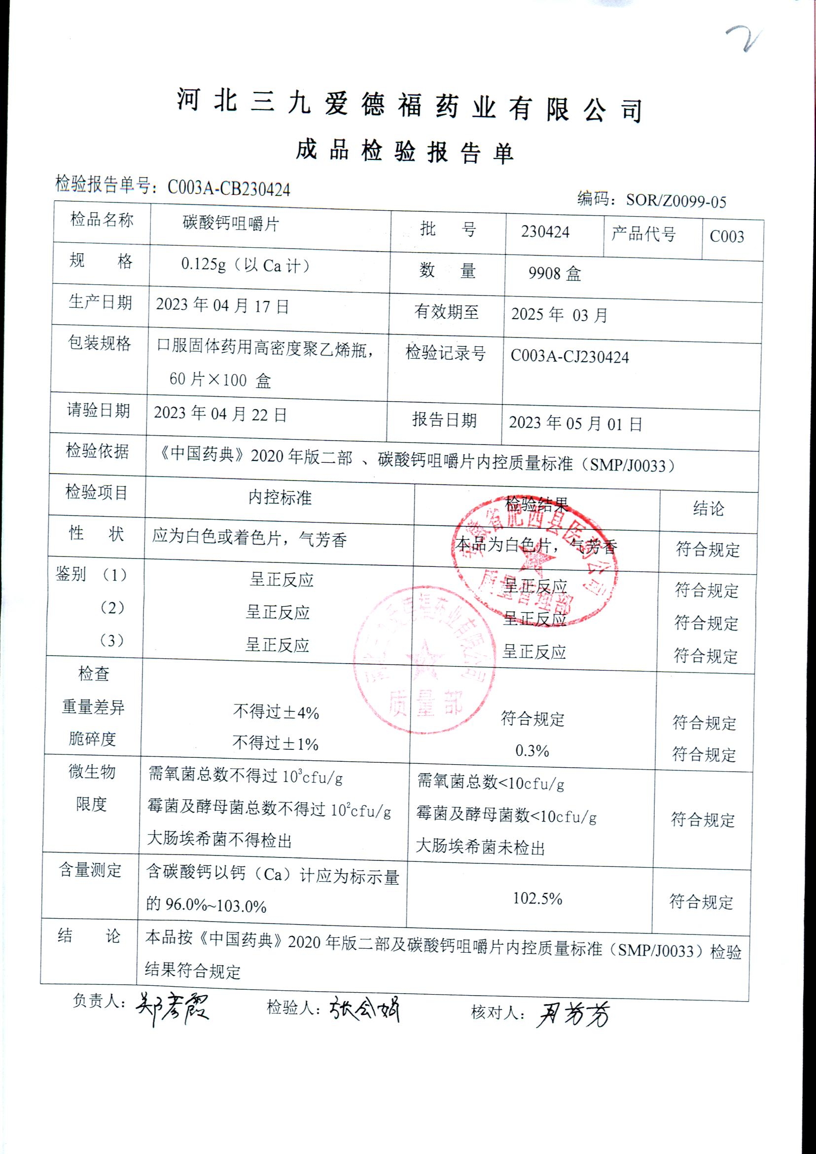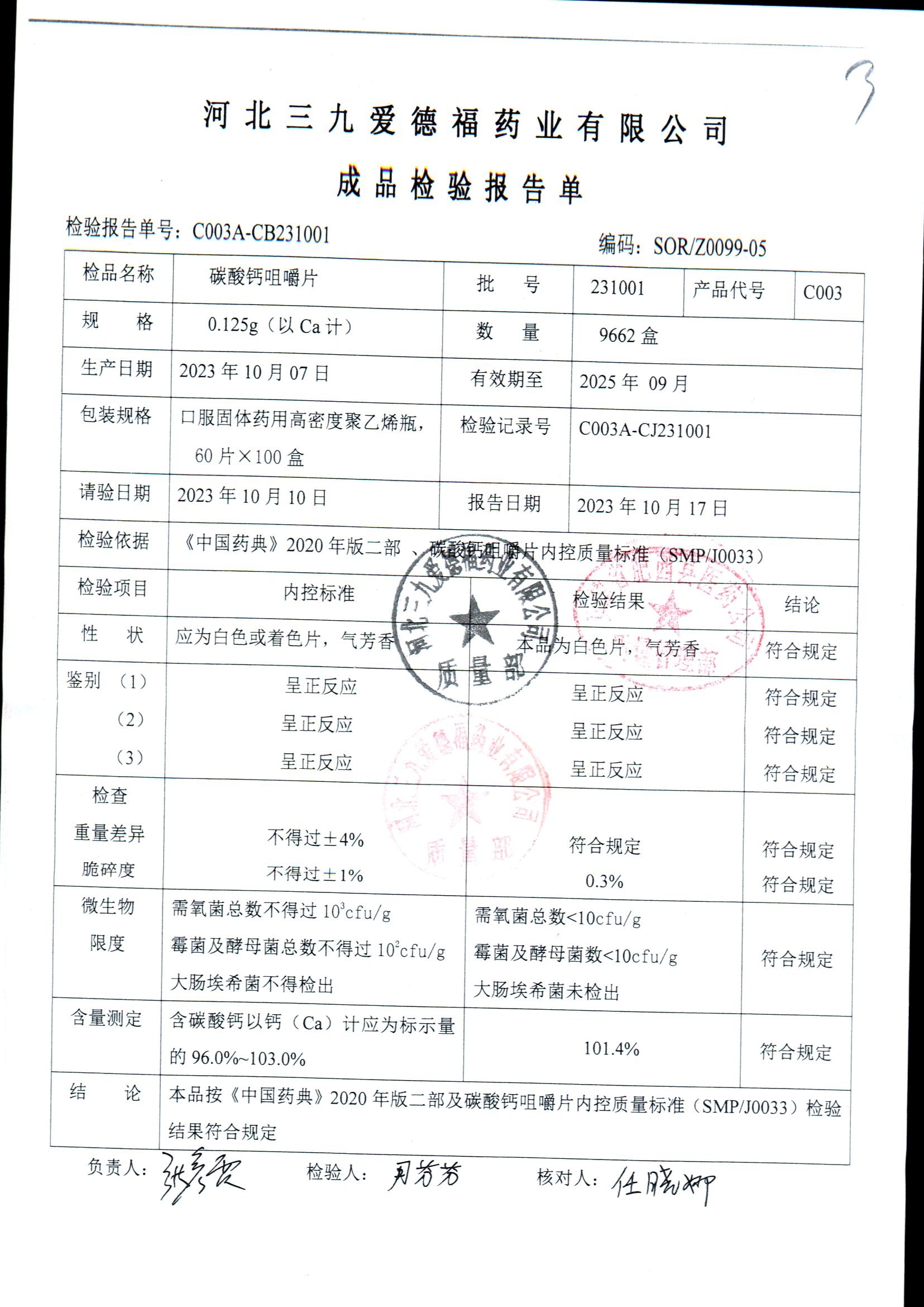碳酸钙咀嚼片 | 0.125gx60片 | 230423 | 查看详情 |