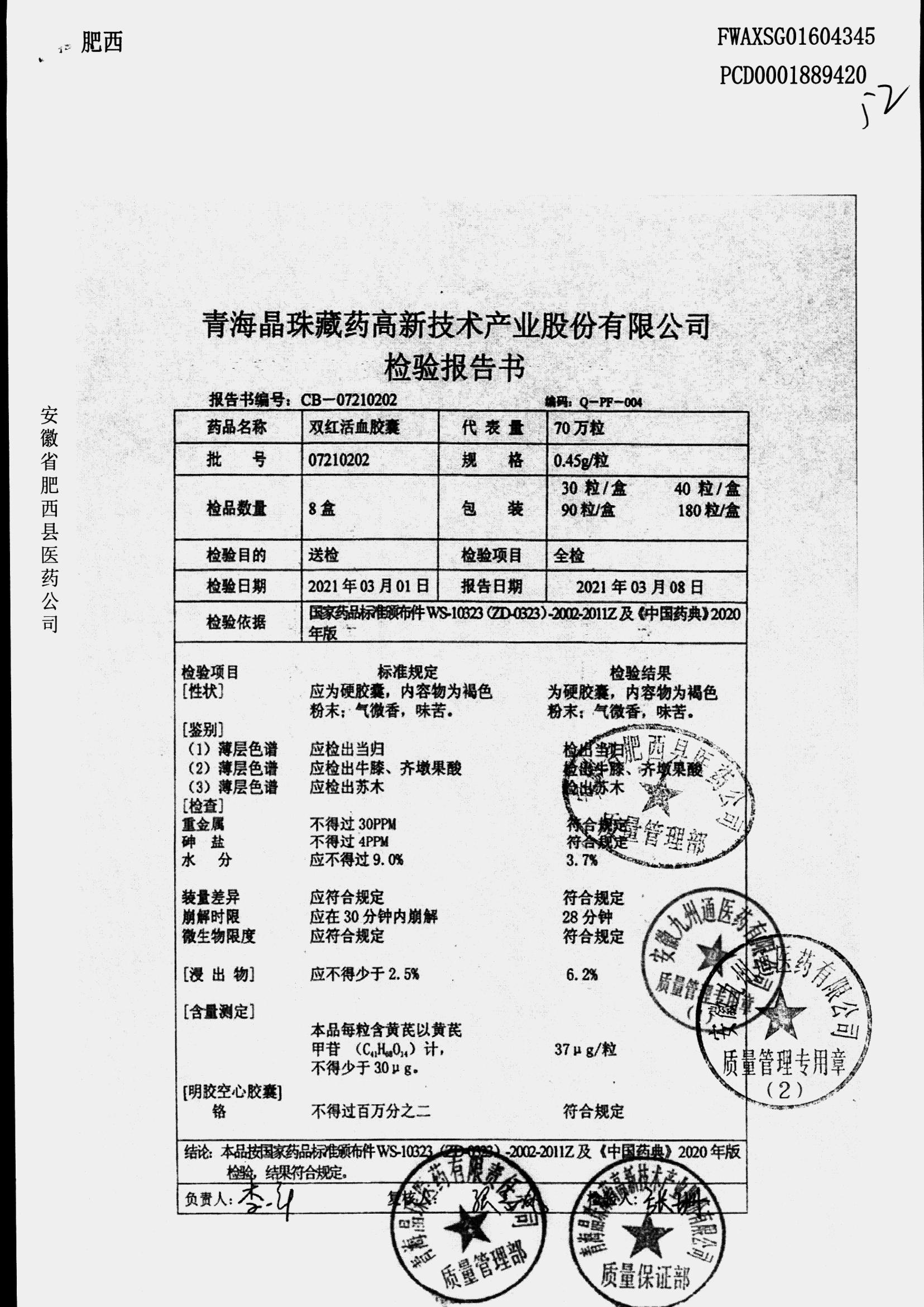 双红活血胶囊 | 0.45g/粒 | 07210202 | 查看详情 |