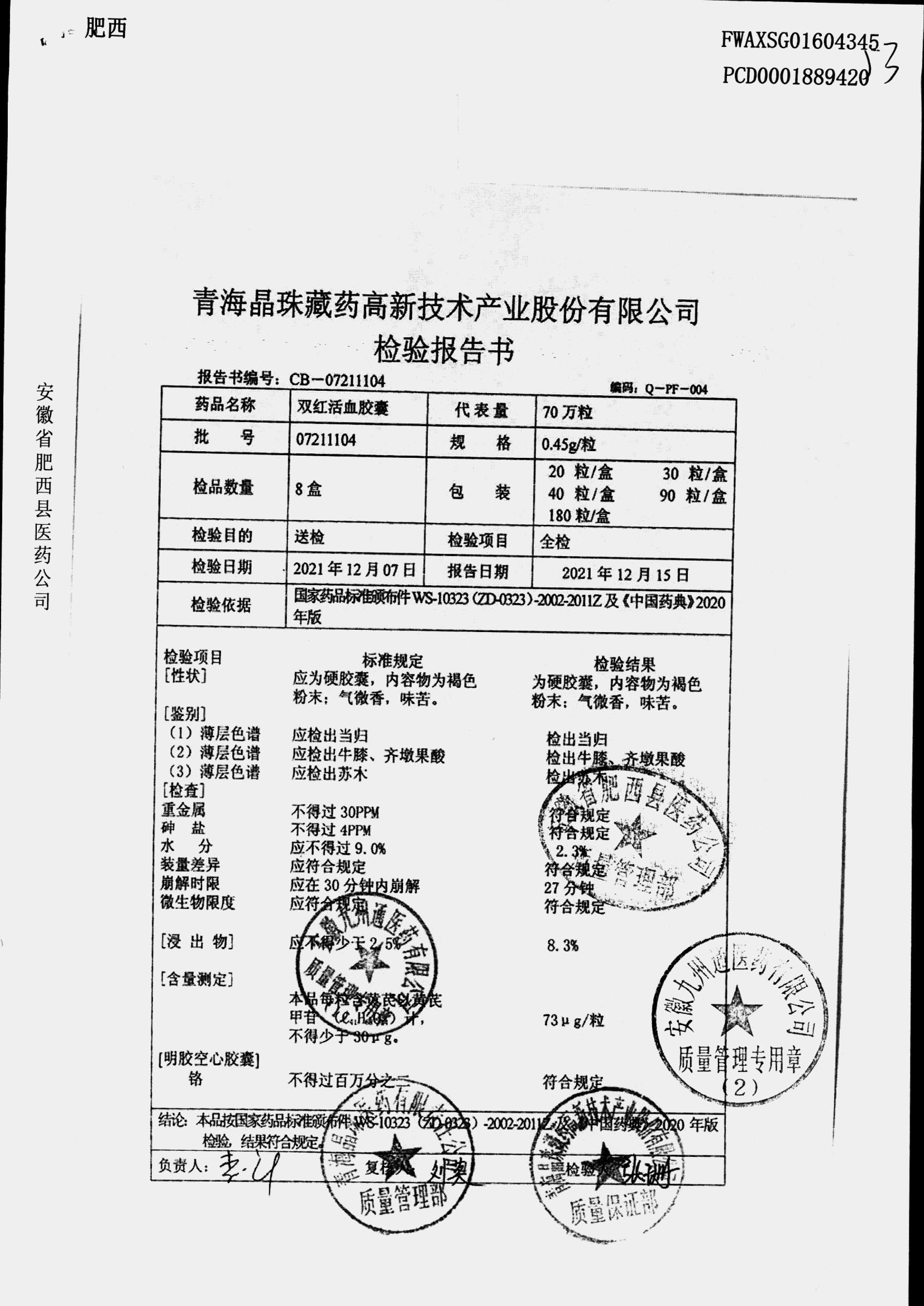 双红活血胶囊 | 0.45g/粒 | 07211201 | 查看详情 |