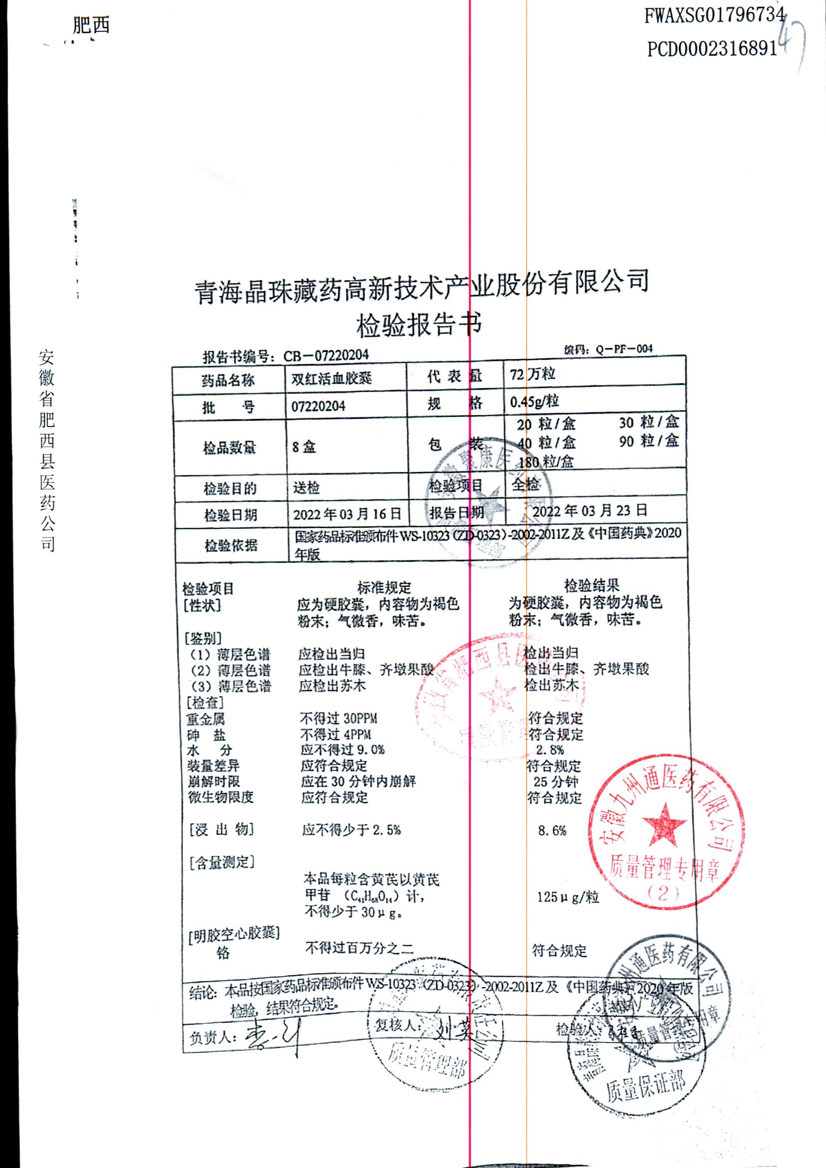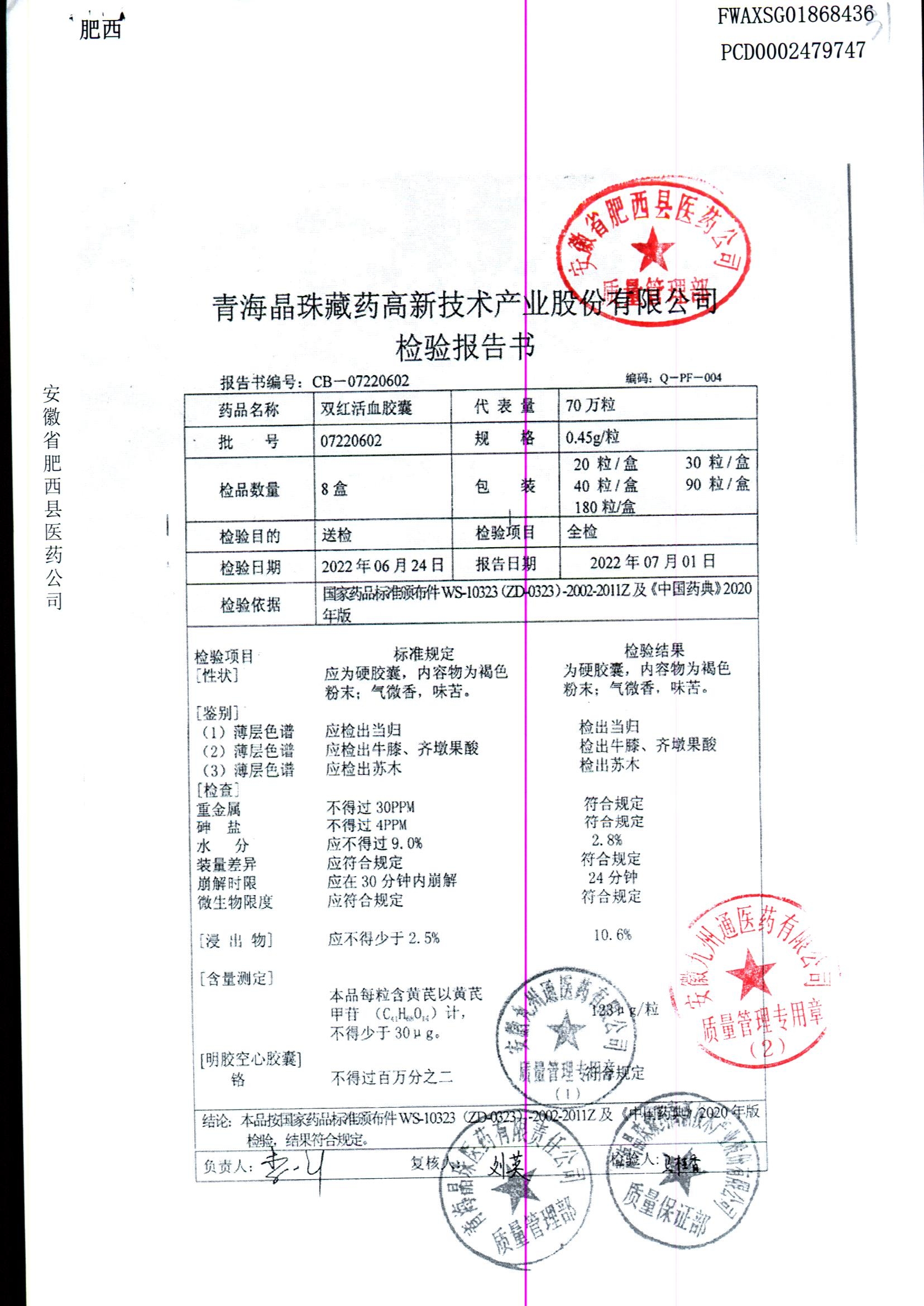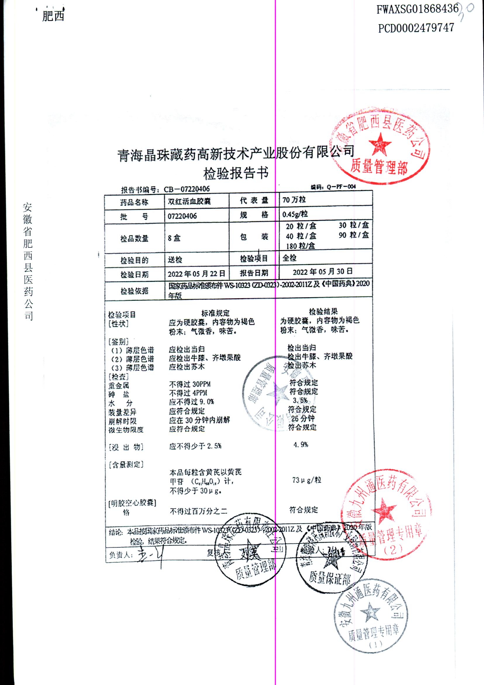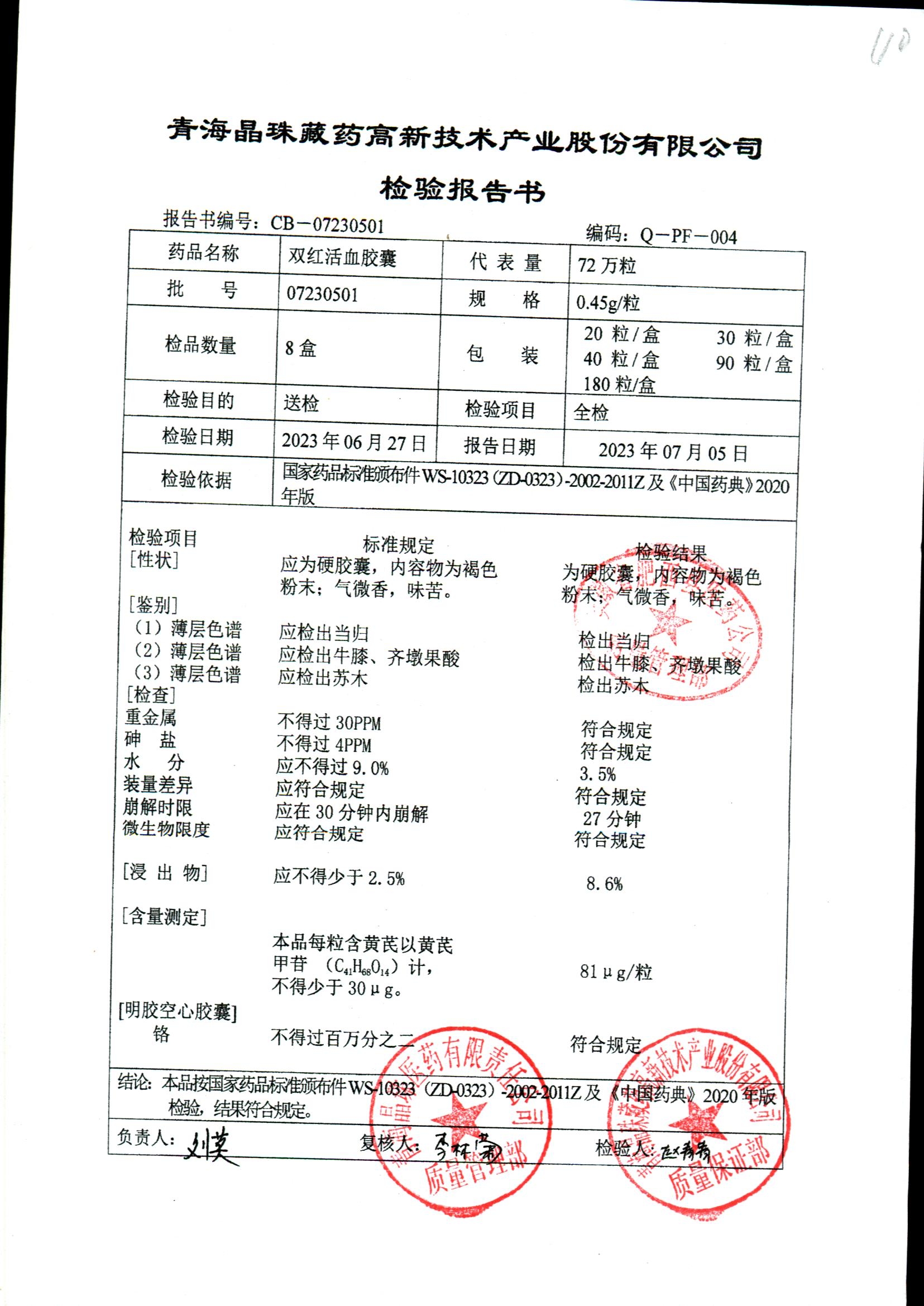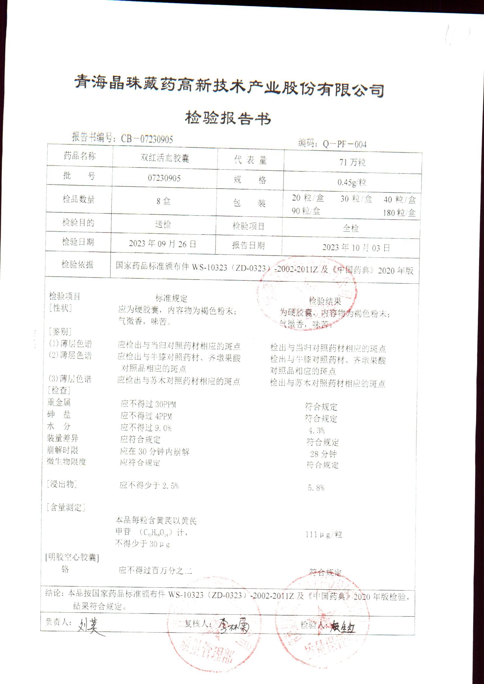 双红活血胶囊 | 0.45g/粒 | 07230501 | 查看详情 |