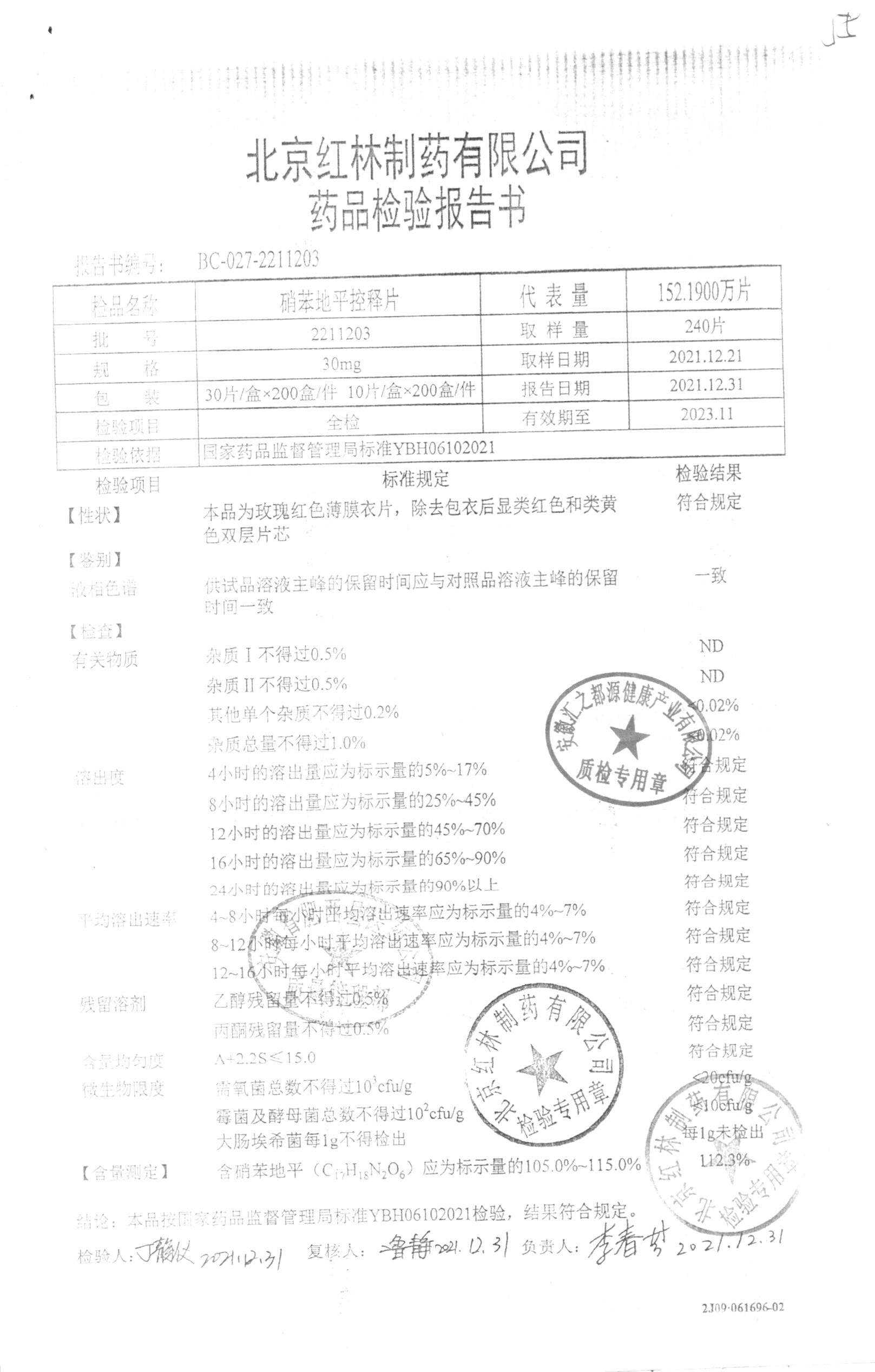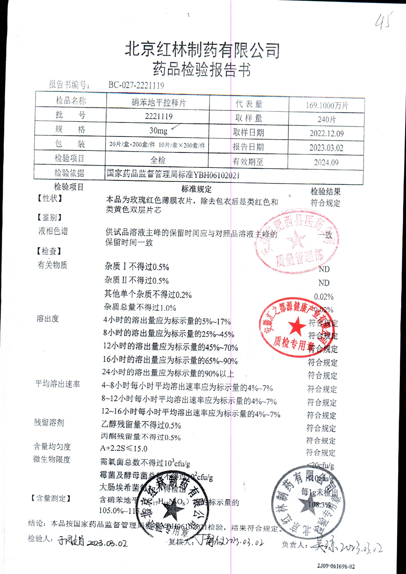 硝苯地平控释片 | 30 | 2211203 | 查看详情 |