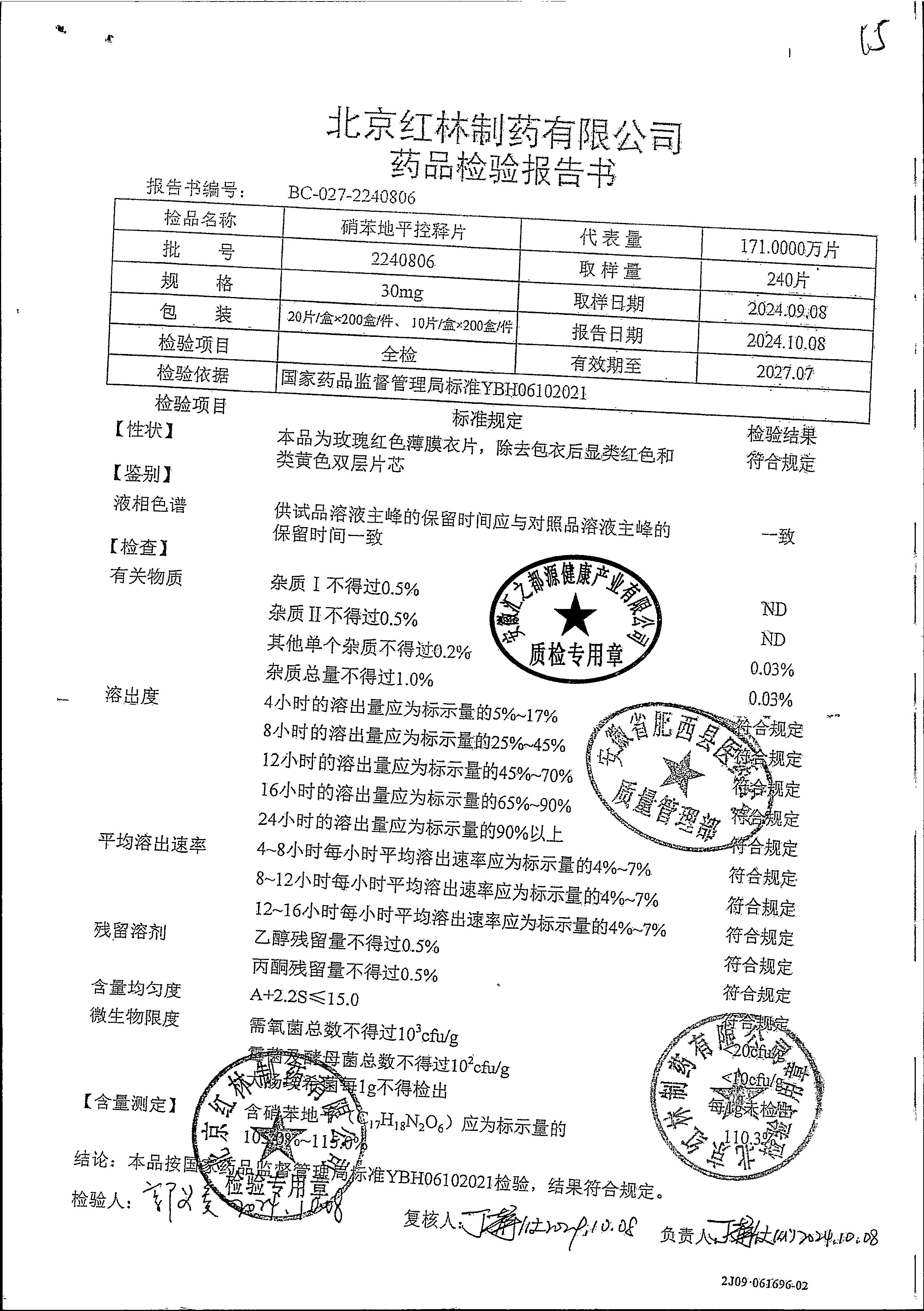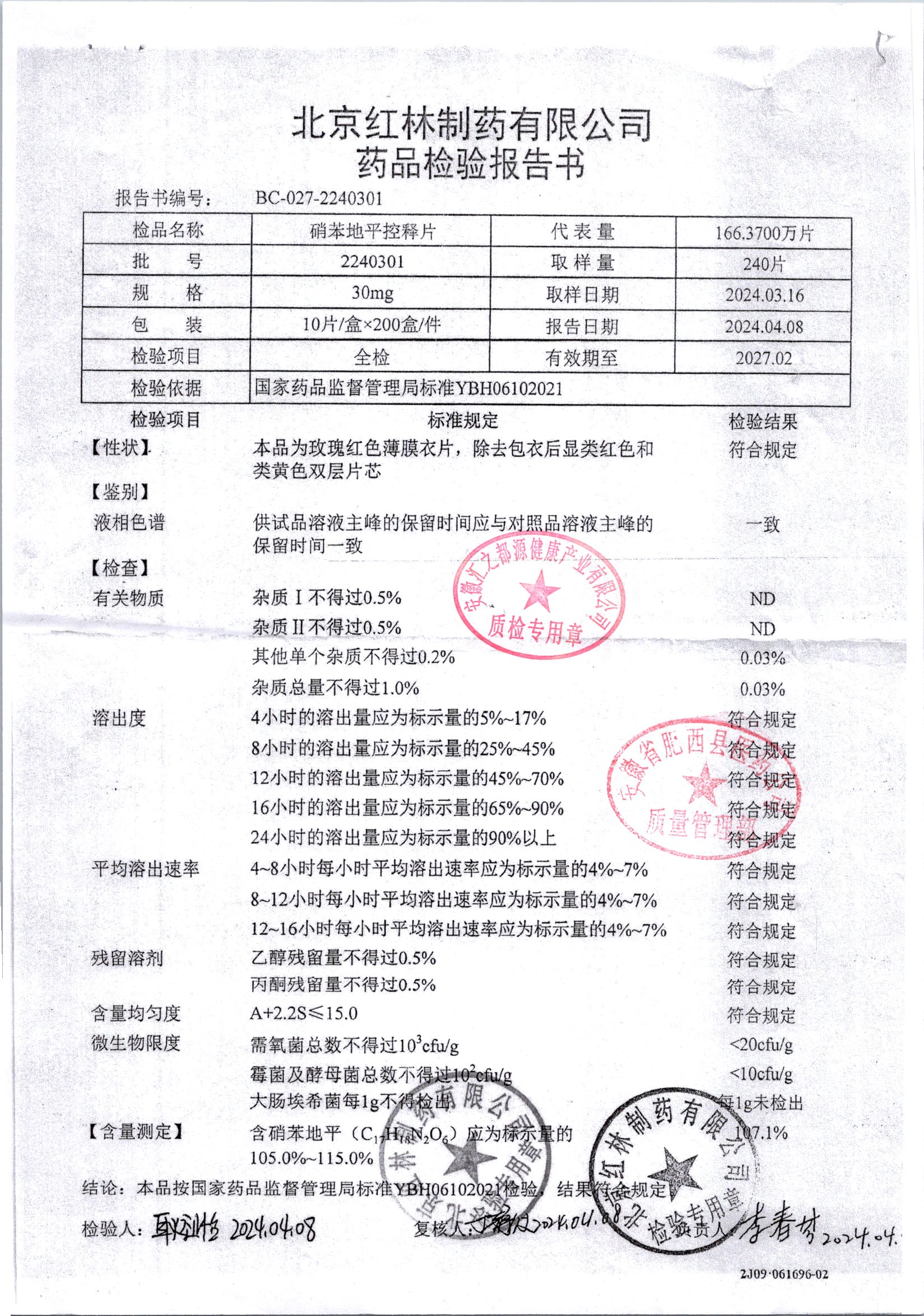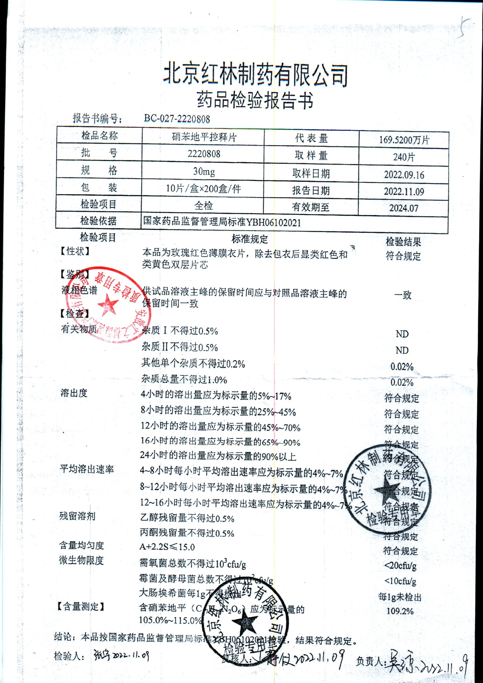 硝苯地平控释片 | 30 | 2240806 | 查看详情 |