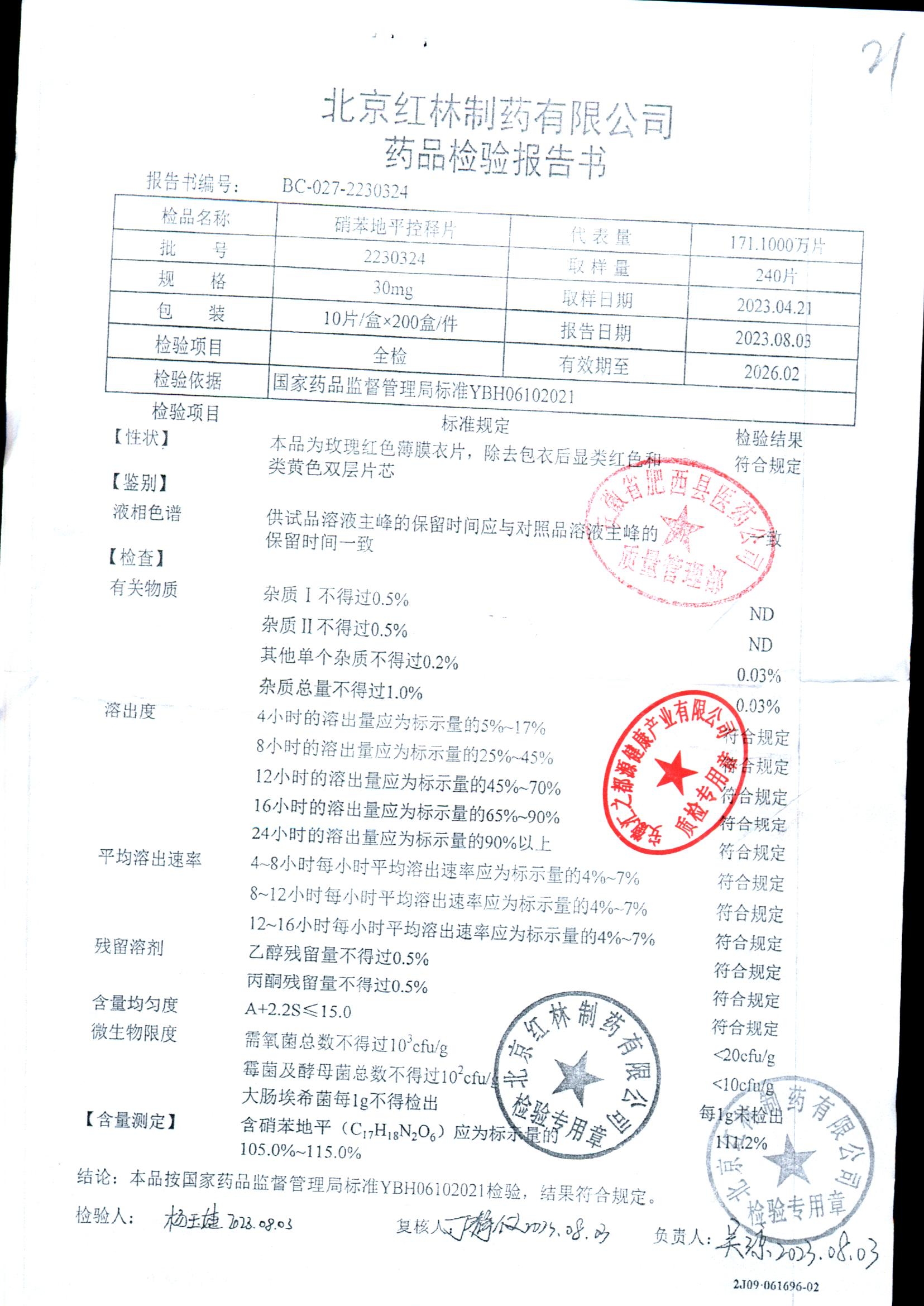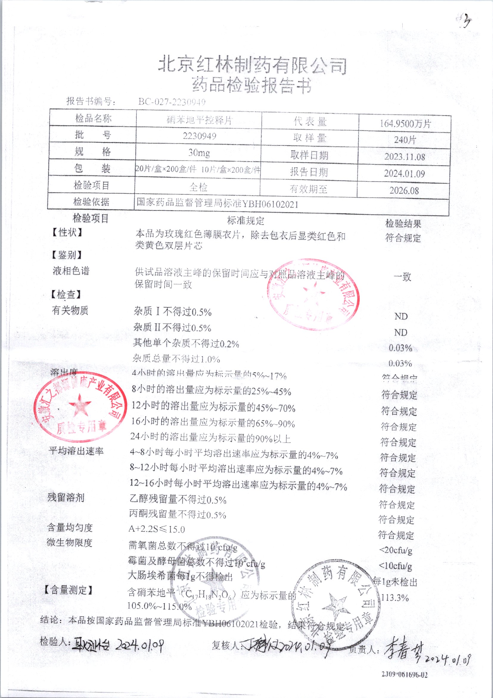 硝苯地平控释片 | 30 | 2230949 | 查看详情 |