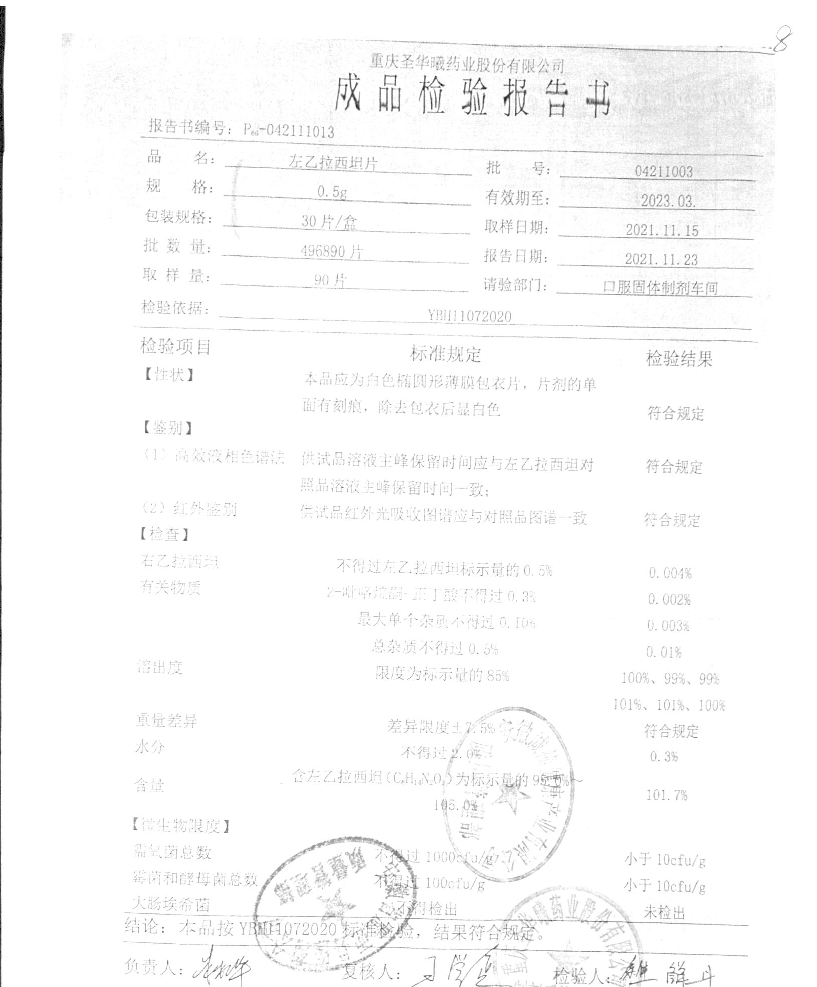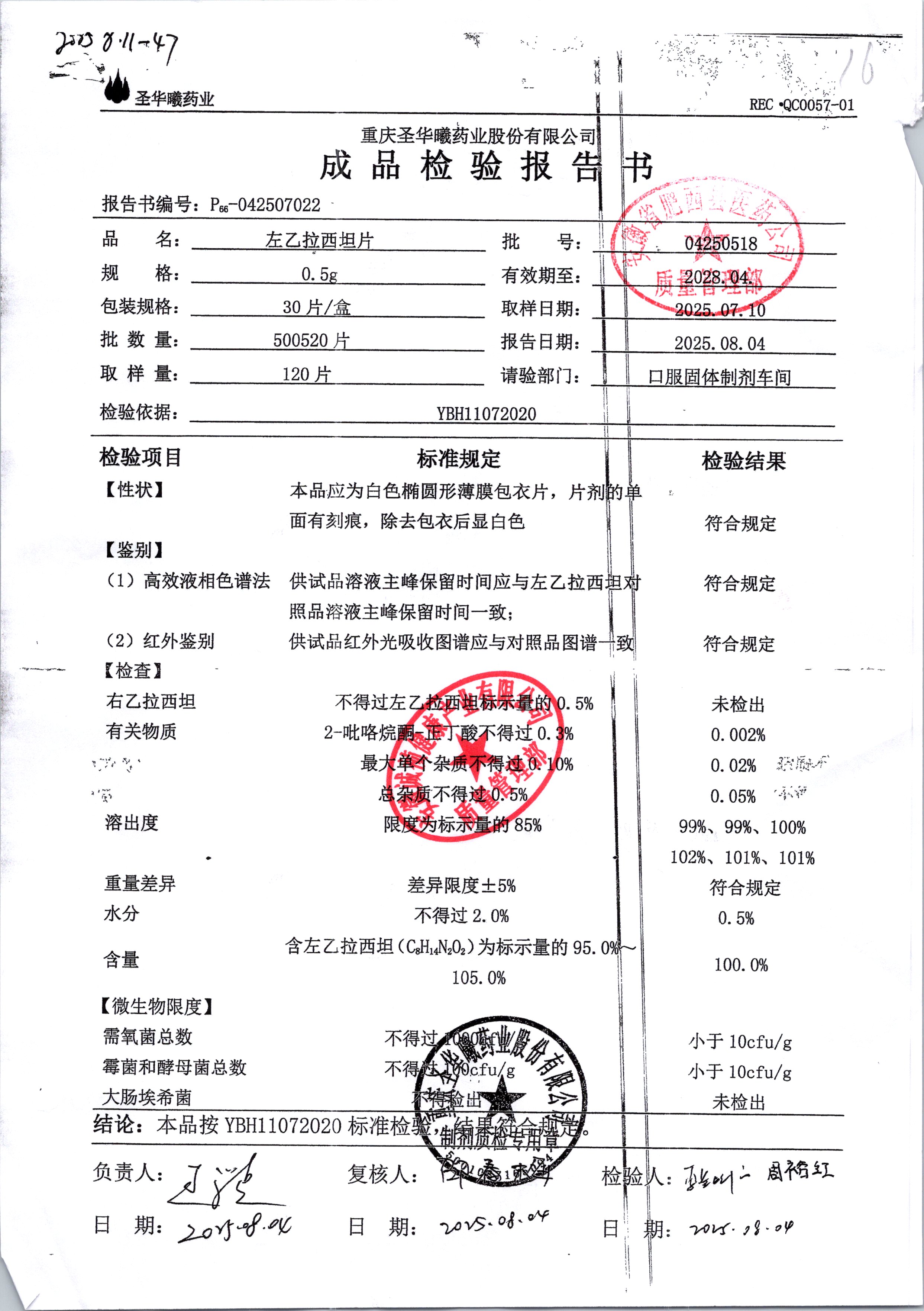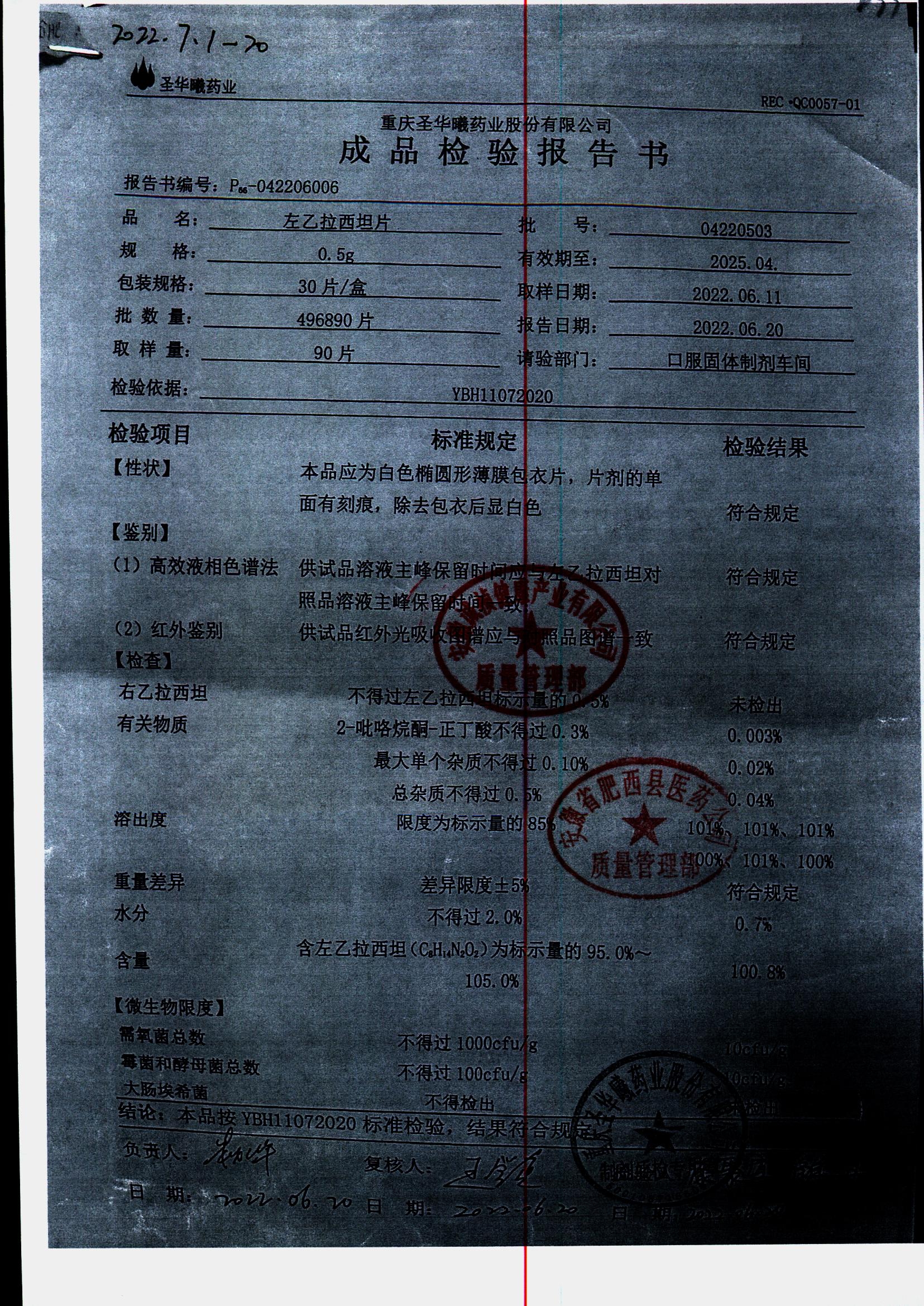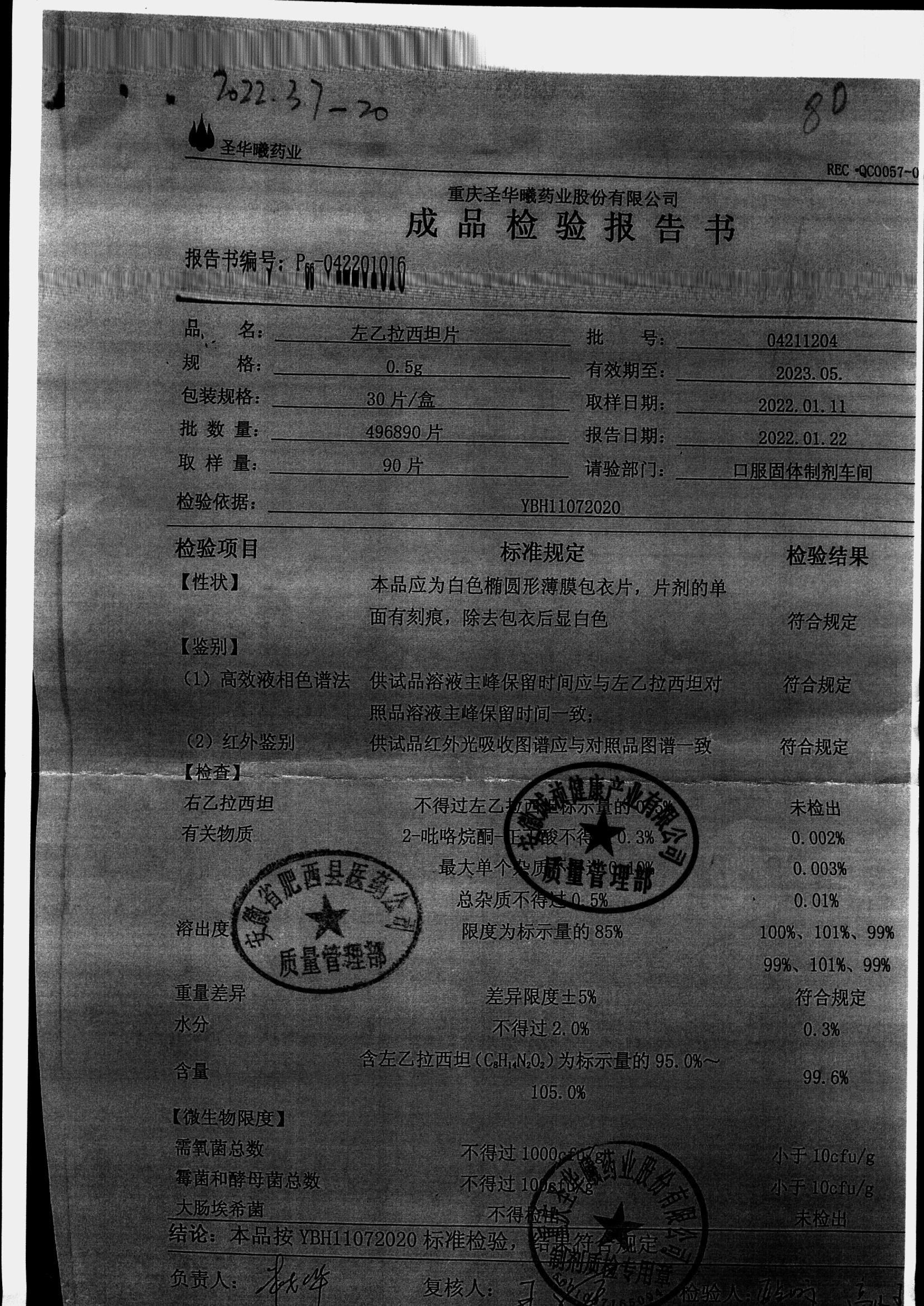 左乙拉西坦片 | 0.5g*30片 | 04220503 | 查看详情 |