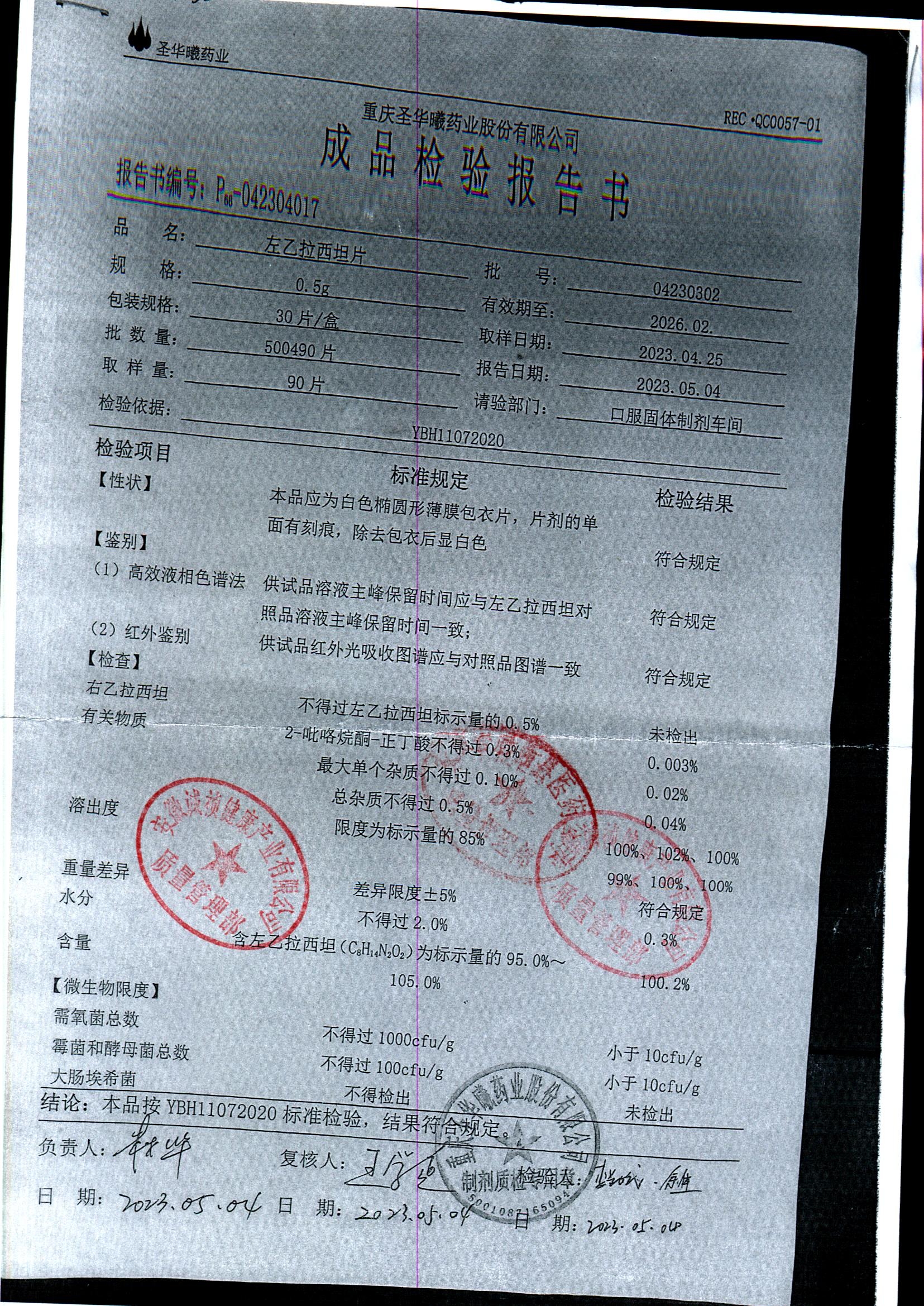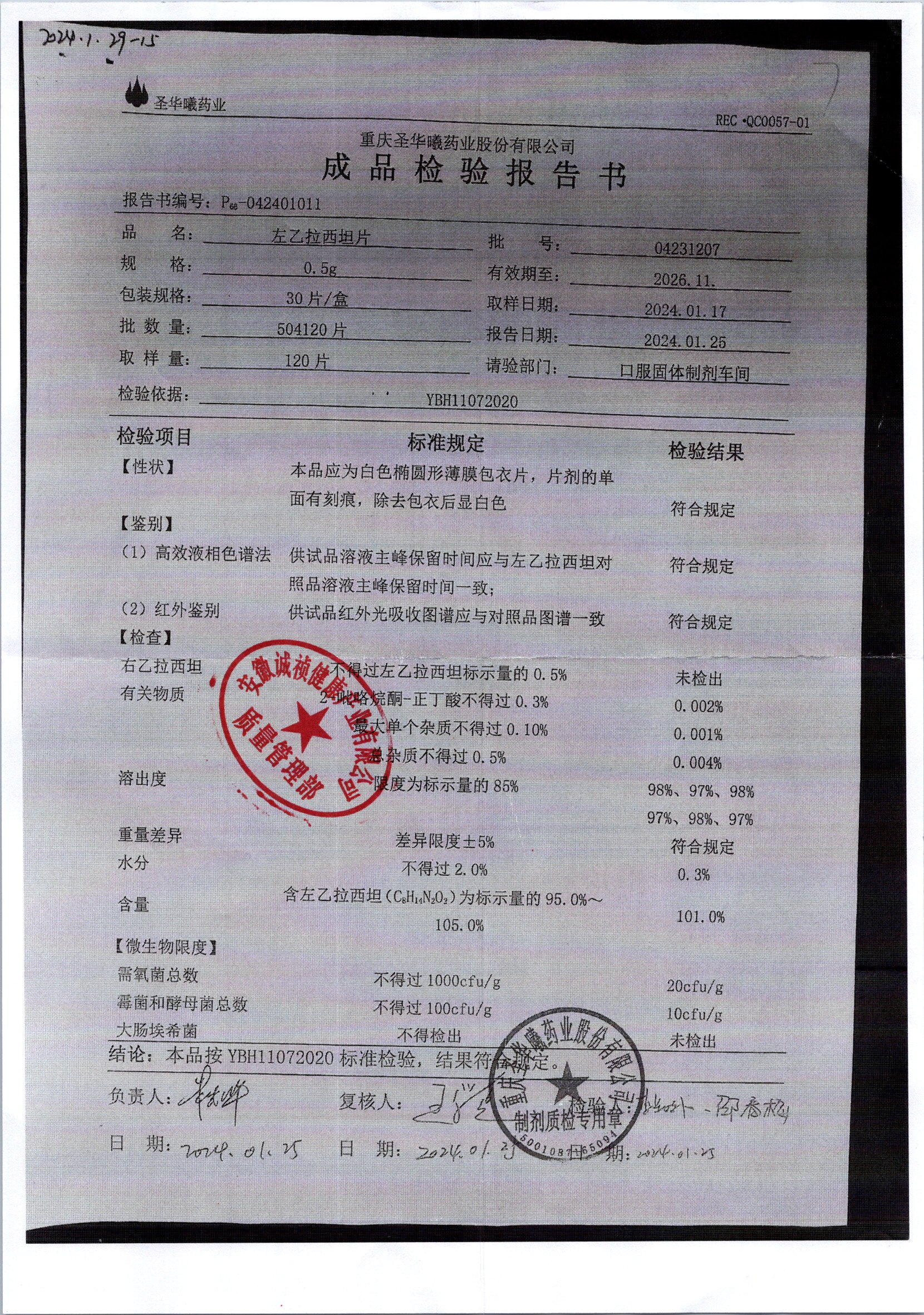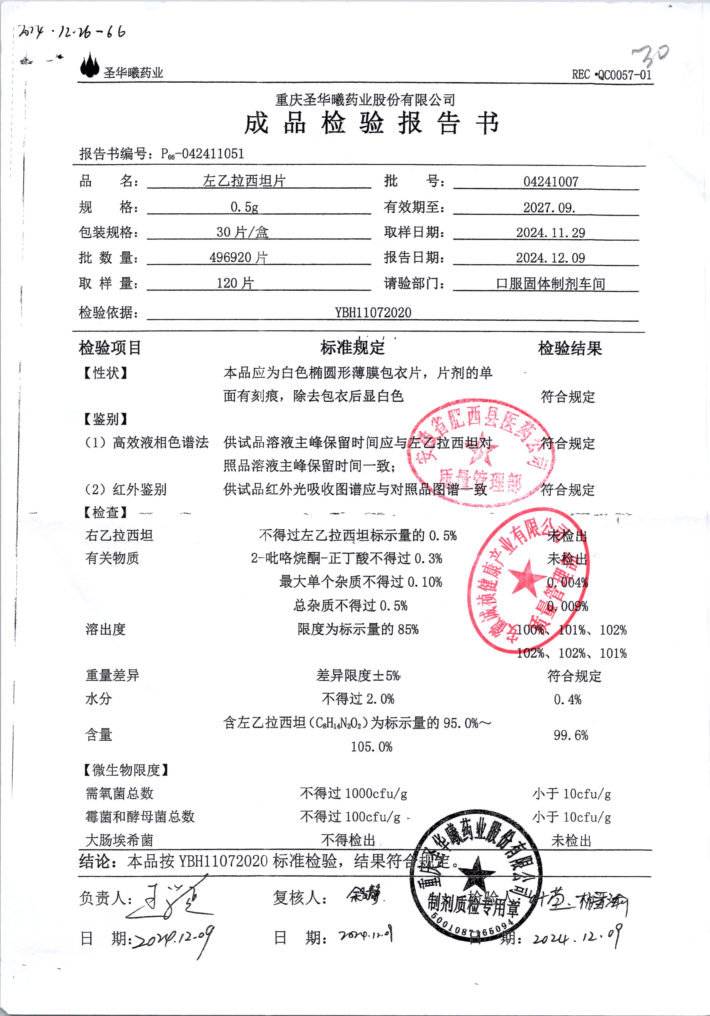 左乙拉西坦片 | 0.5g*30片 | 04241007 | 查看详情 |