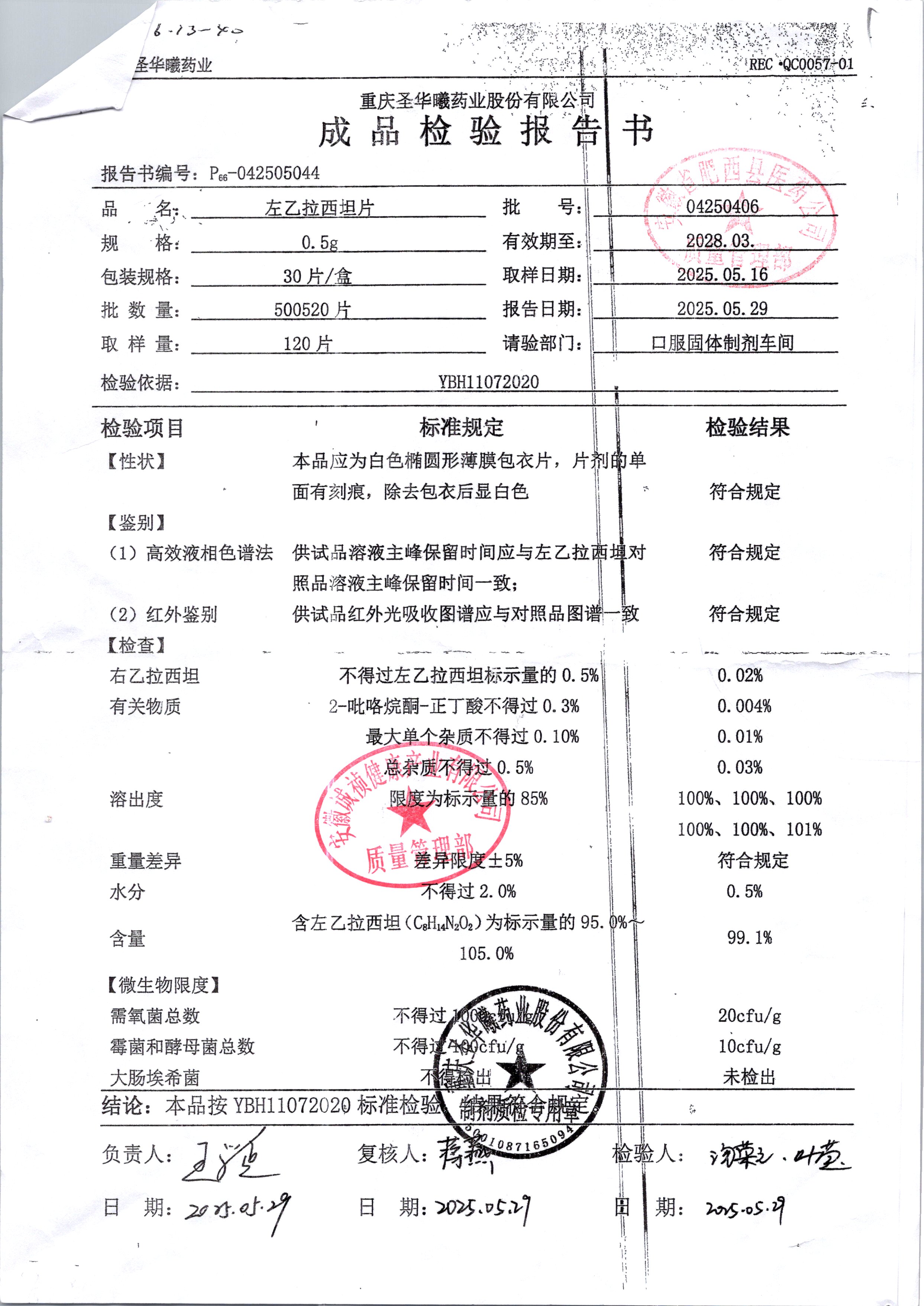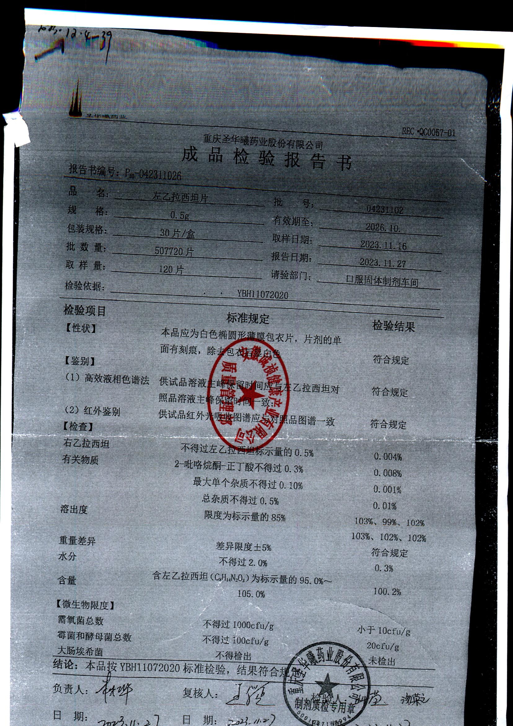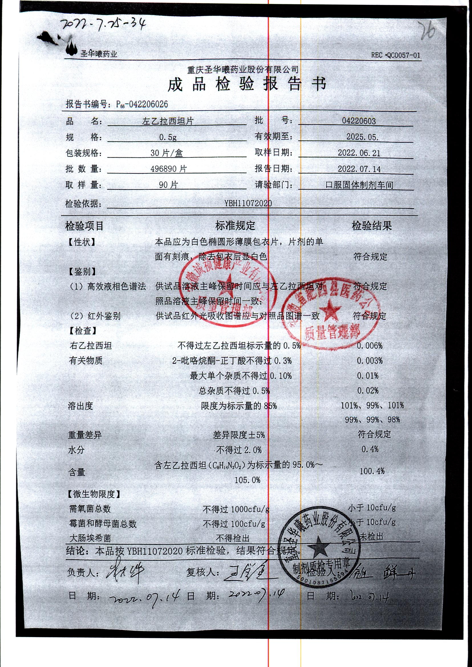 左乙拉西坦片 | 0.5g*30片 | 04241007 | 查看详情 |