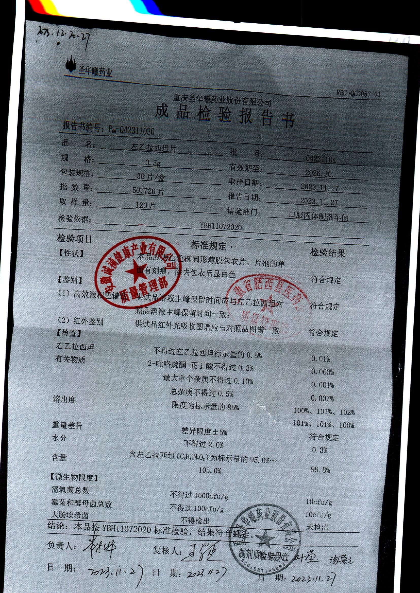 左乙拉西坦片 | 0.5g*30片 | 04231207 | 查看详情 |