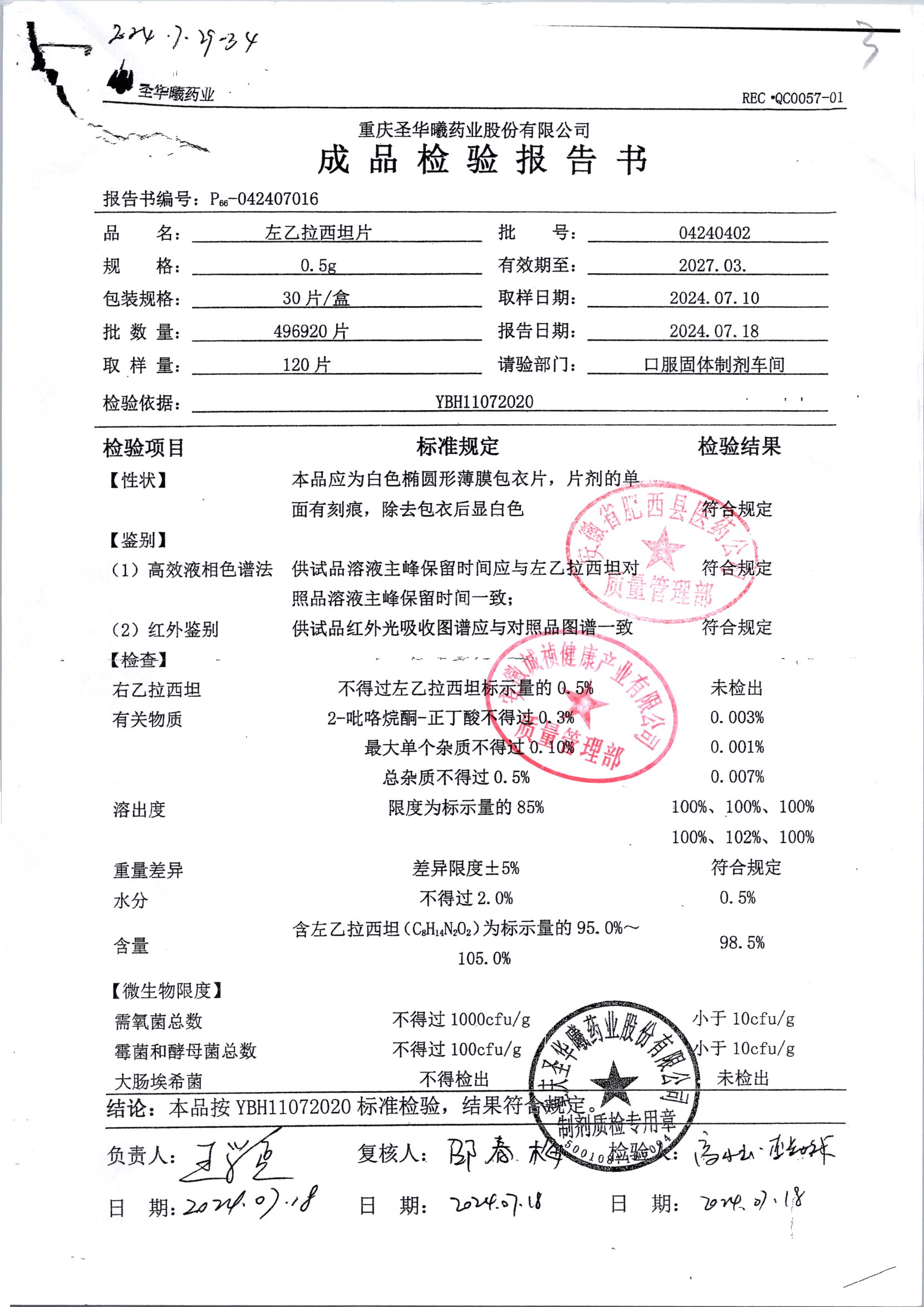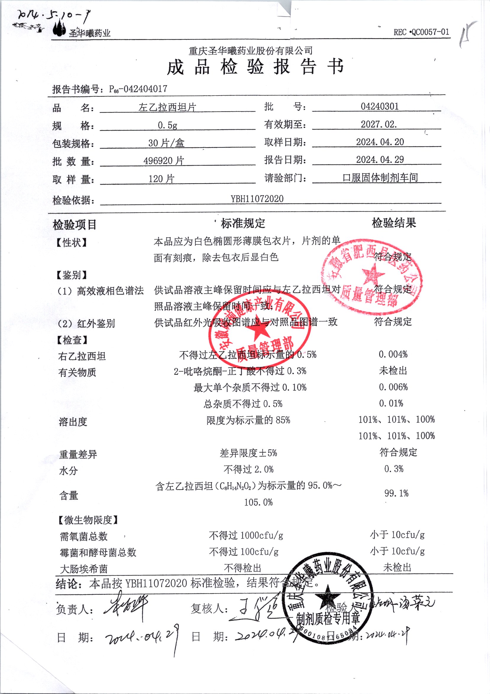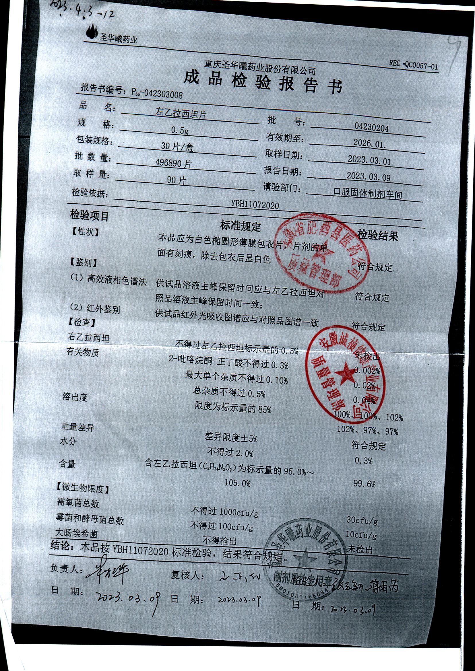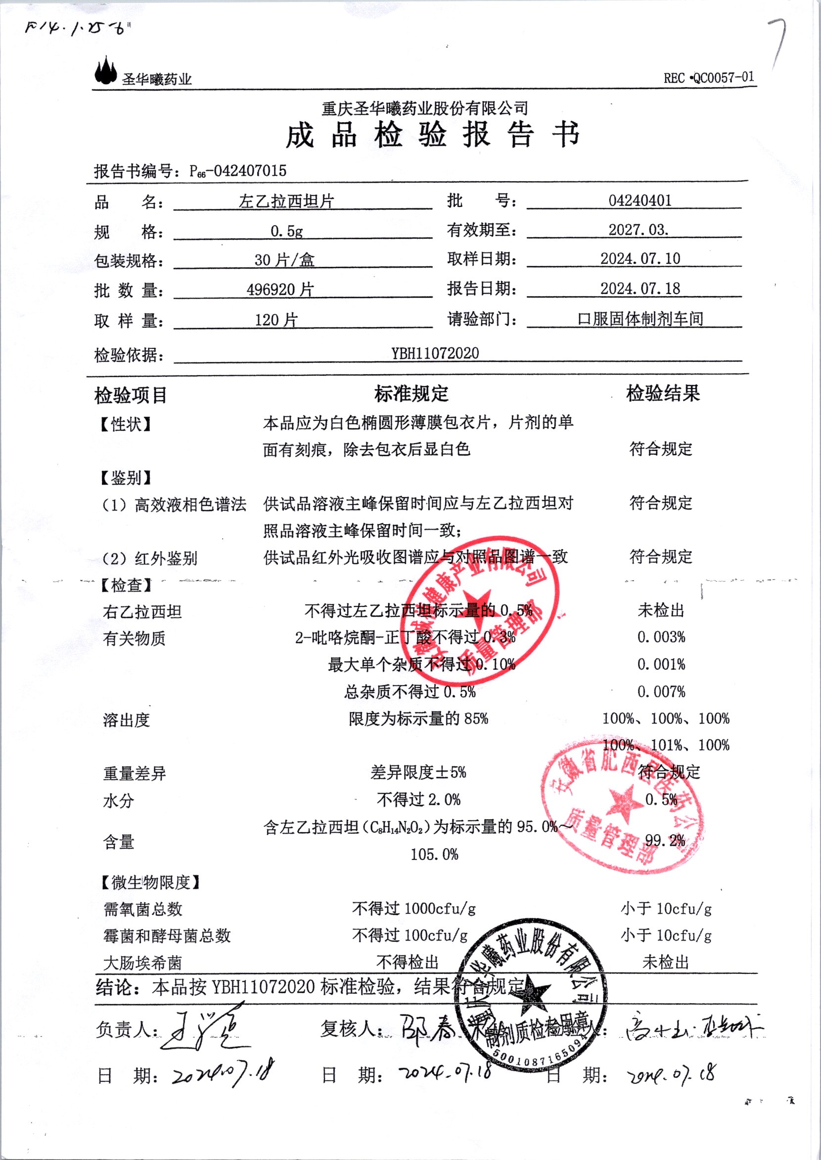 左乙拉西坦片 | 0.5g*30片 | 04240909 | 查看详情 |