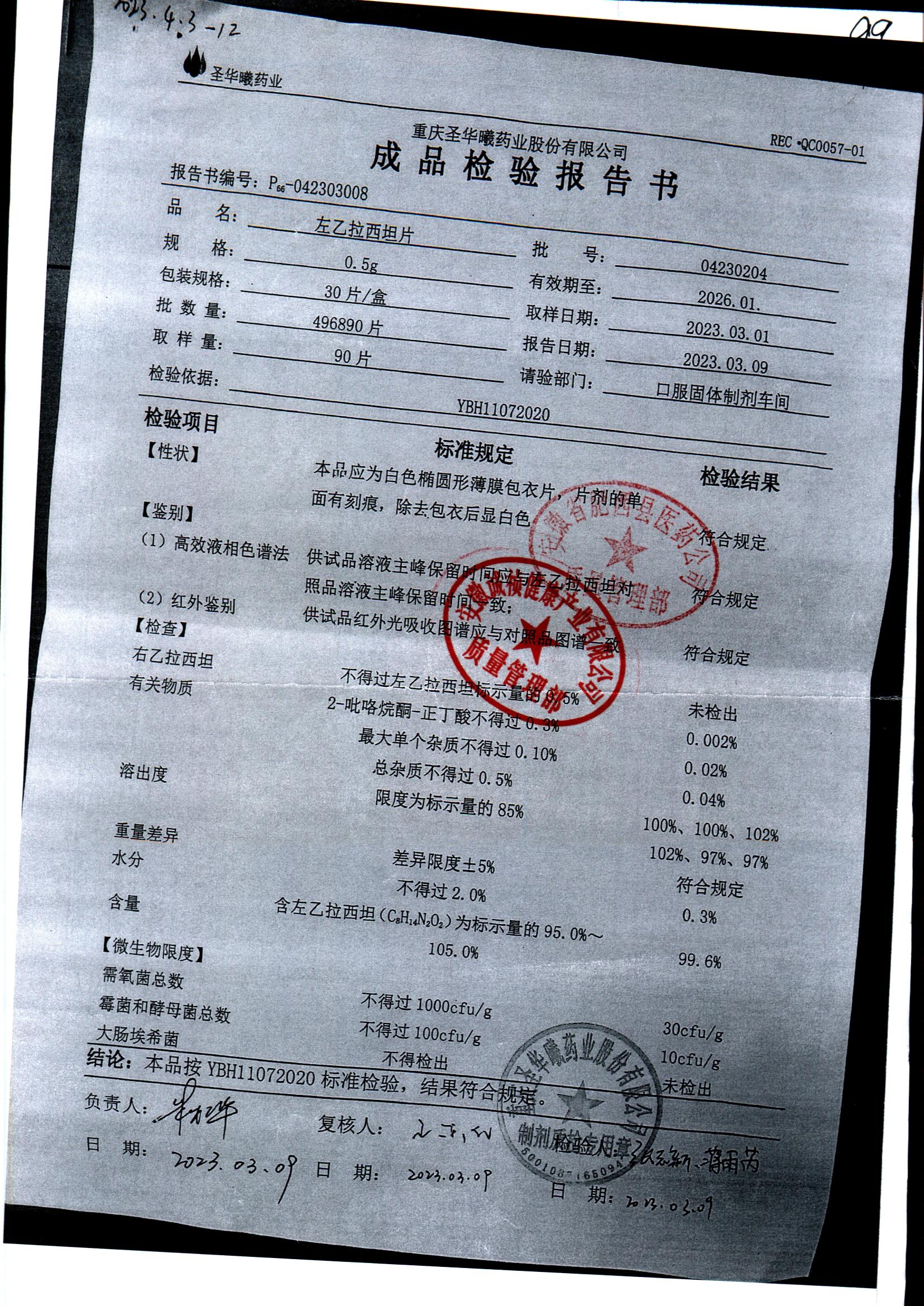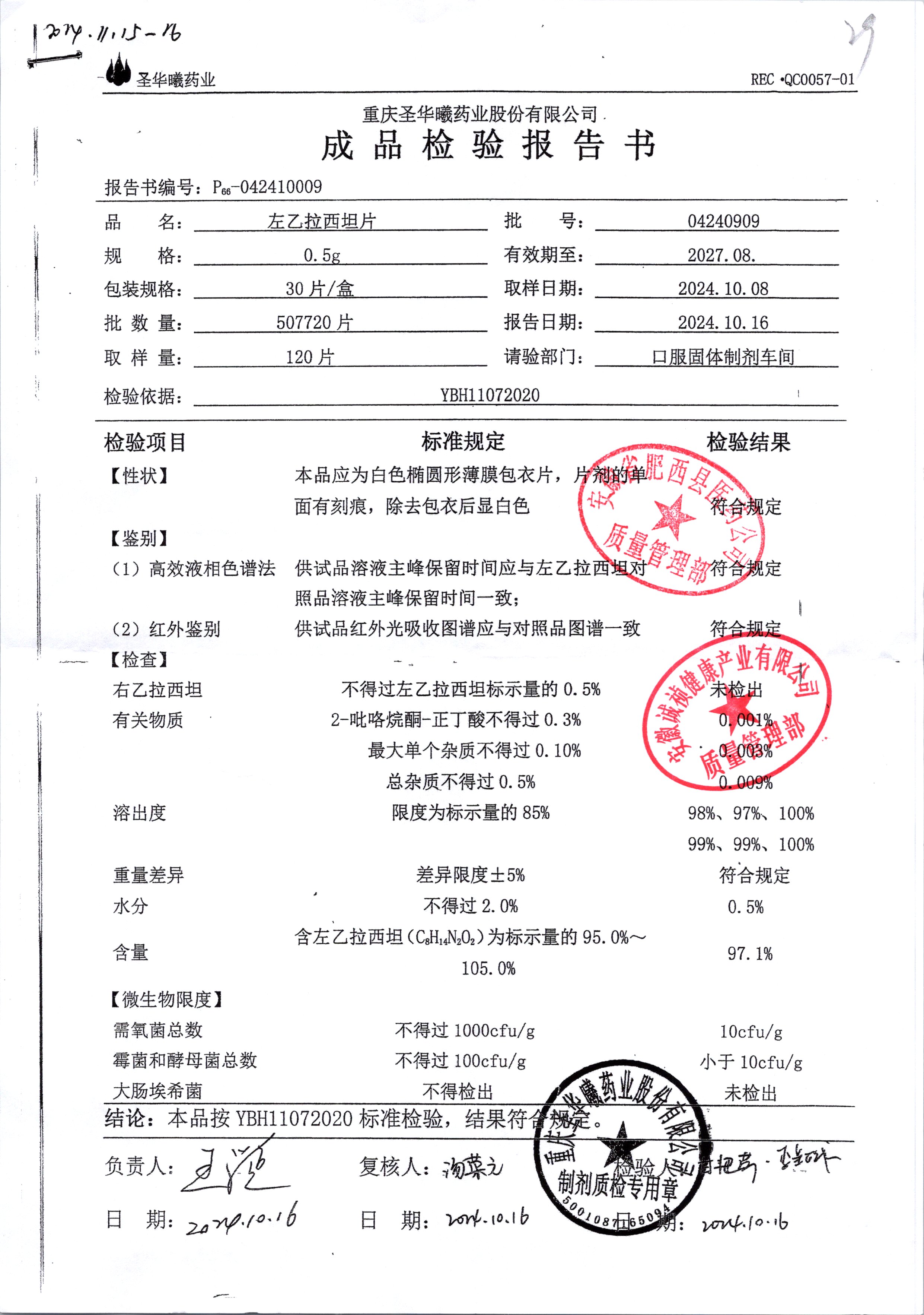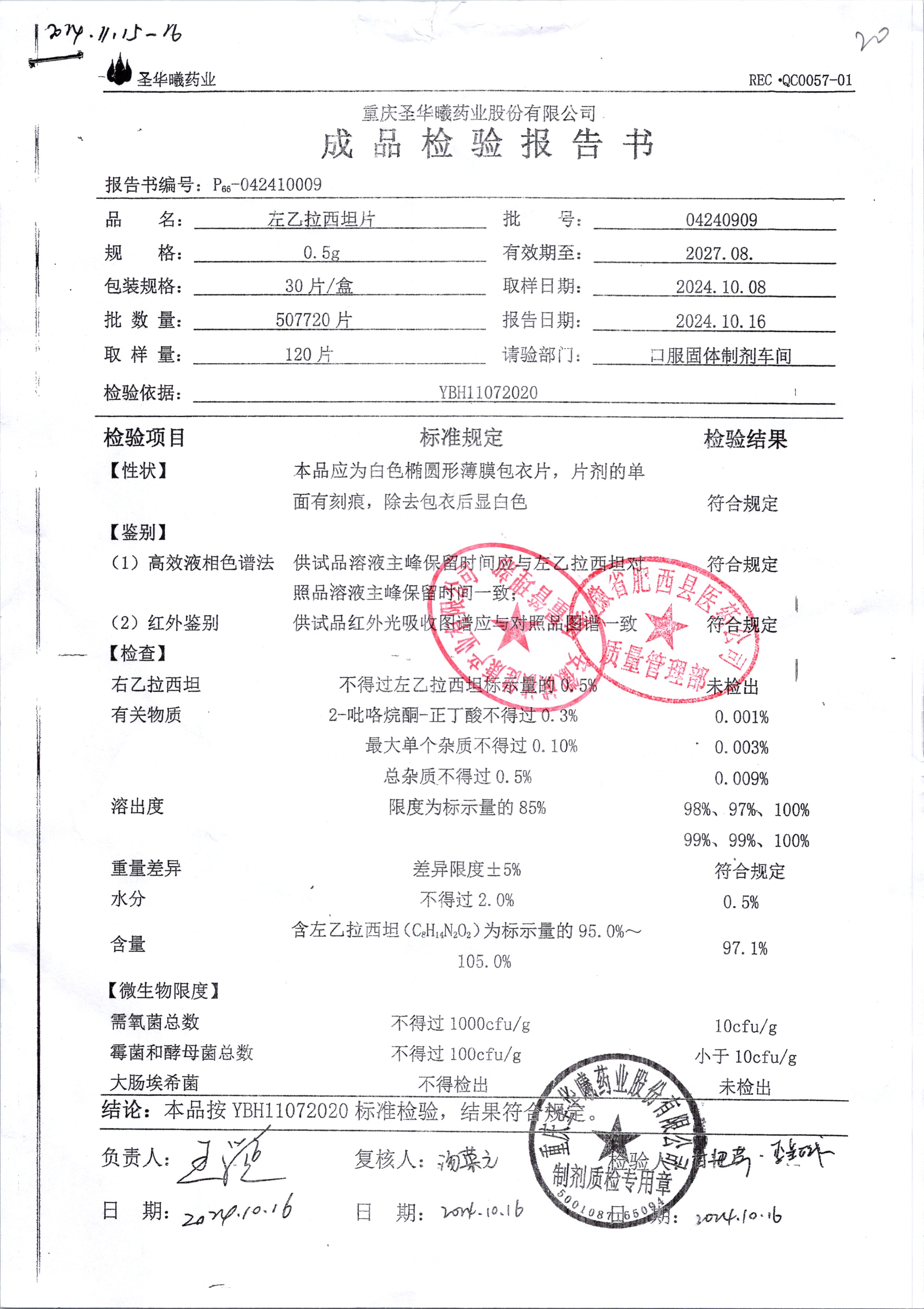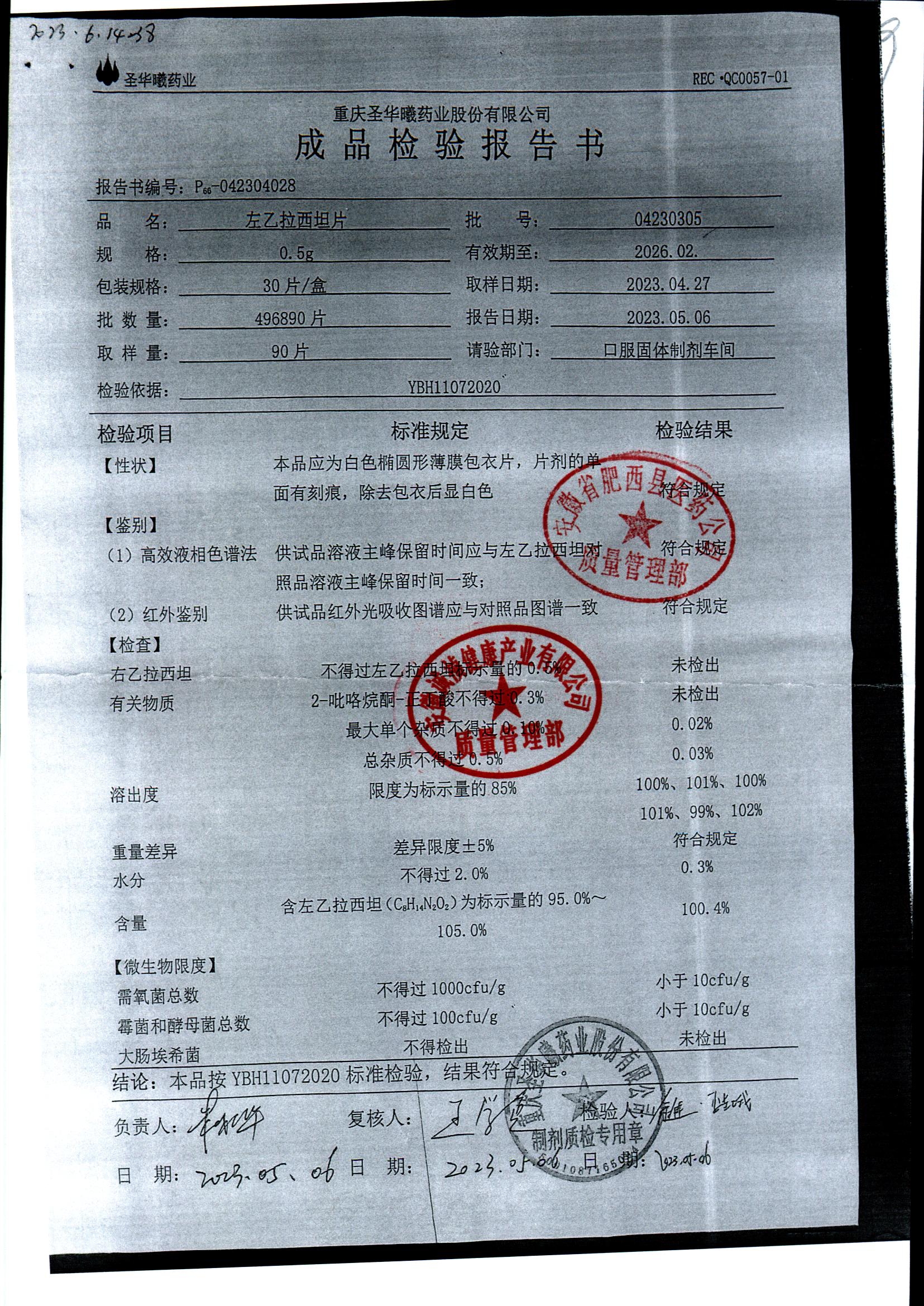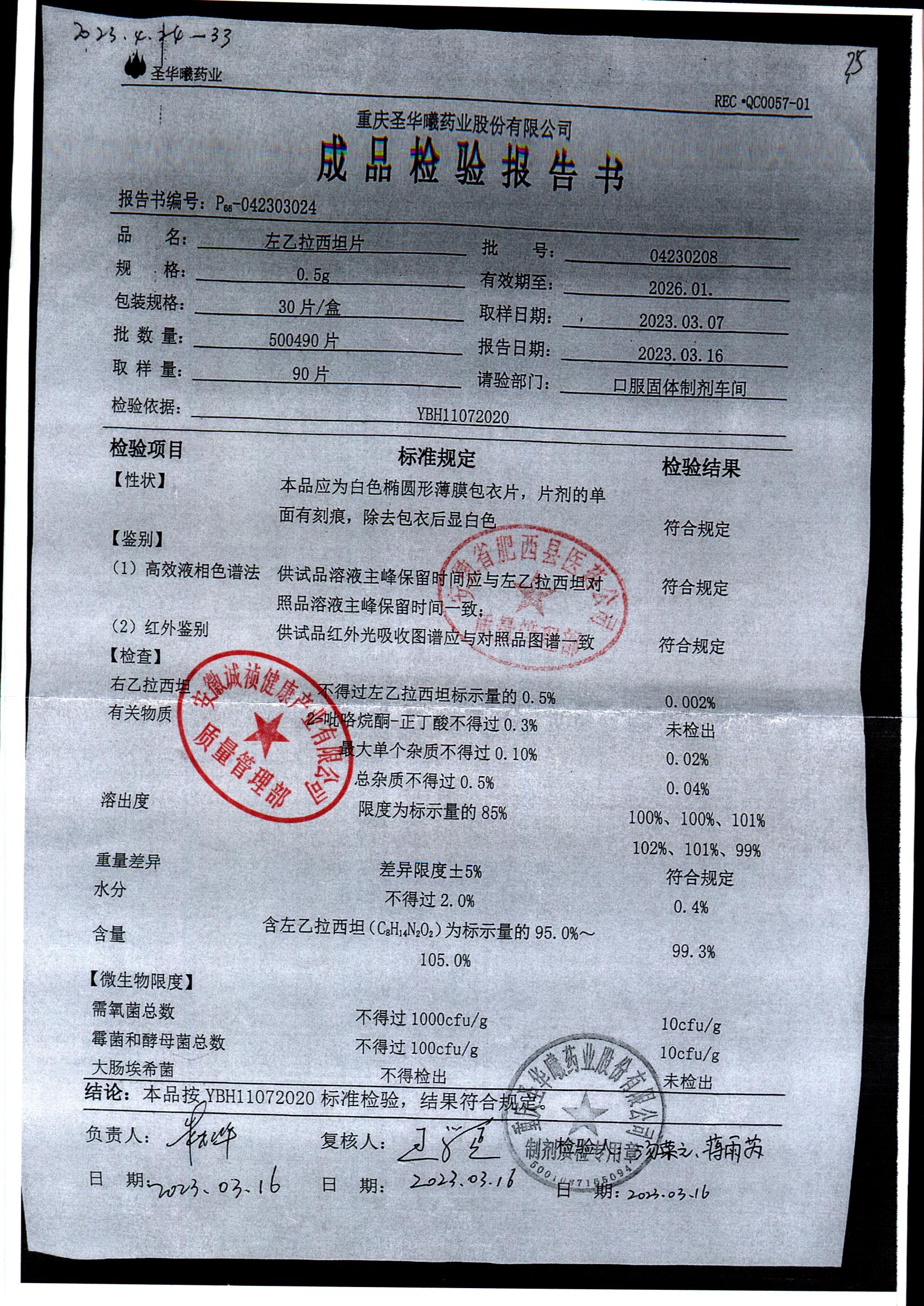 左乙拉西坦片 | 0.5g*30片 | 04240909 | 查看详情 |