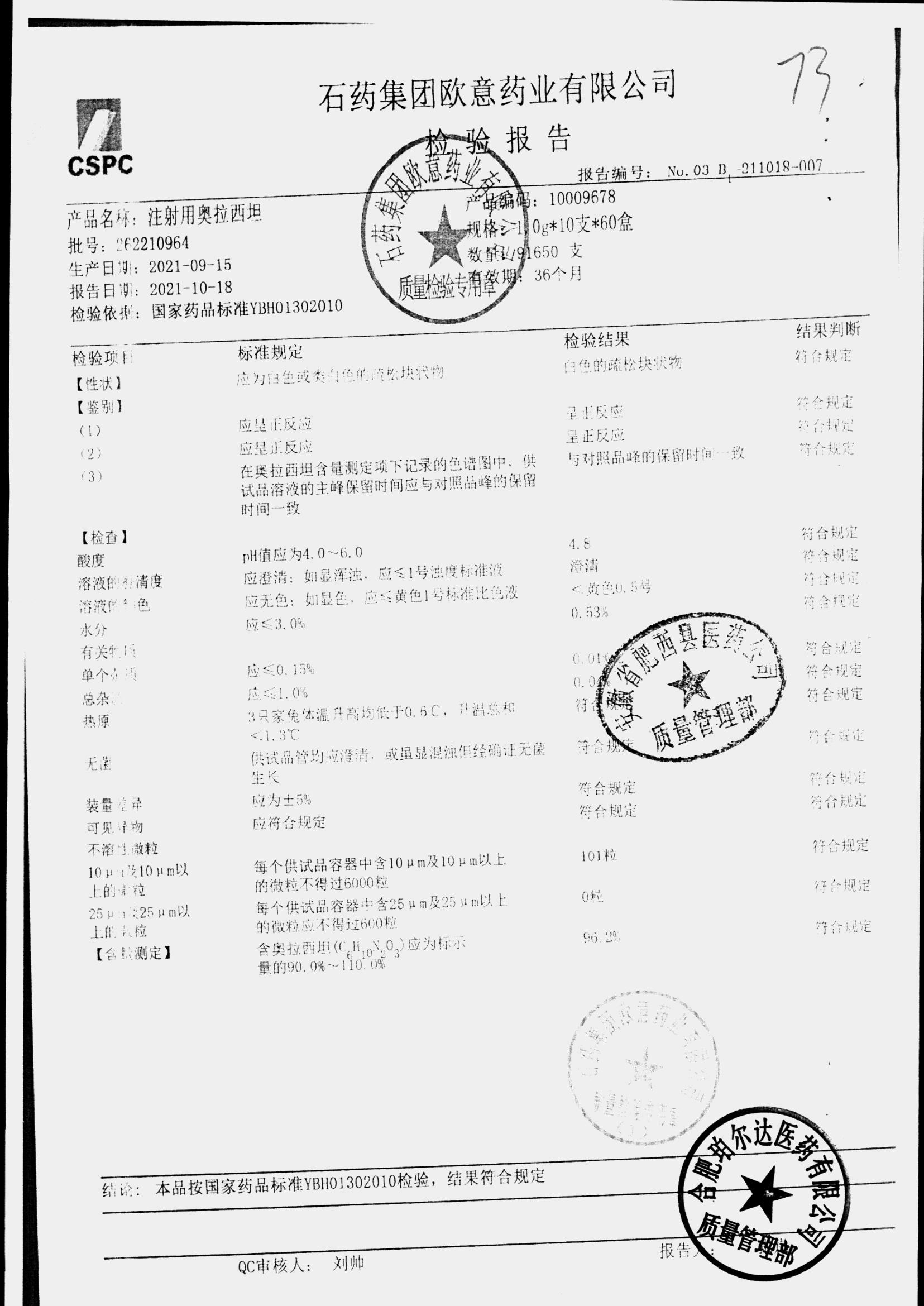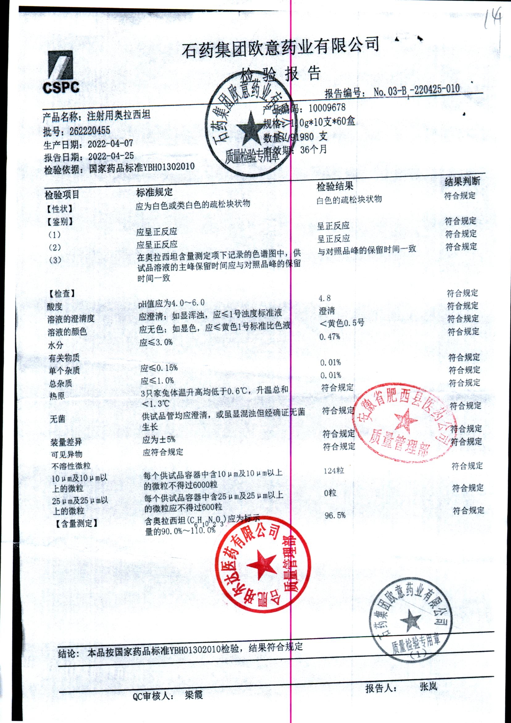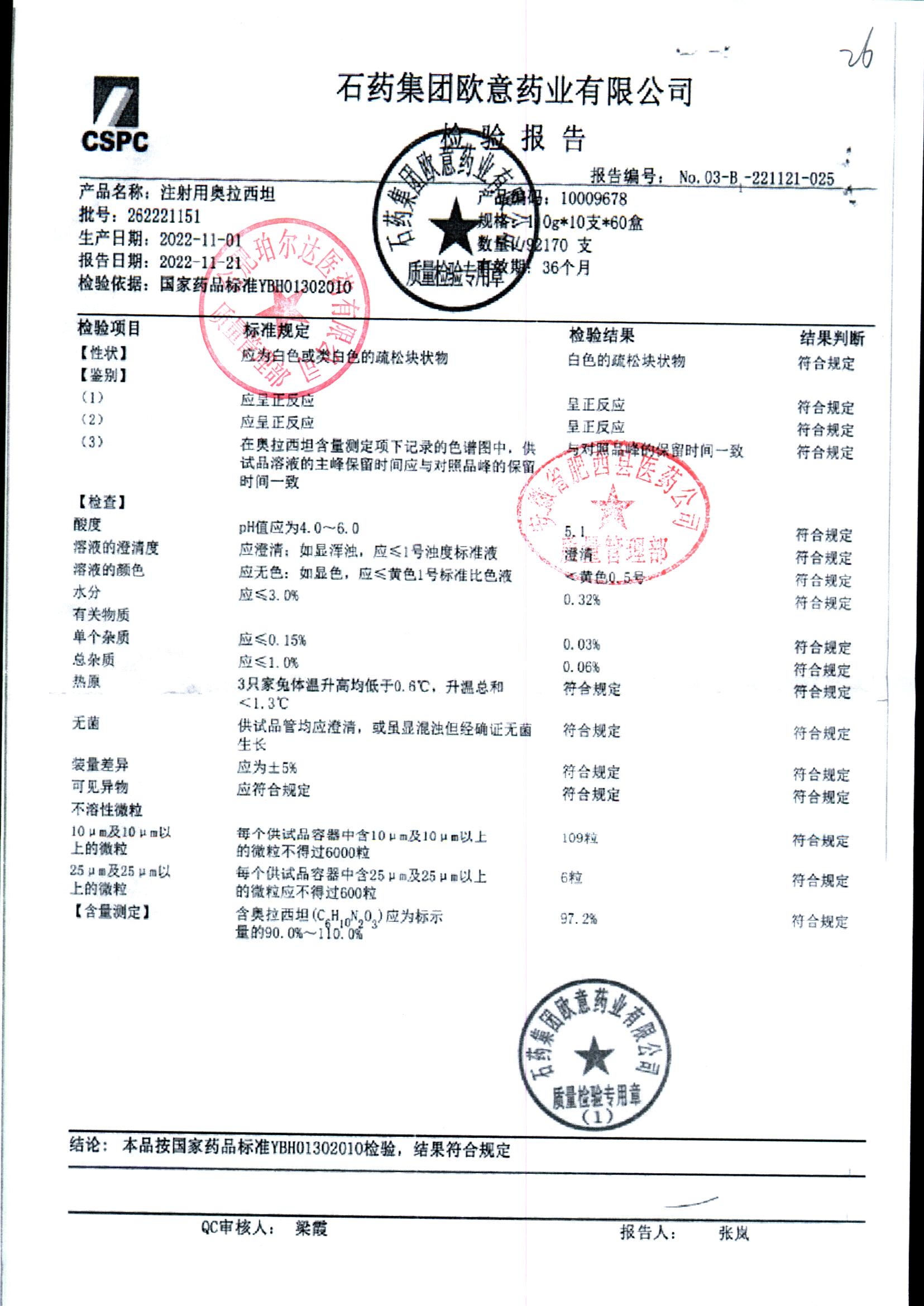 注射用奥拉西坦 | 1.0*10支 | 262230551 | 查看详情 |