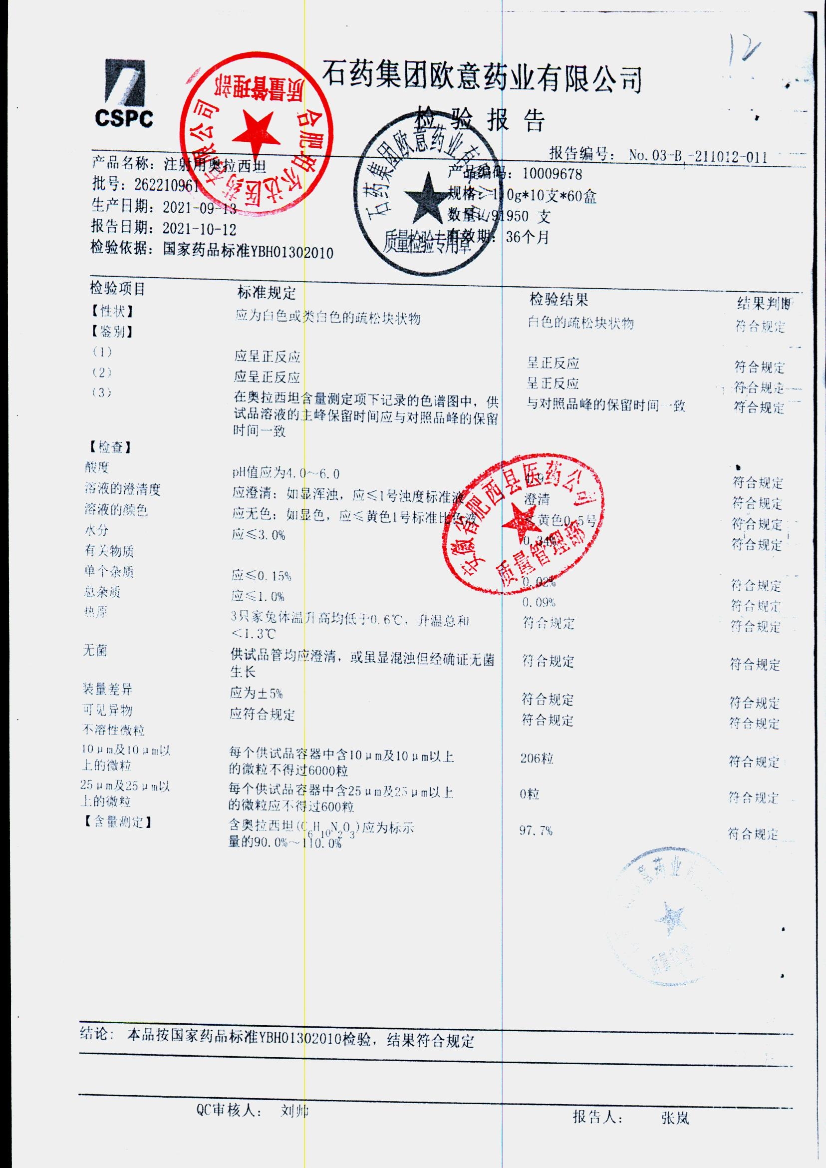 注射用奥拉西坦 | 1.0*10支 | 262220555 | 查看详情 |