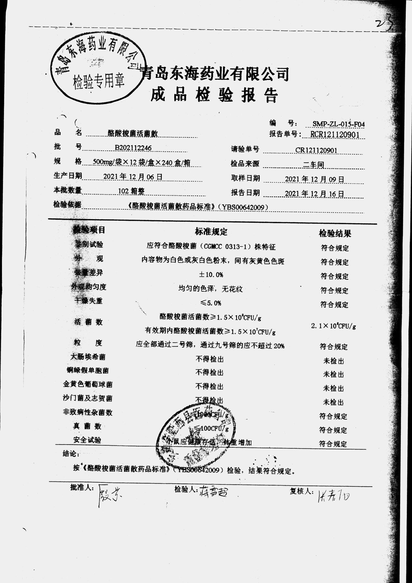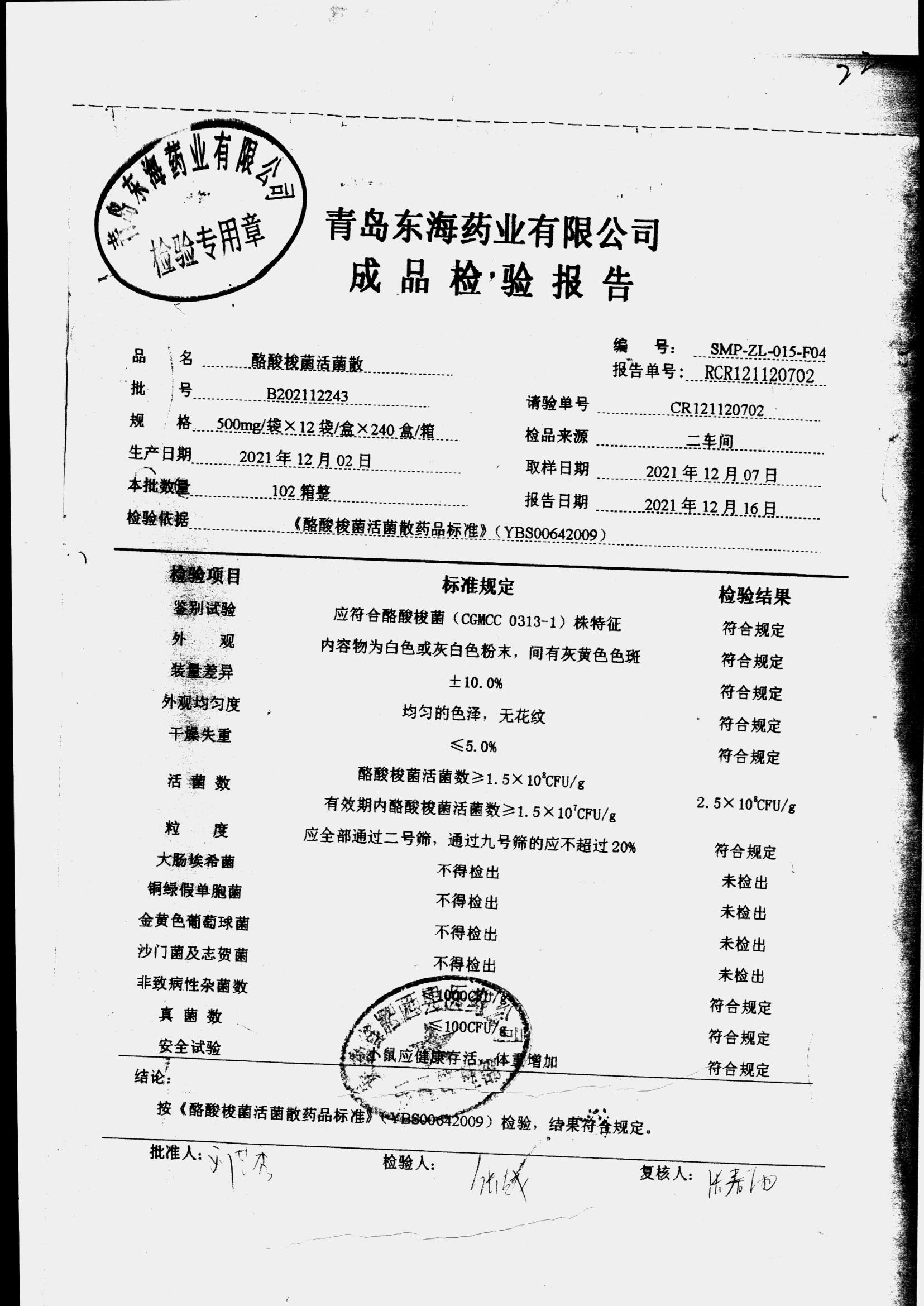 酪酸梭菌活菌胶囊 | 500mg/袋x12袋 | B202112243 | 查看详情 |