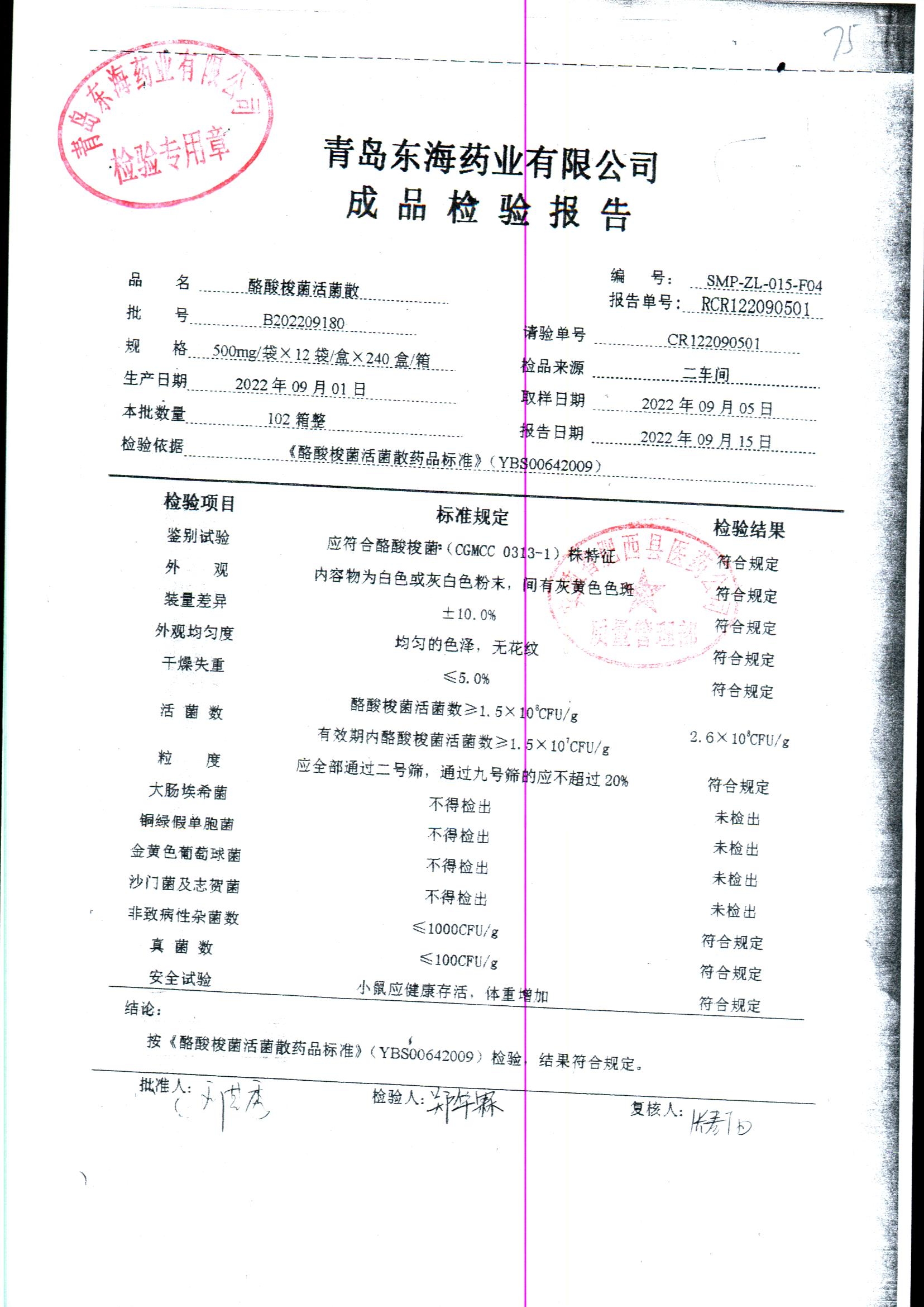 酪酸梭菌活菌胶囊 | 500mg/袋x12袋 | B202209180 | 查看详情 |