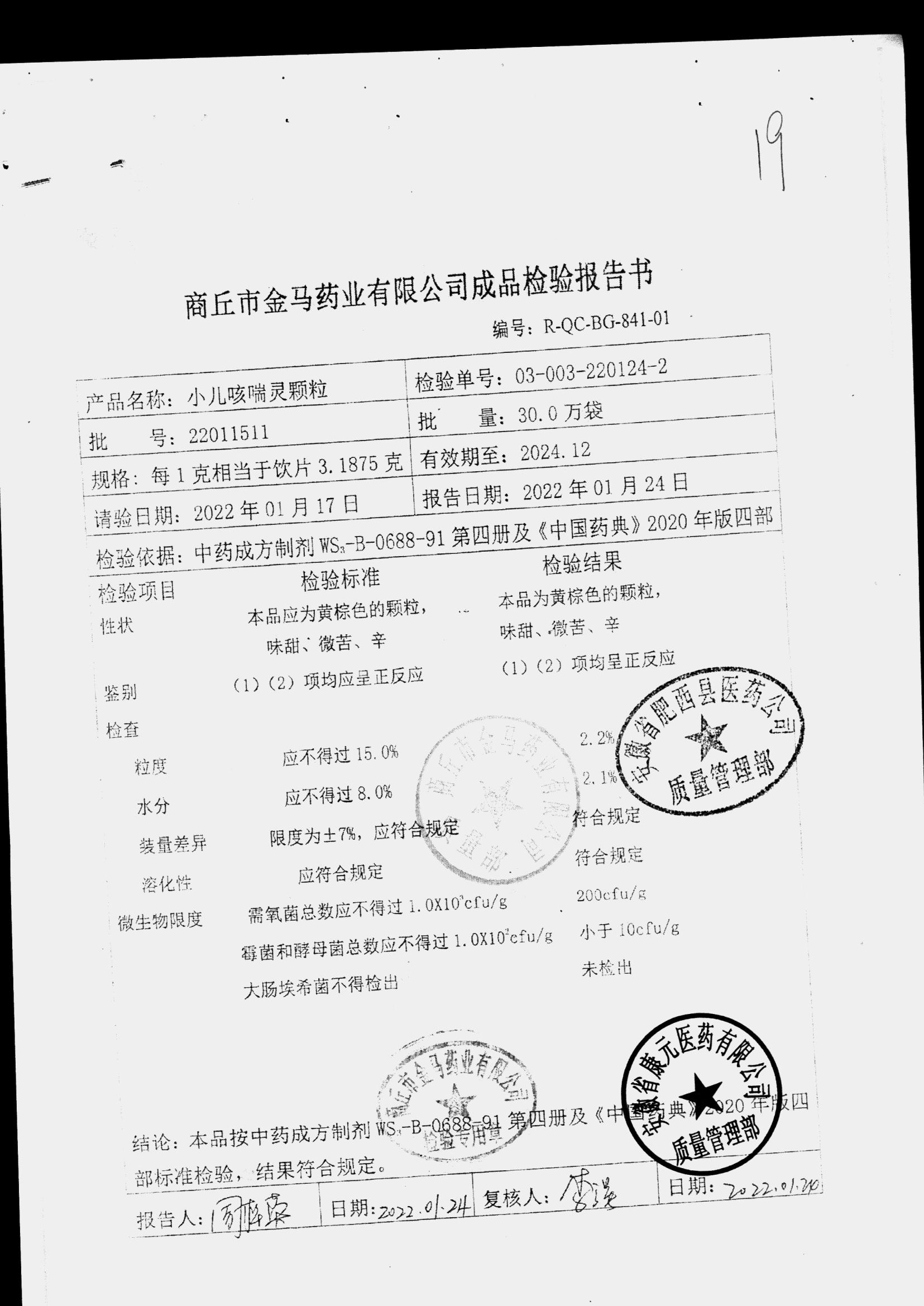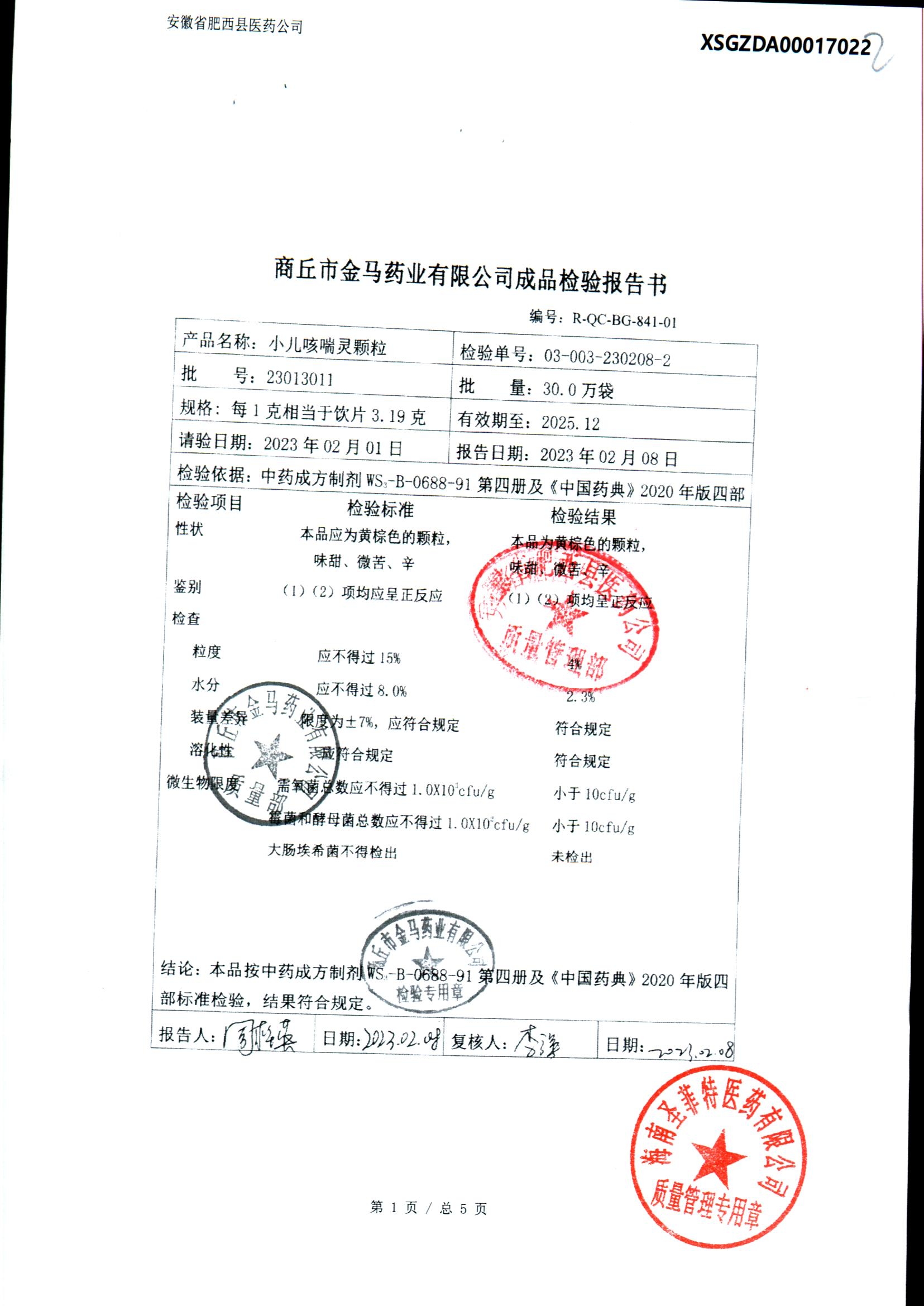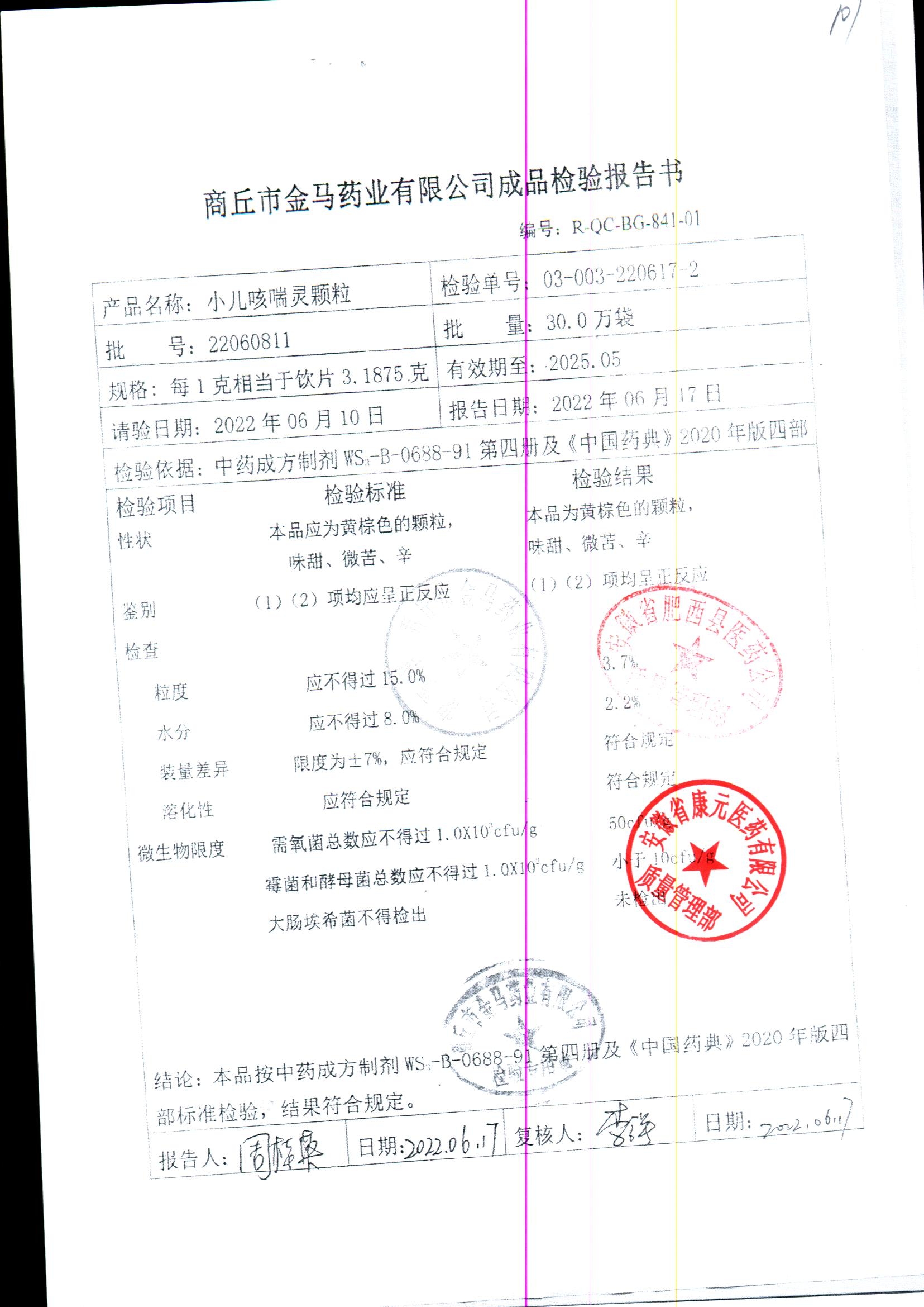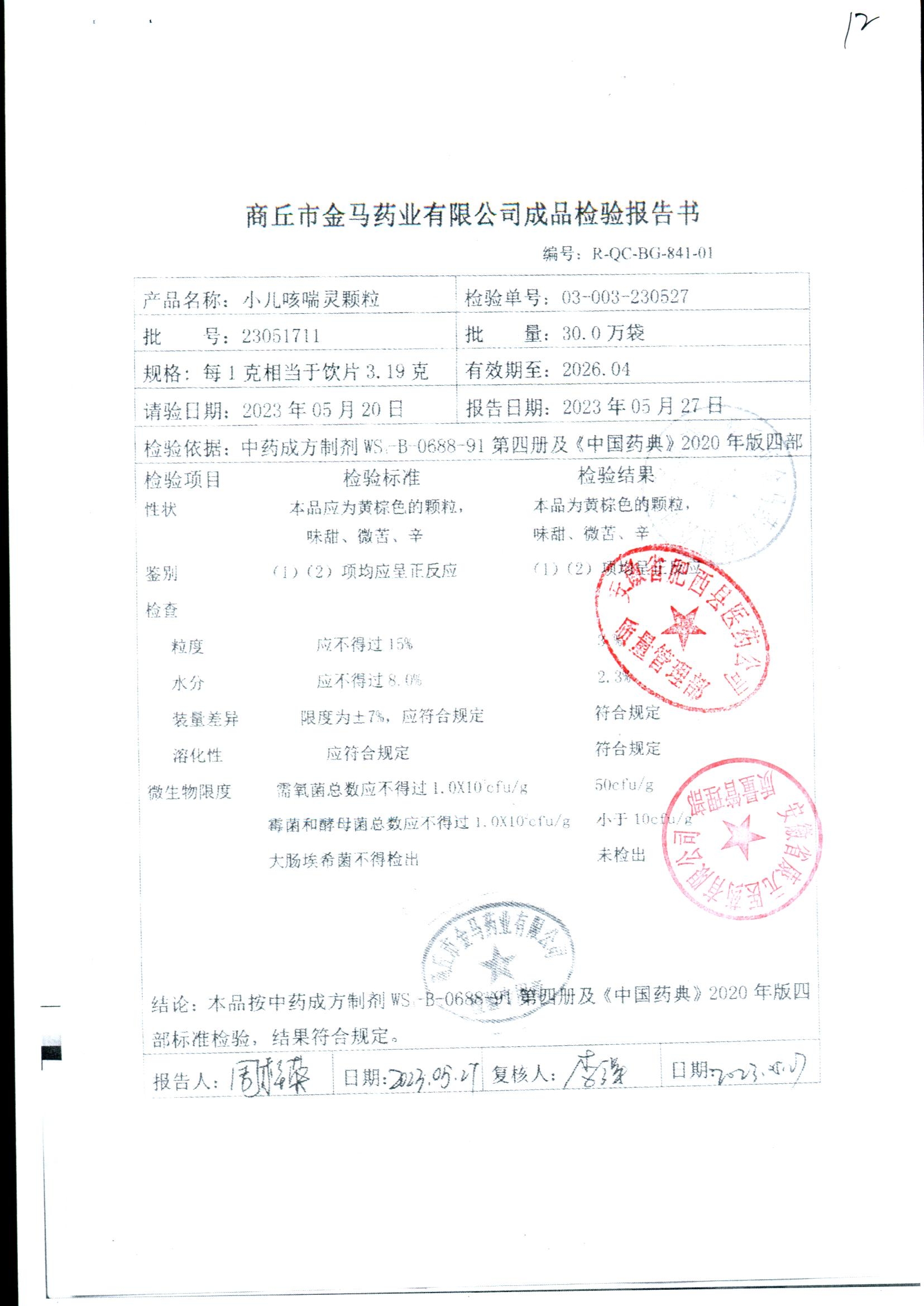 小儿咳喘灵颗粒 | 1克 | 22010311 | 查看详情 |