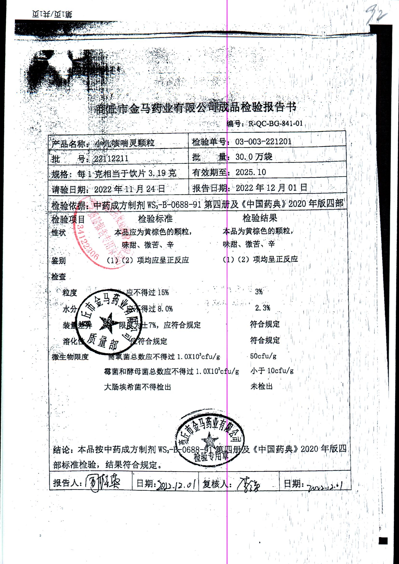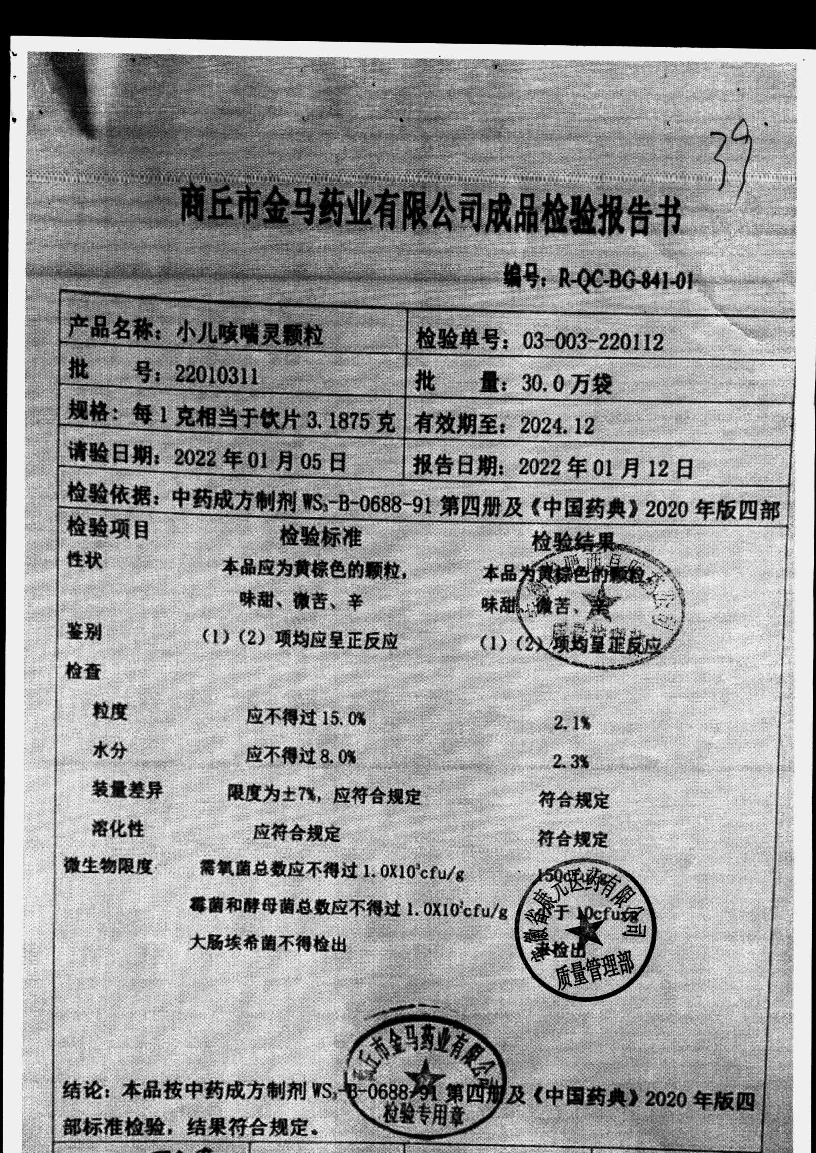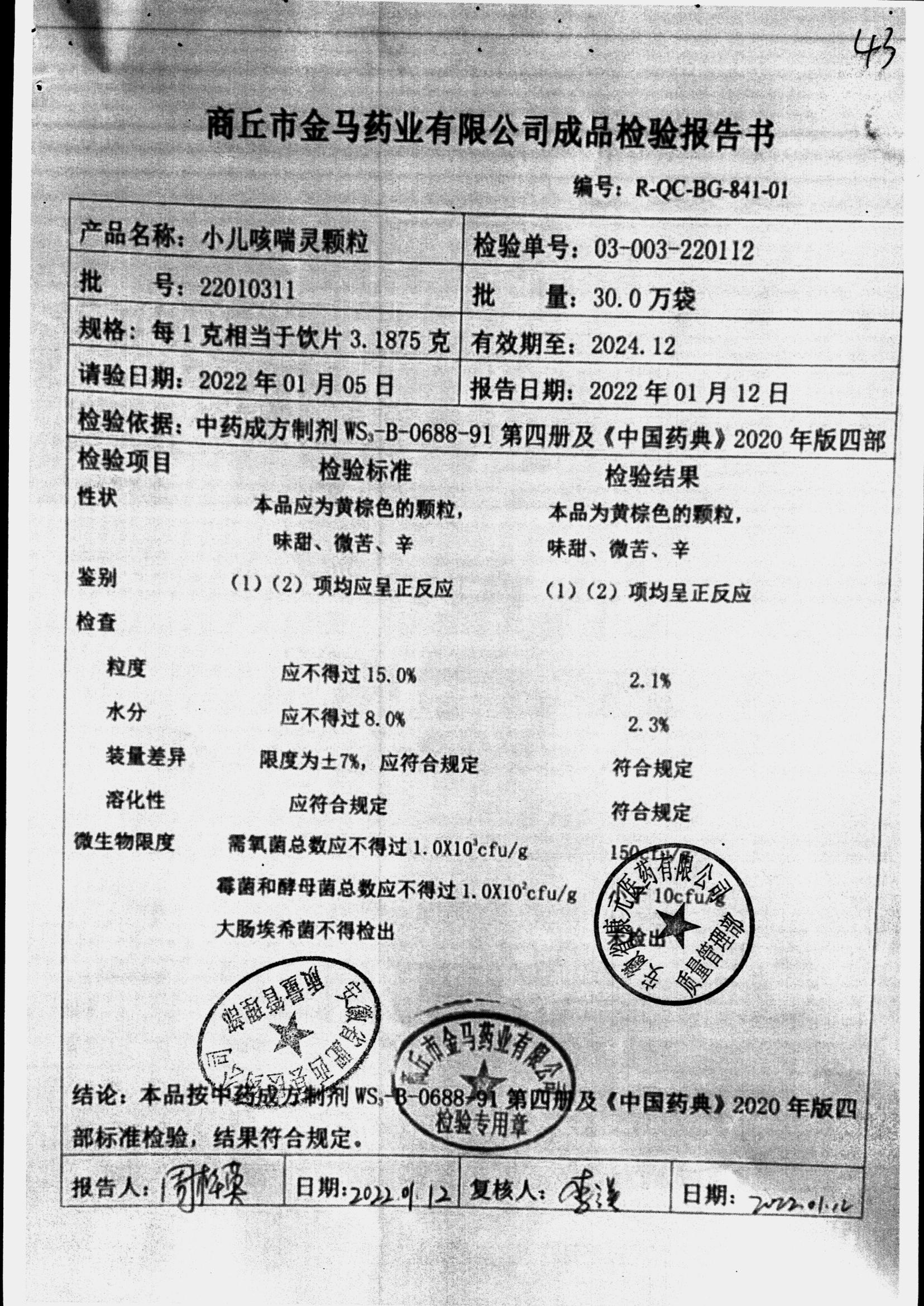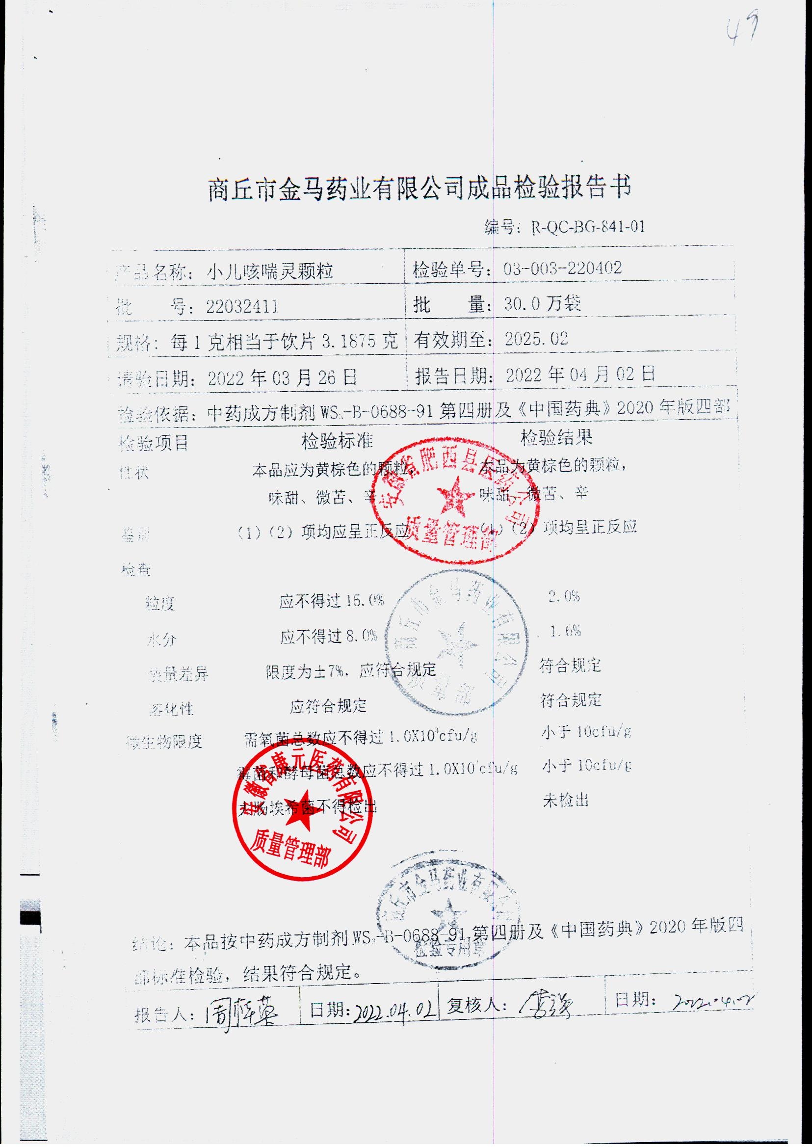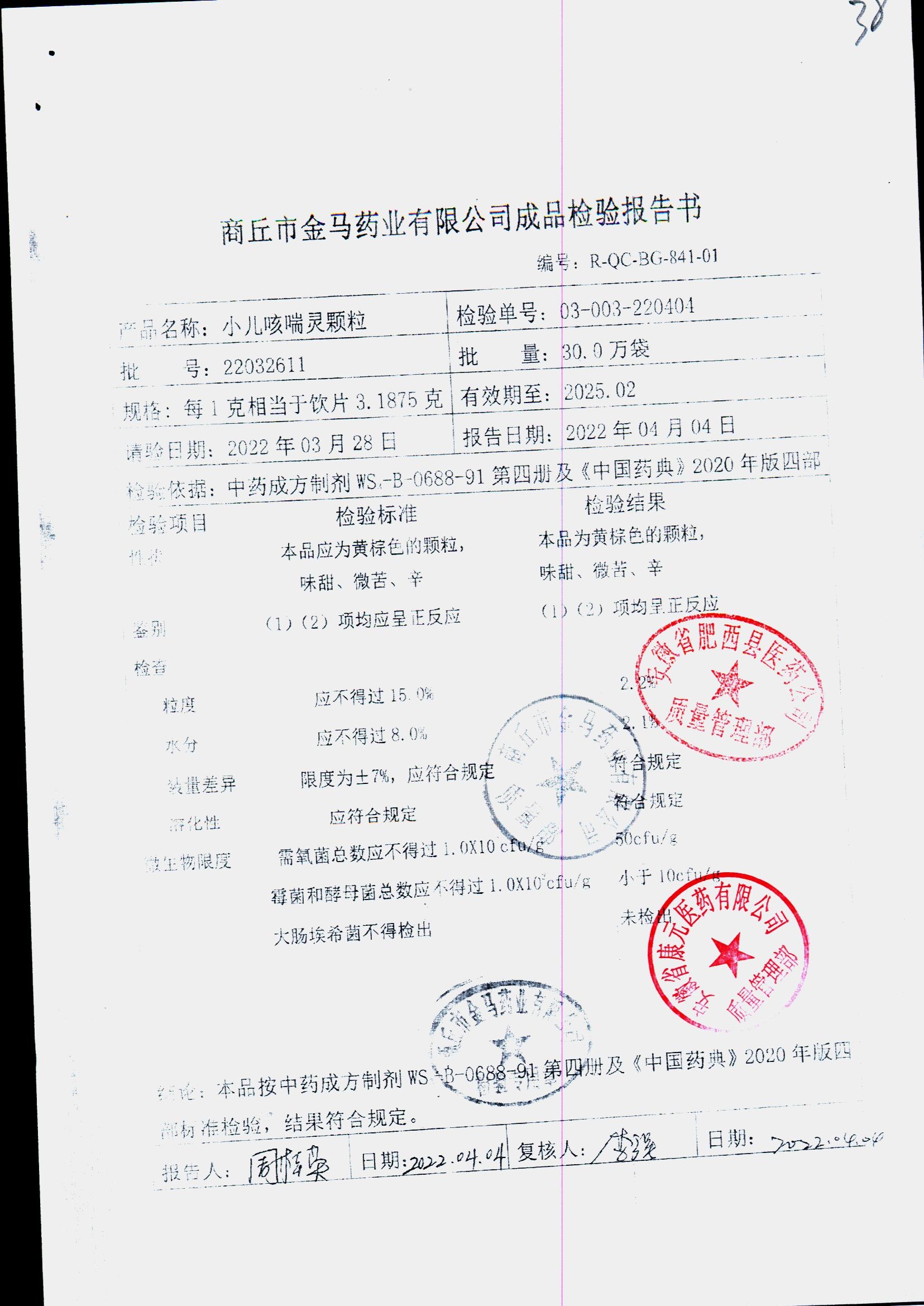 小儿咳喘灵颗粒 | 1克 | 22010311 | 查看详情 |
