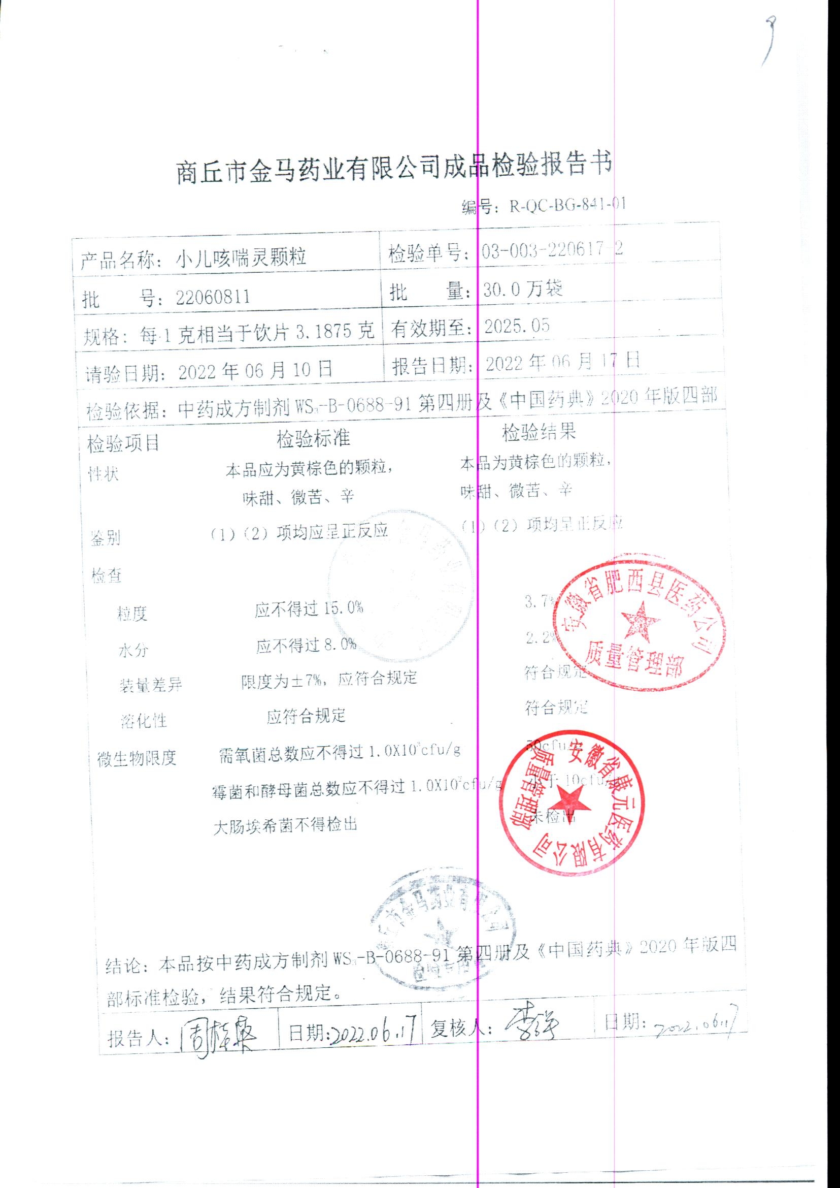 小儿咳喘灵颗粒 | 1克 | 22011611 | 查看详情 |
