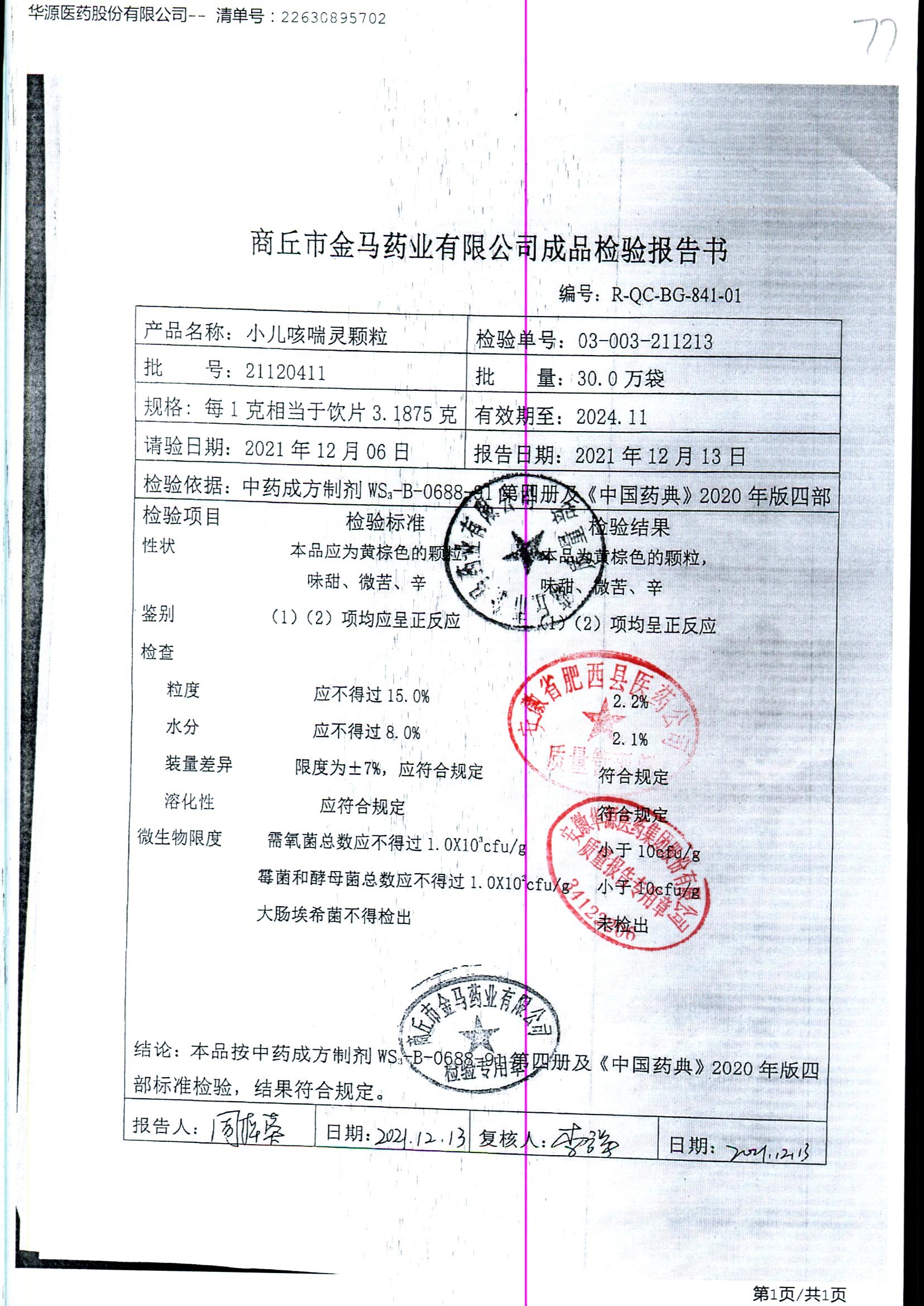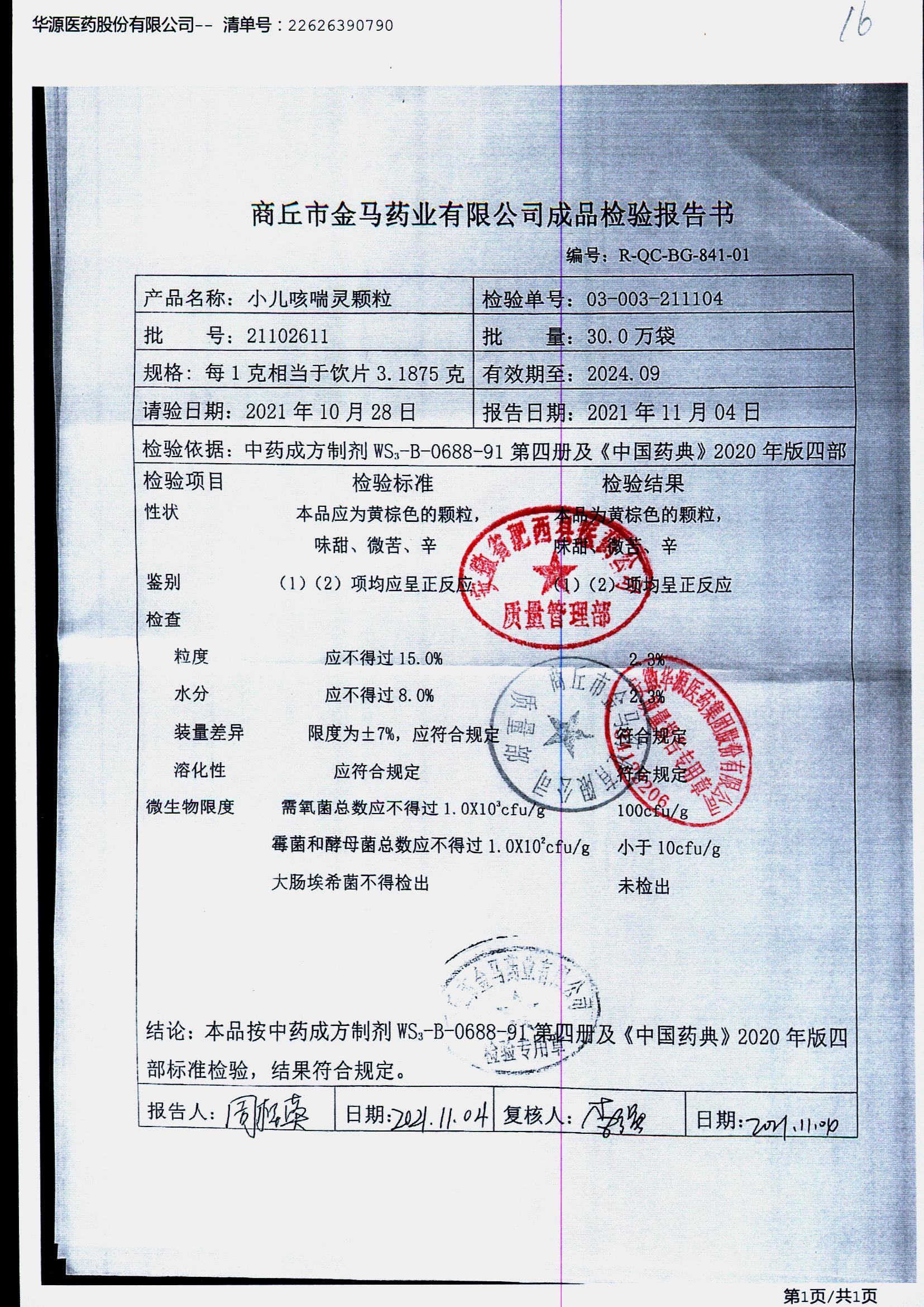 小儿咳喘灵颗粒 | 1克 | 21120411 | 查看详情 |